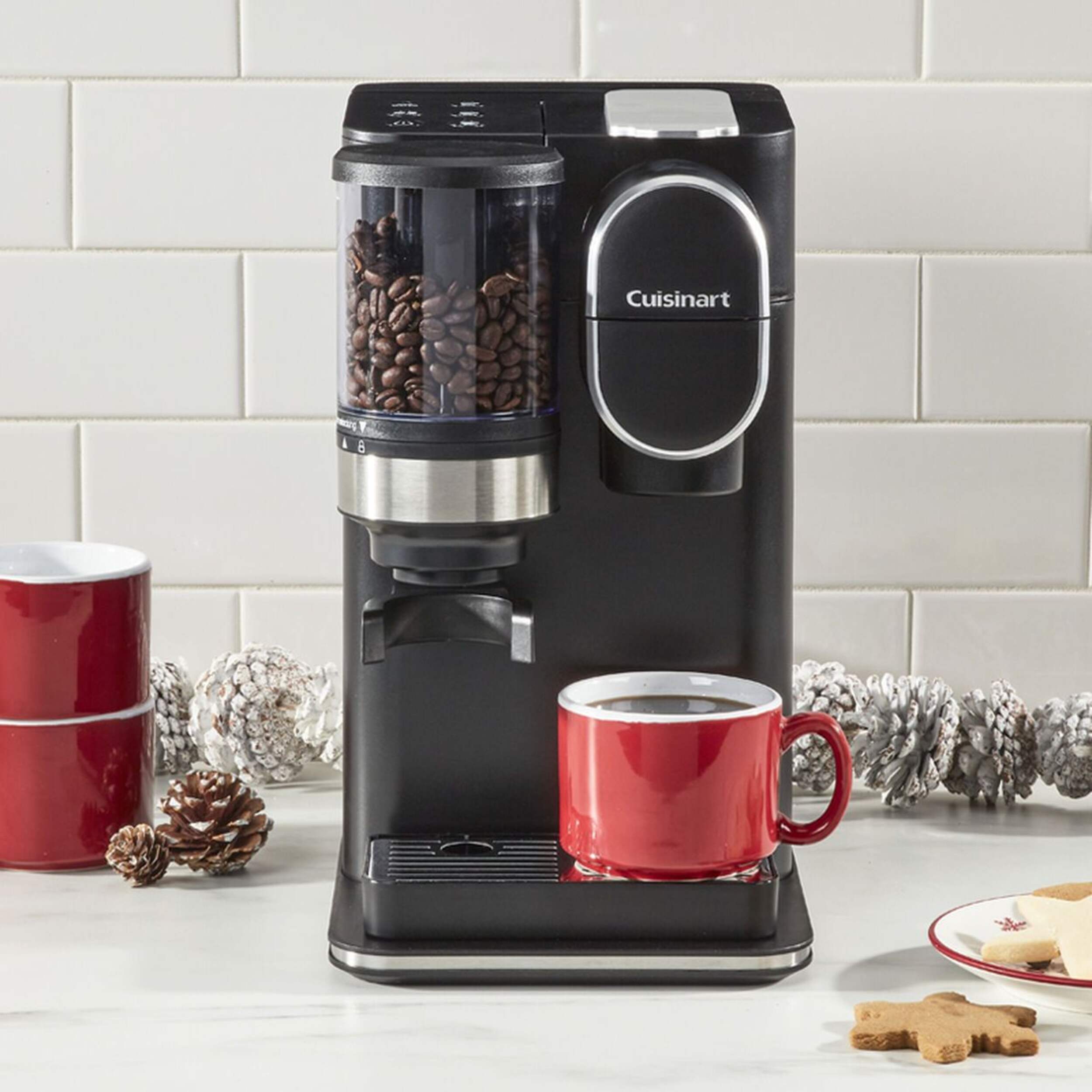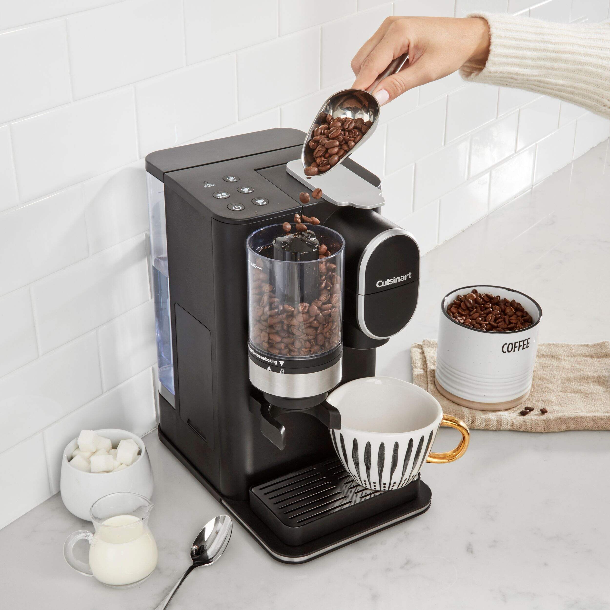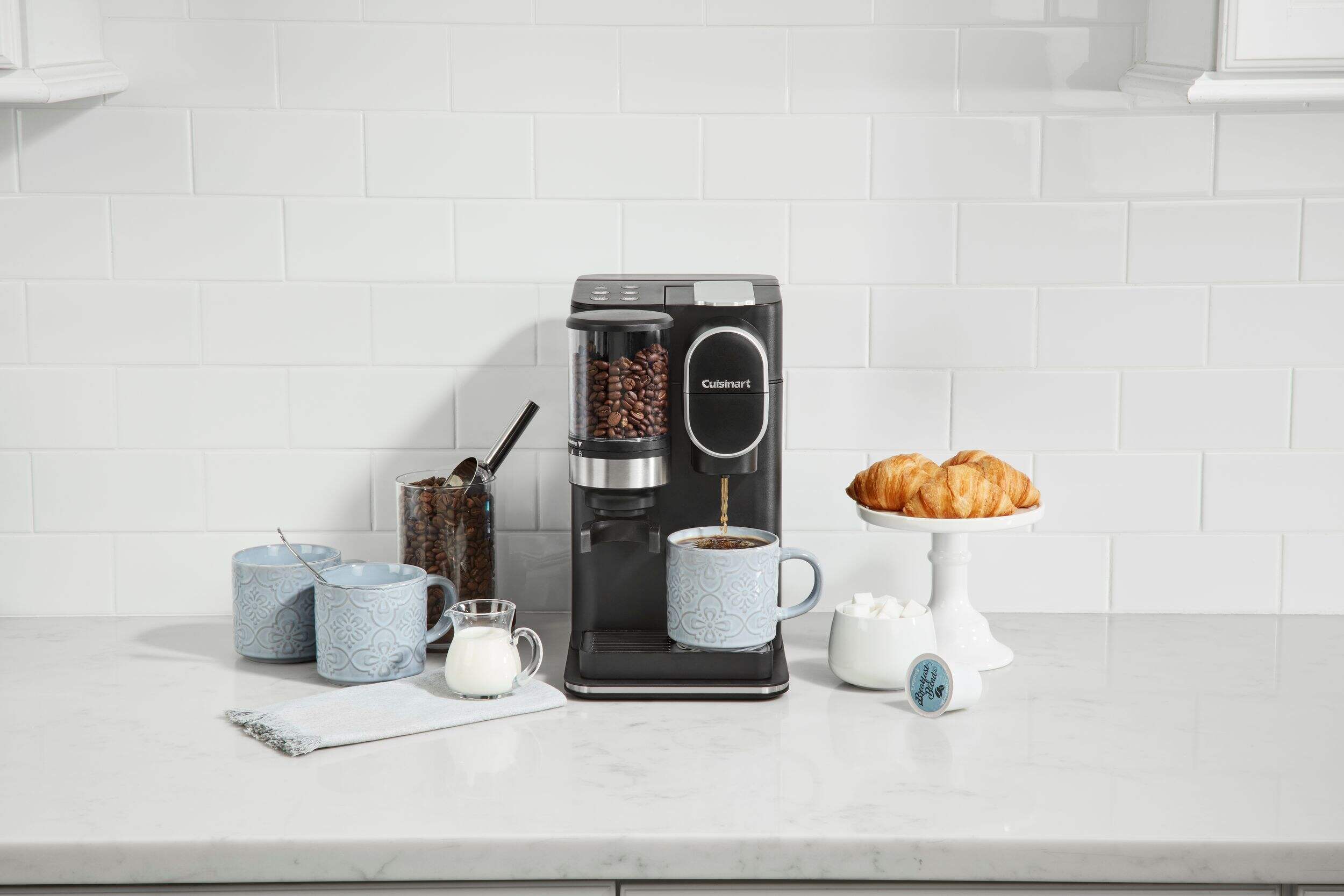 Freshly grind your beans for a perfect cup every time with the Cuisinart Single Serve Coffee Maker with Grinder. Savour the aroma and flavour that turns an ordinary cup into a sensory experience. This countertop coffee maker and grinder is the ultimate in efficiency and custom-brewing pleasure.
