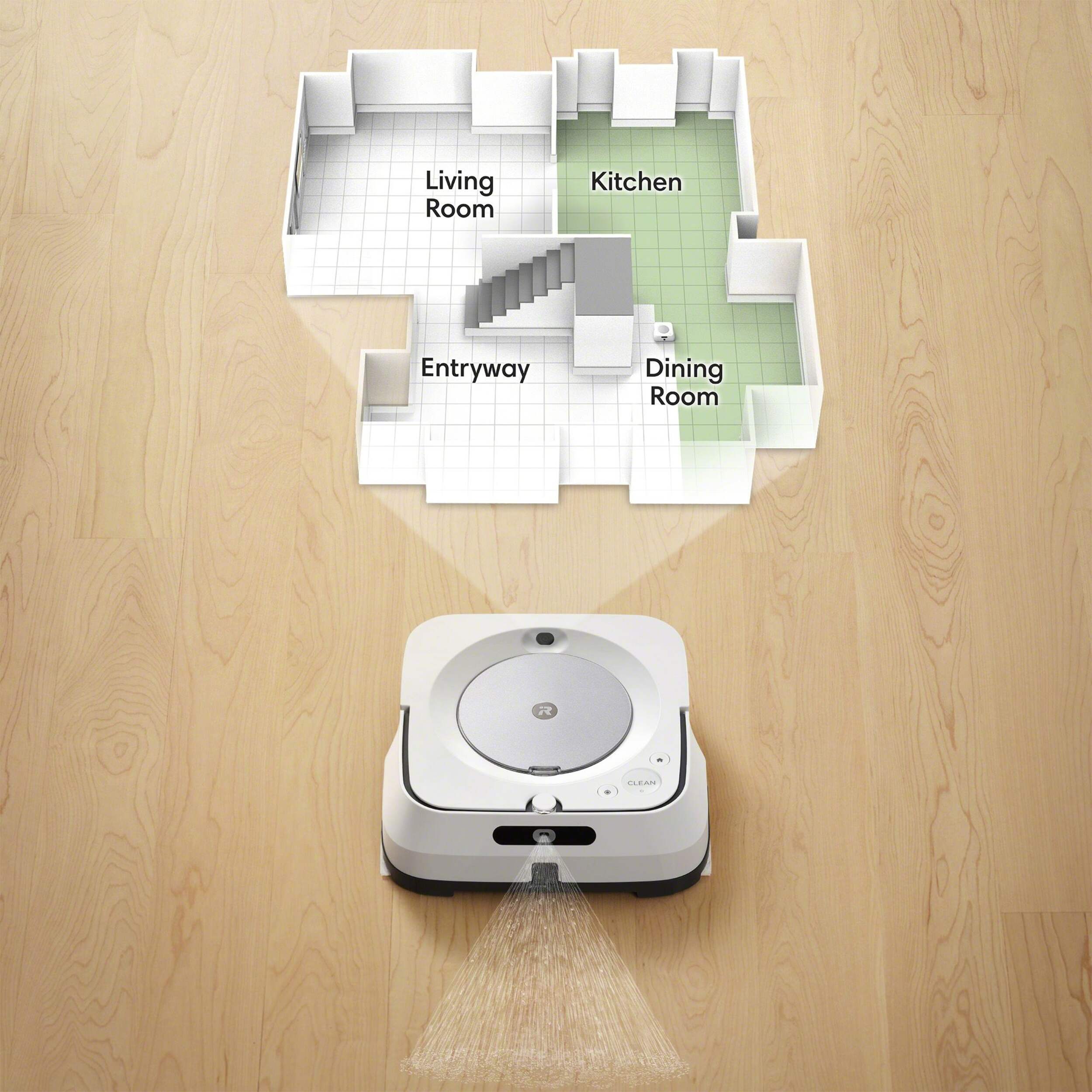 Mops messes in the moment. Coffee spill on the floor? Dog track in mud? The m6 can target specific areas within your rooms, like in front of the couch or under a table, for easy, hands-free mopping, with a simple request to your voice assistant (Google Home, Siri, or Amazon Alexa) or via the iRobot Home app