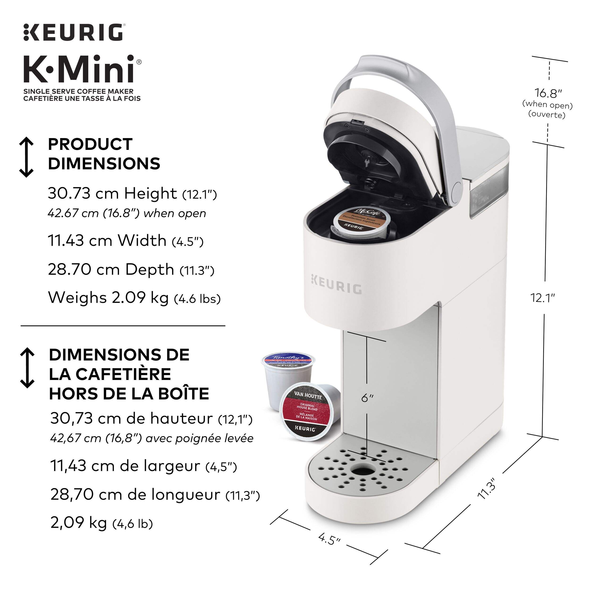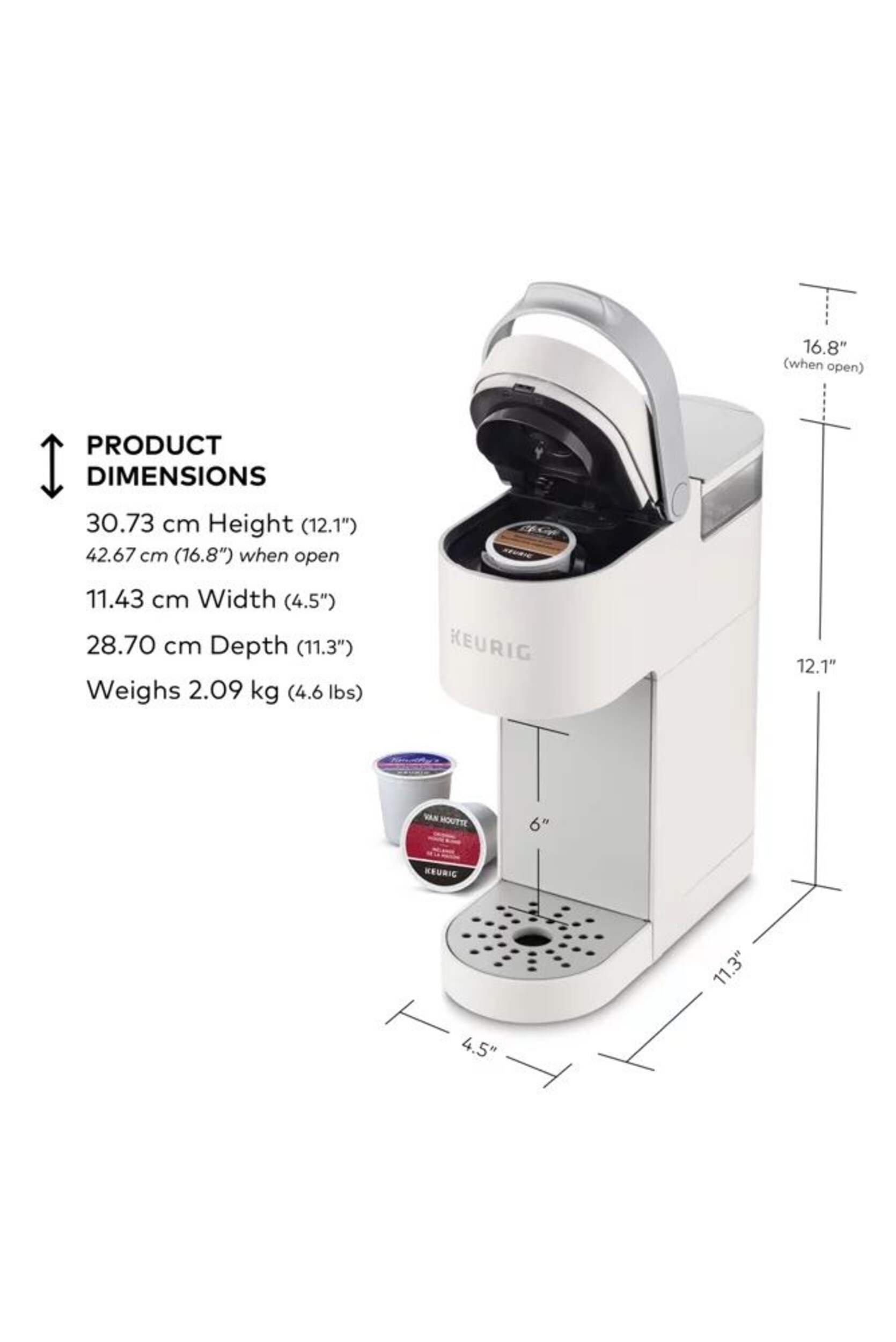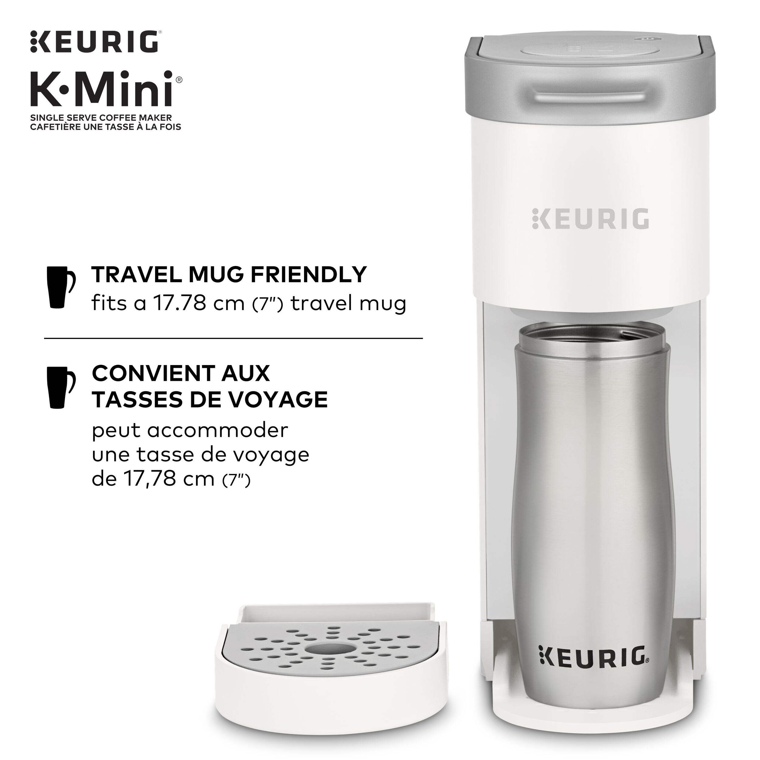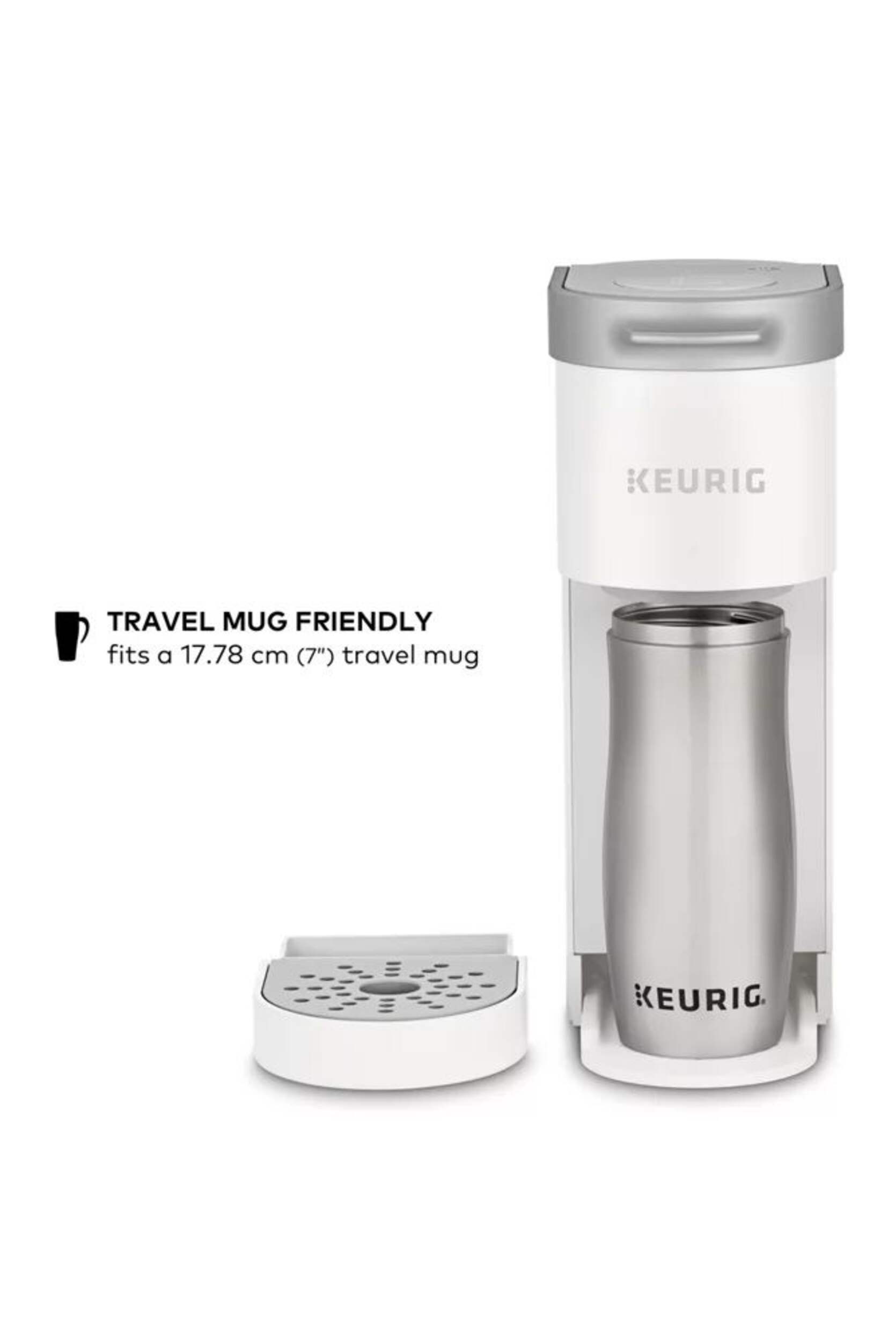 The Keurig® K-Mini™ single serve coffee maker features a new sleek design, and at less than 13 cm (5 in) wide is the perfect size for any space or occasion. The K-Mini™ coffee maker is effortlessly simple to use - just add fresh water to the reservoir, pop in your favourite K-Cup® pod, press the brew button and enjoy fresh brewed, delicious coffee in minutes. Choose from hundreds of delicious K-Cup® pod varieties to enjoy 177-355 ml (6-12oz) of your favourite coffee, tea, cocoa, and iced beverages. With a single cup reservoir and cord storage, the K-Mini™ coffee maker is the portable coffee maker that makes anywhere perfect for great coffee.