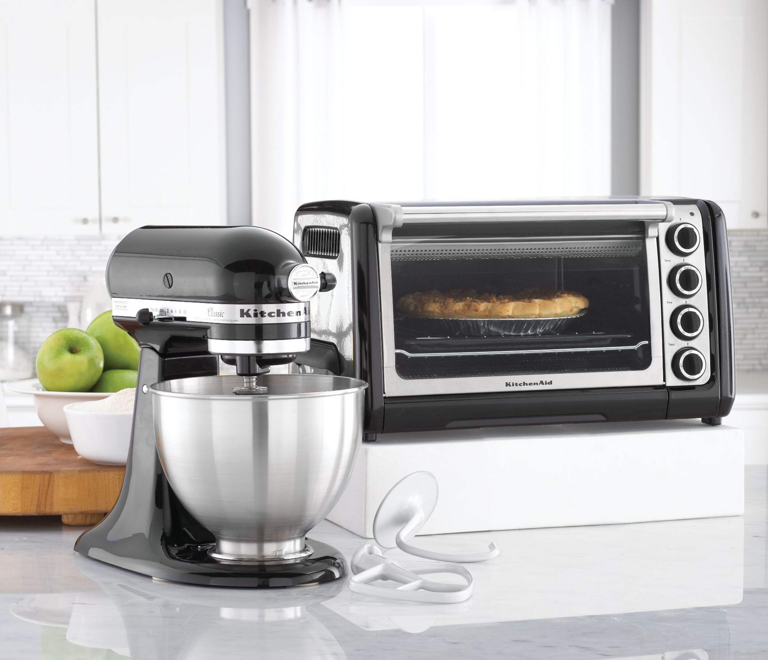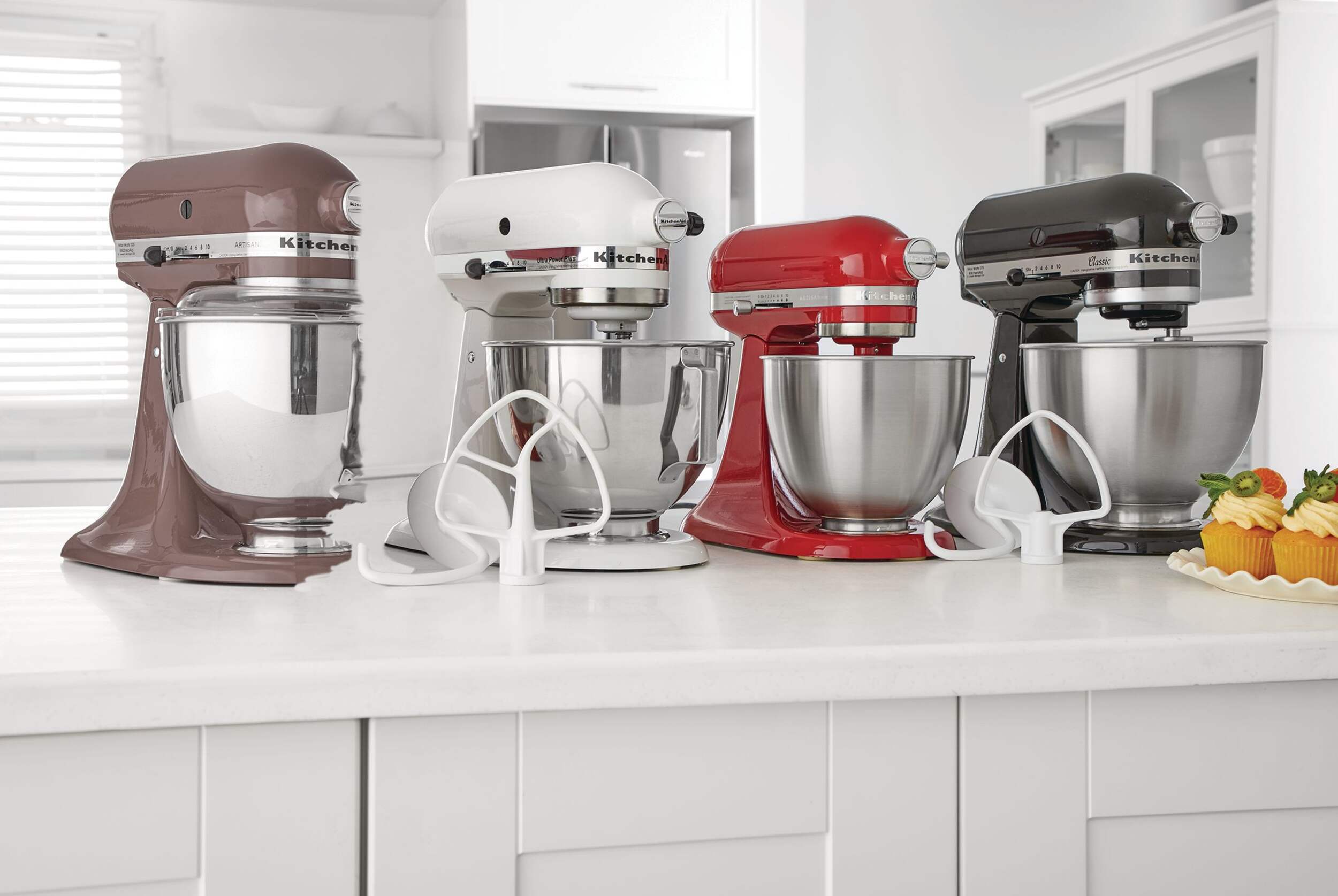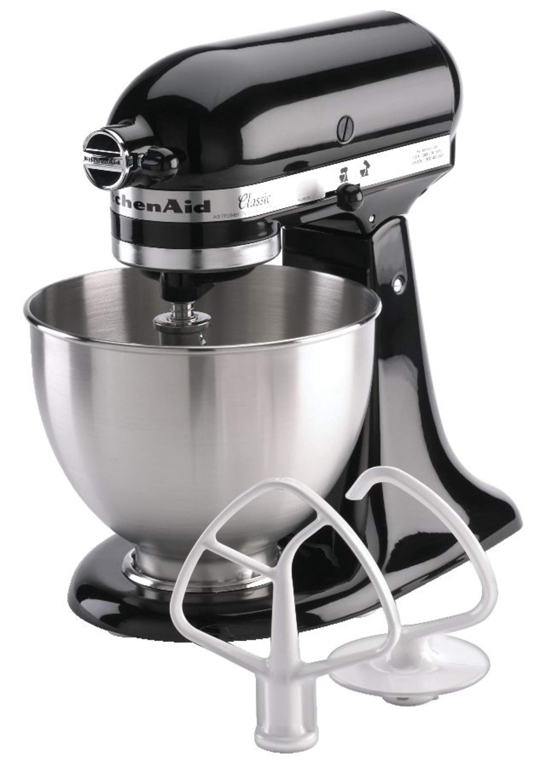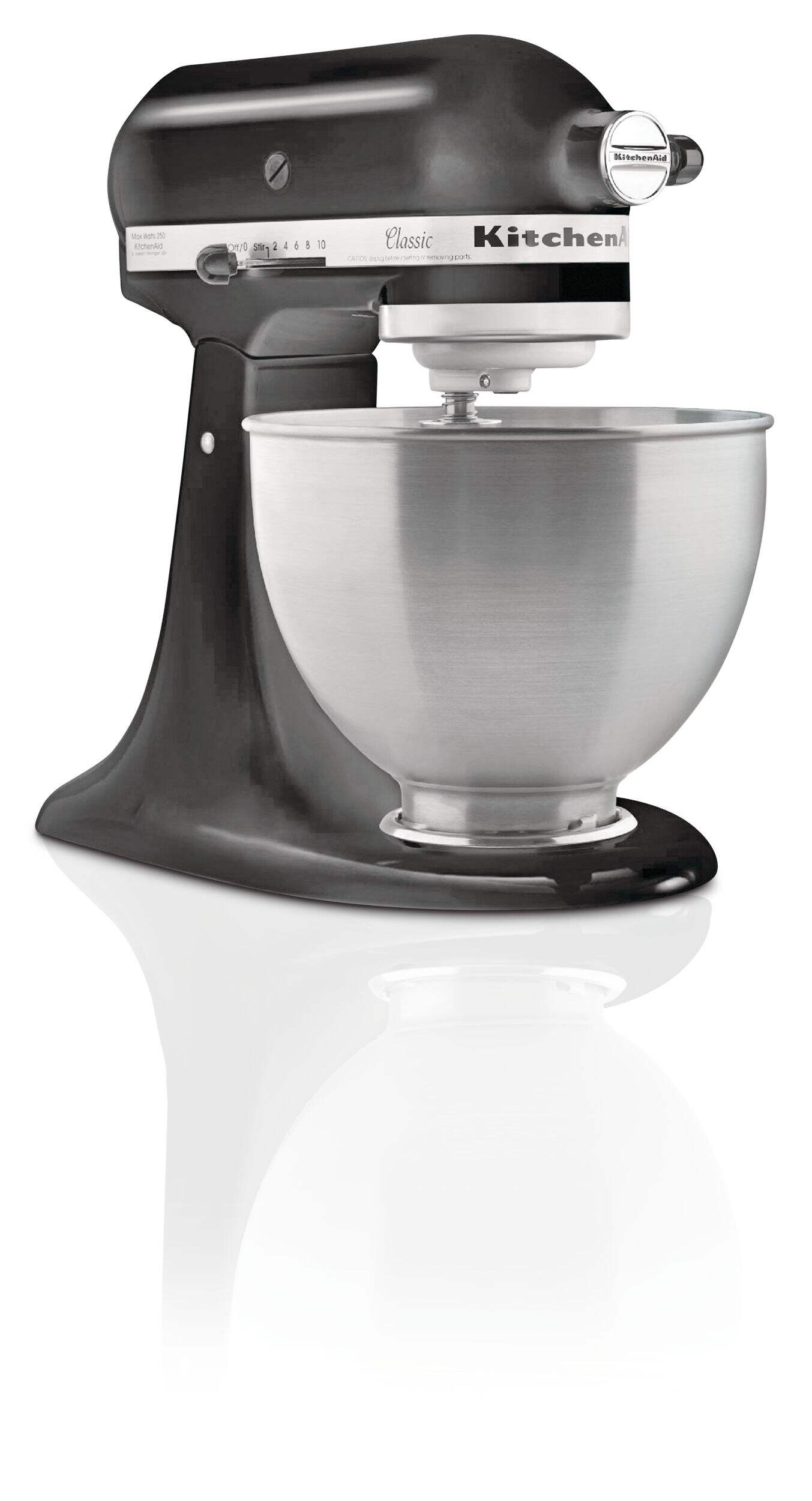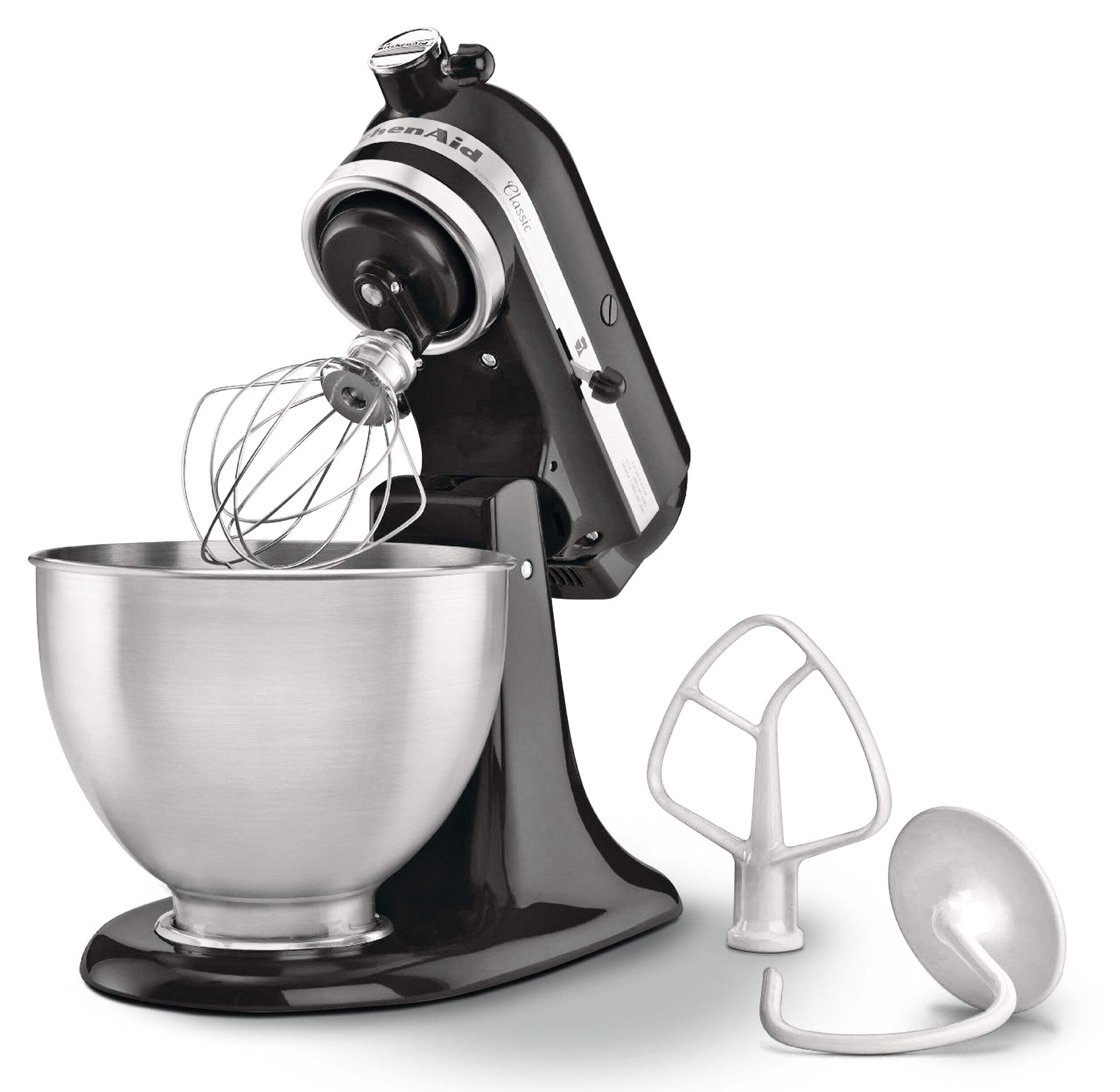The KitchenAid® 4.5 Quart Classic Series Tilt-Head Stand Mixer, Onyx Black, provides you with plenty of room for your largest recipes. The mixer's multi-purpose attachment hub allows you to use additional accessories when needed and includes a removable cover to keep things tidy when it's not in use. Simply attach the tool you need for your specific recipe and let this Kitchenaid mixer do the hard work for you.