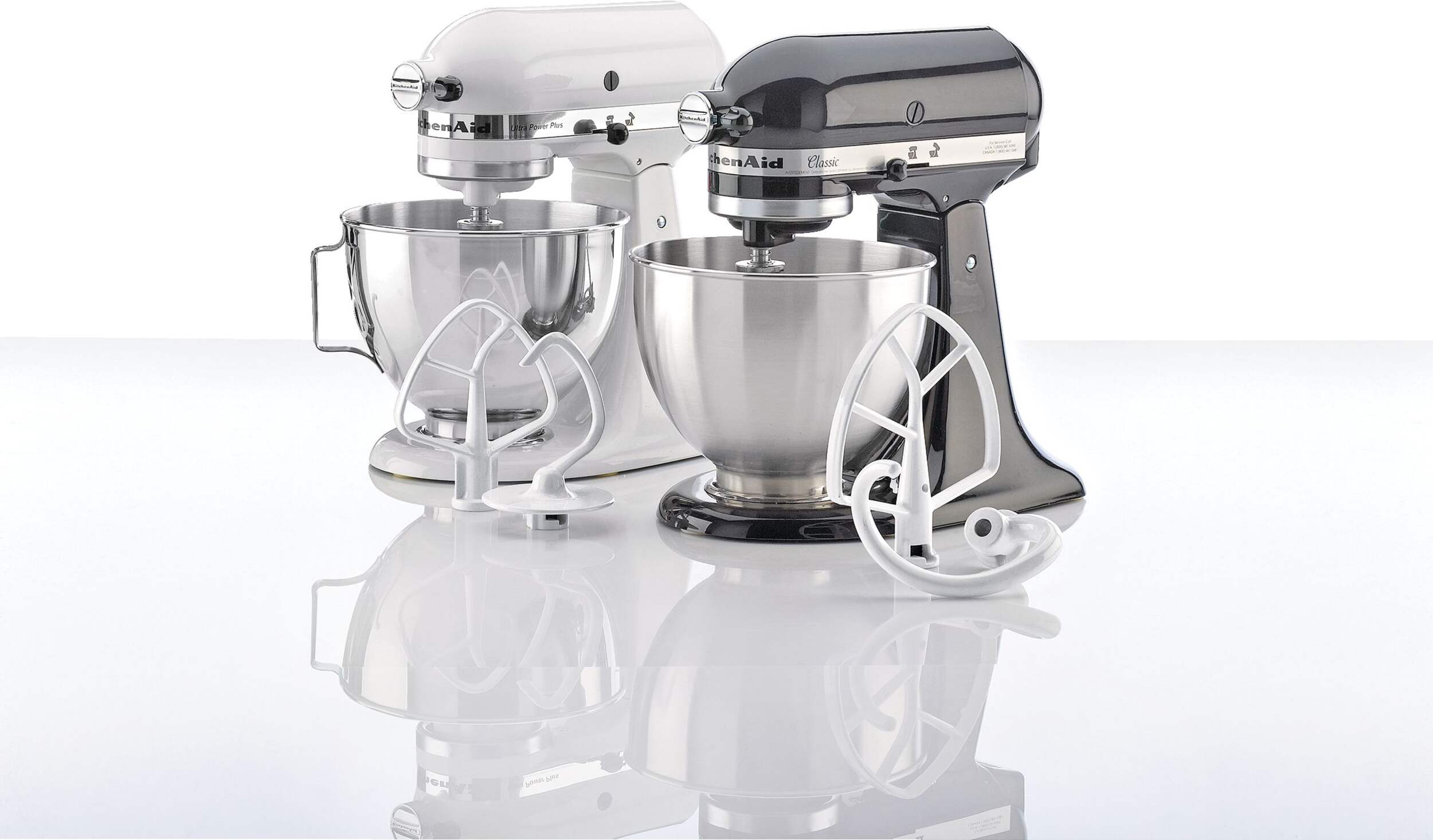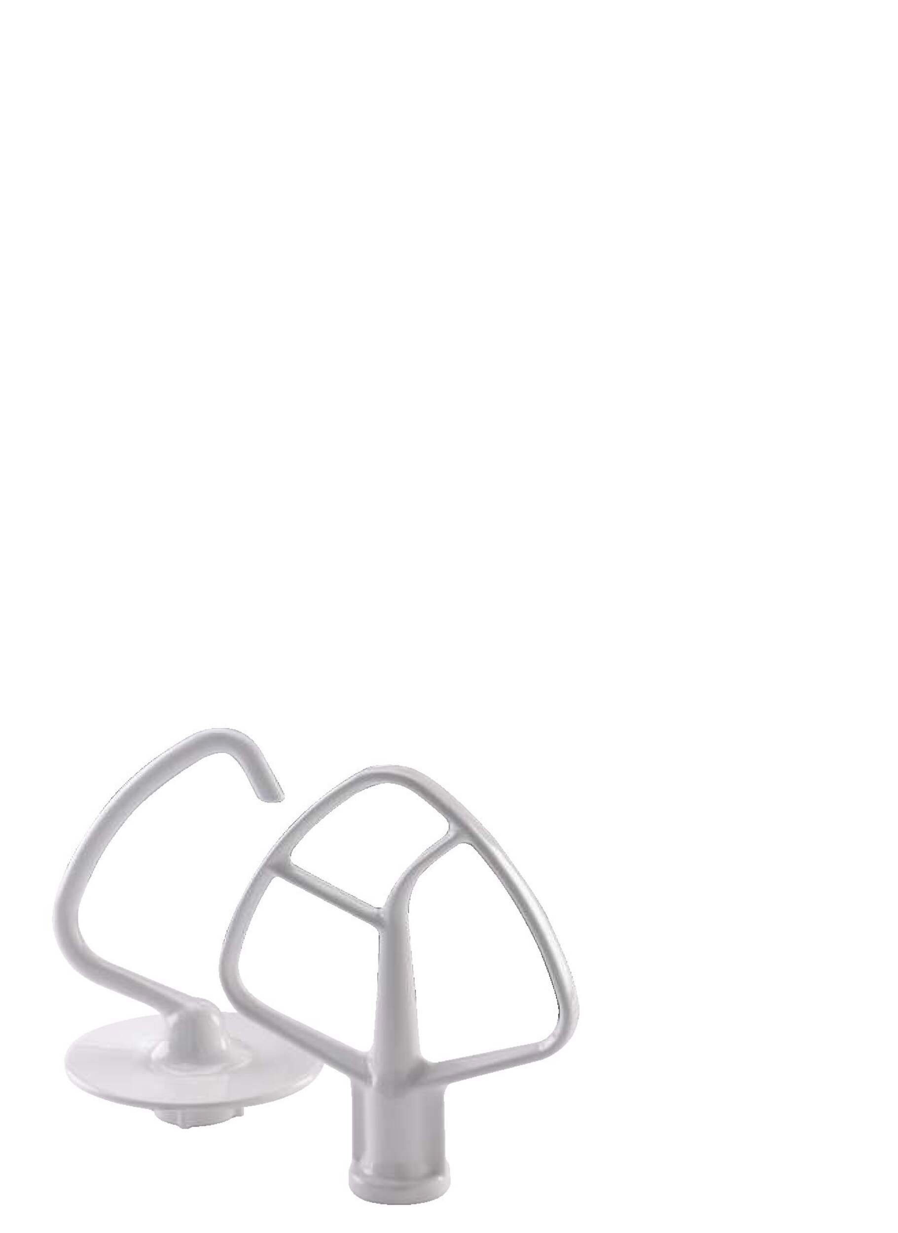 Includes recipes, coated flat beater, coated dough hook, metal wire whip and stainless steel bowl
