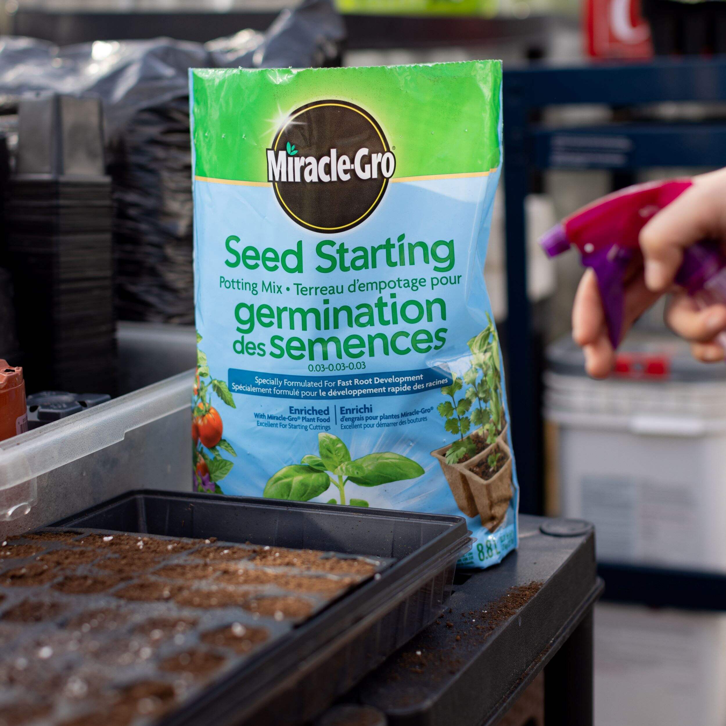 Start small and grow fast. That’s what’s behind Miracle-Gro® Seed Starting Potting Mix. Specially formulated for fast root development, this potting mix is great for planting vegetable, flower and herb seeds. Ideal for starting leaf, stem and root cuttings, too. Plus, this special mix is enriched with Miracle-Gro® Plant Food. Feeds instantly to help new seedlings and cuttings get off to a great start.