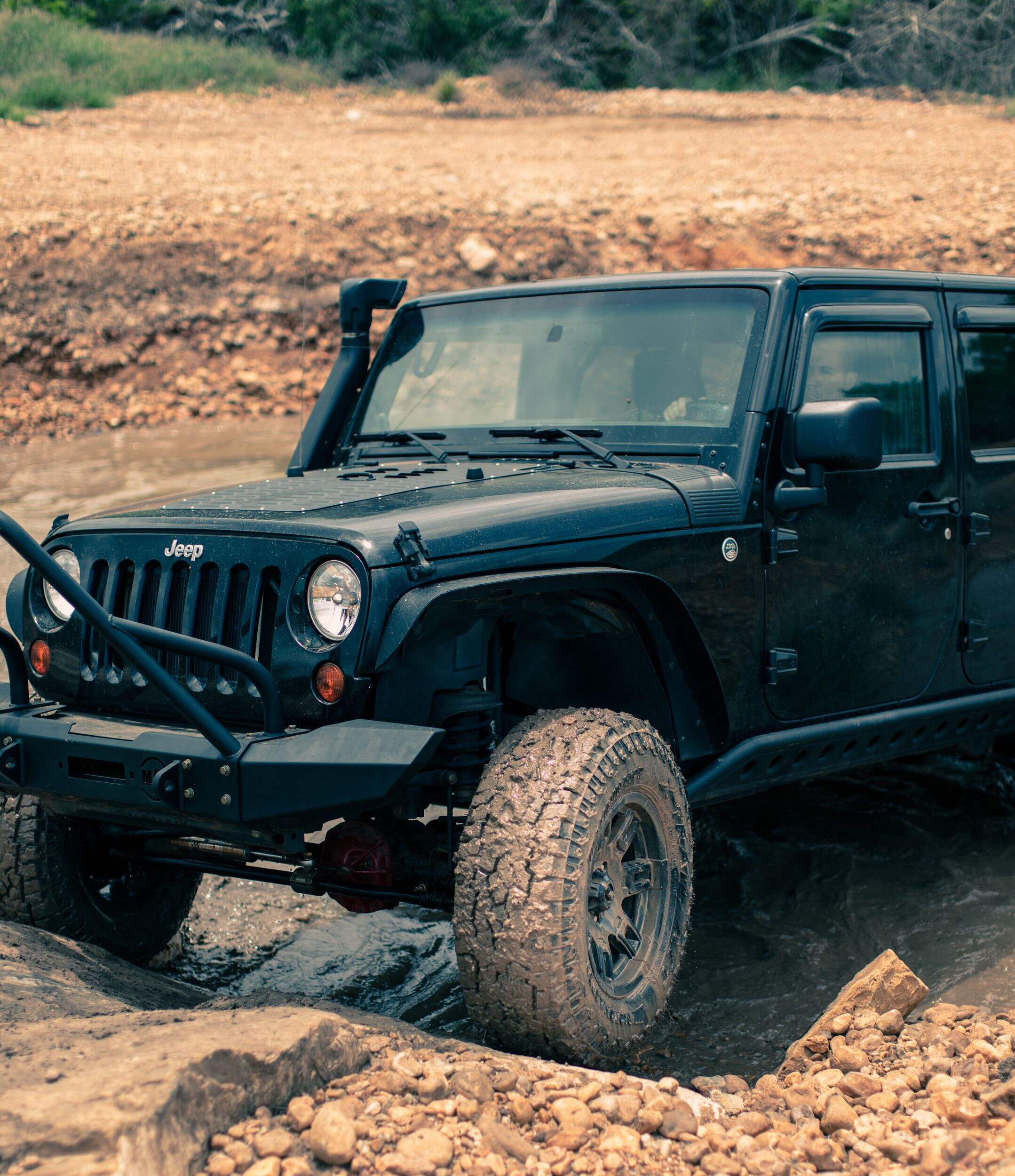Aggressive off-road capability designed to handle rough terrain with mud scoops, stone ledges, and barriers that improve traction and resist stone retention