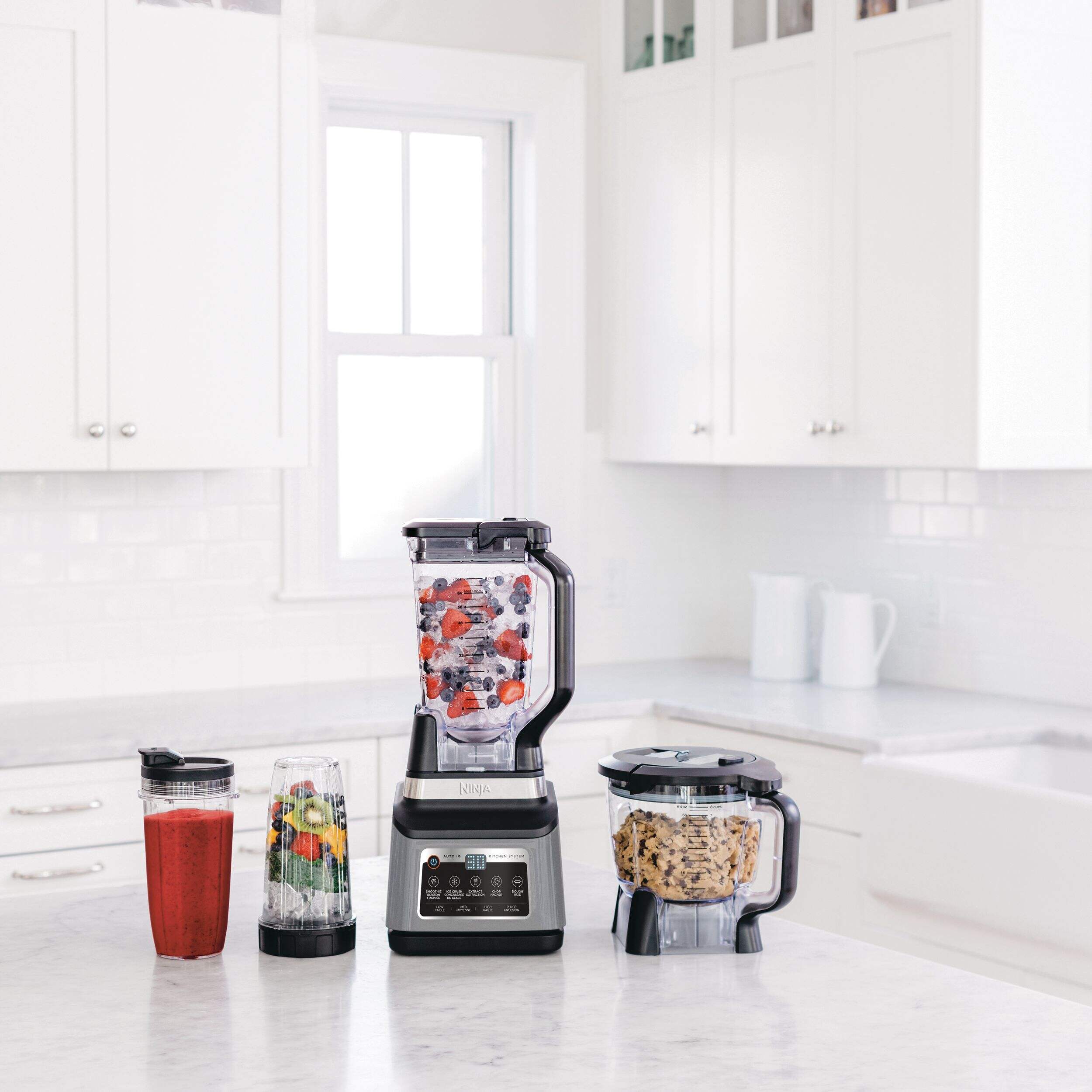 The Ninja® Professional Plus Kitchen System with Auto-iQ® features a new modern design and more functionality than Ninja's original Professional Kitchen System.* Ninja Total Crushing® Blades and Pro Extractor Blades® Assembly give you perfectly crushed ice for your smoothies, frozen drinks, and nutrient extractions**. The 72 oz.† Total Crushing Pitcher is great for making large batches for the whole family with 1400 peak watts of professional power. Plus, its single-serve cups with spout lids makes it easy to take delicious, nutrient-rich smoothies on the go. But don’t just stop at drinks—the 8-cup processor bowl provides precision processing for even chopping, smooth purees, and up to 2 lbs. of dough. Auto-iQ Technology provides preset programs that do the work for you, no guesswork required. *Versus BL770, based on the number of available blending programs **Extract a drink containing vitamins and nutrients from fruits and vegetables †64 oz. max liquid capacity