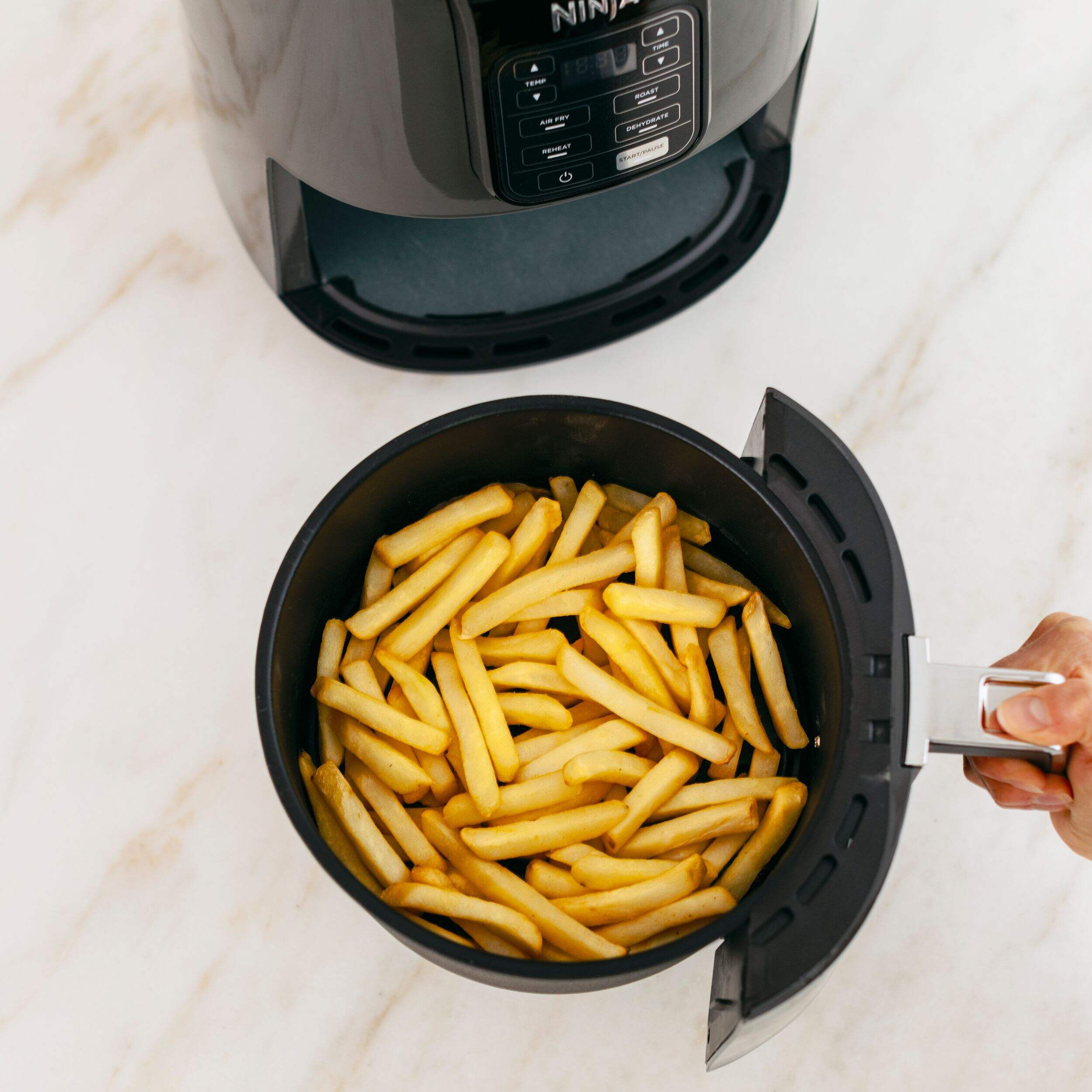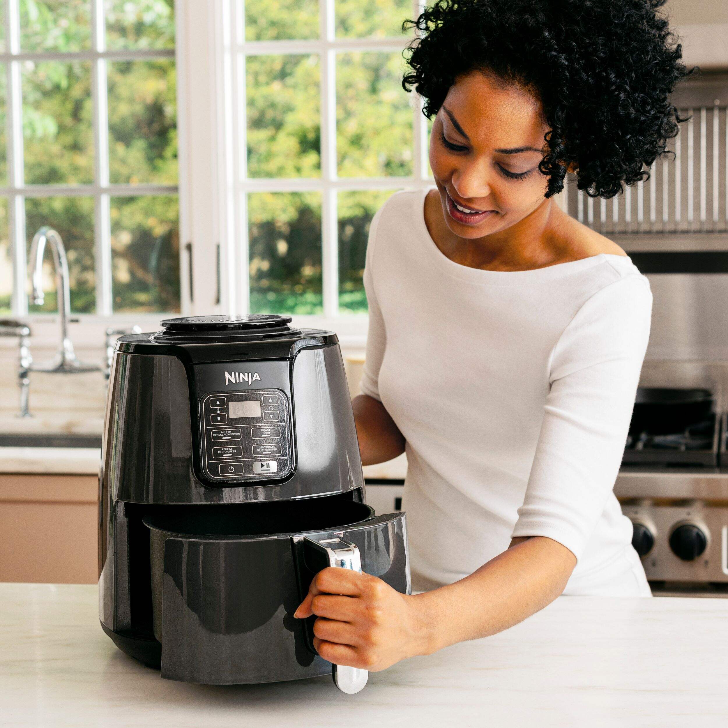 Meet the Ninja Air Fryer, a fast and easy way to cook your favorite foods. Cook and crisp your favorite foods, like 2 lbs. of French fries, using little to no oil in a family-sized 4-quart basket.