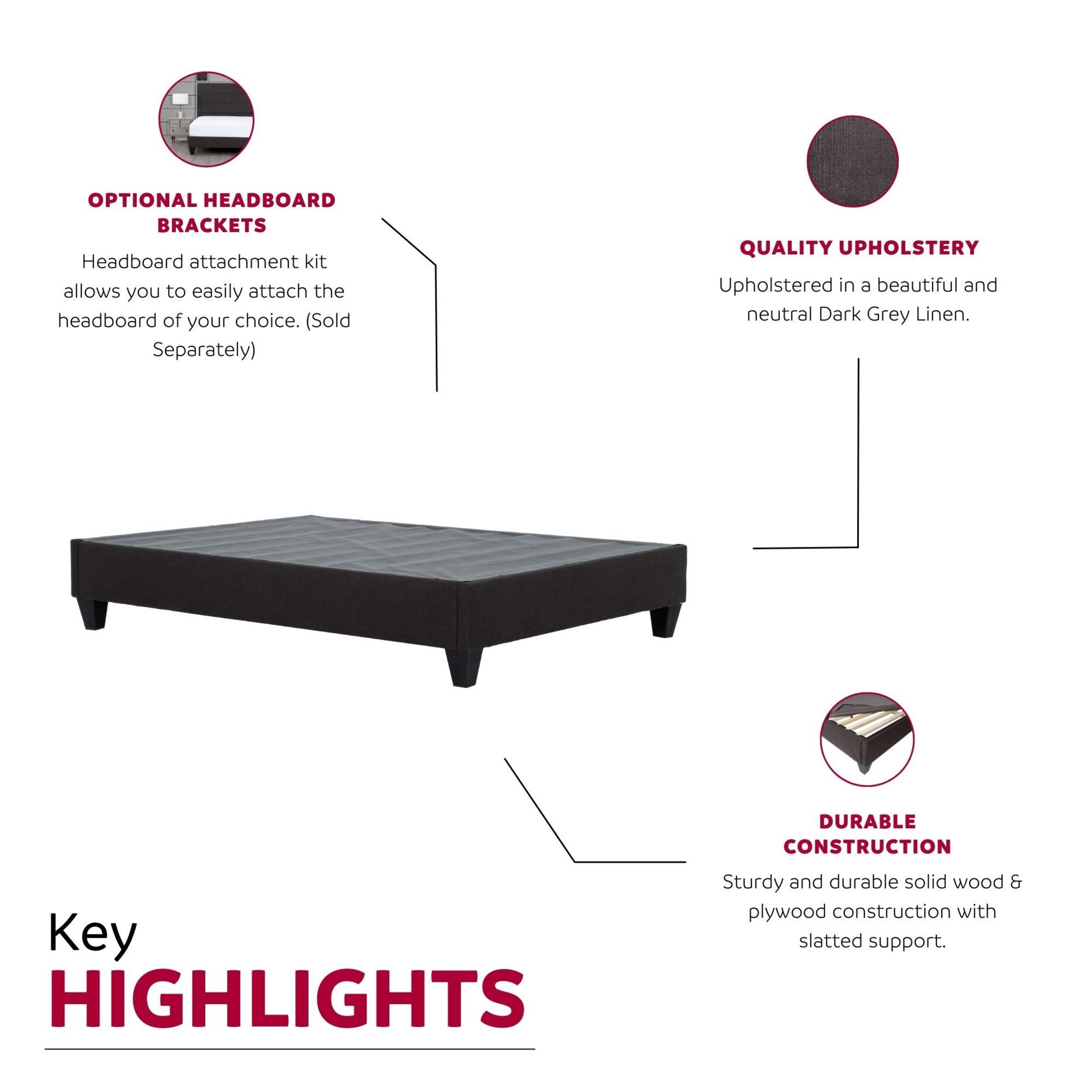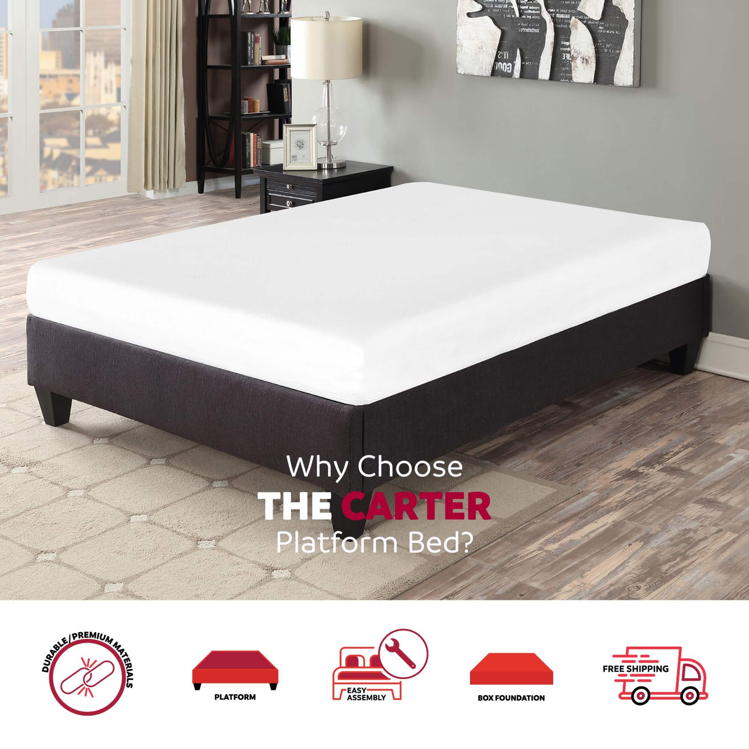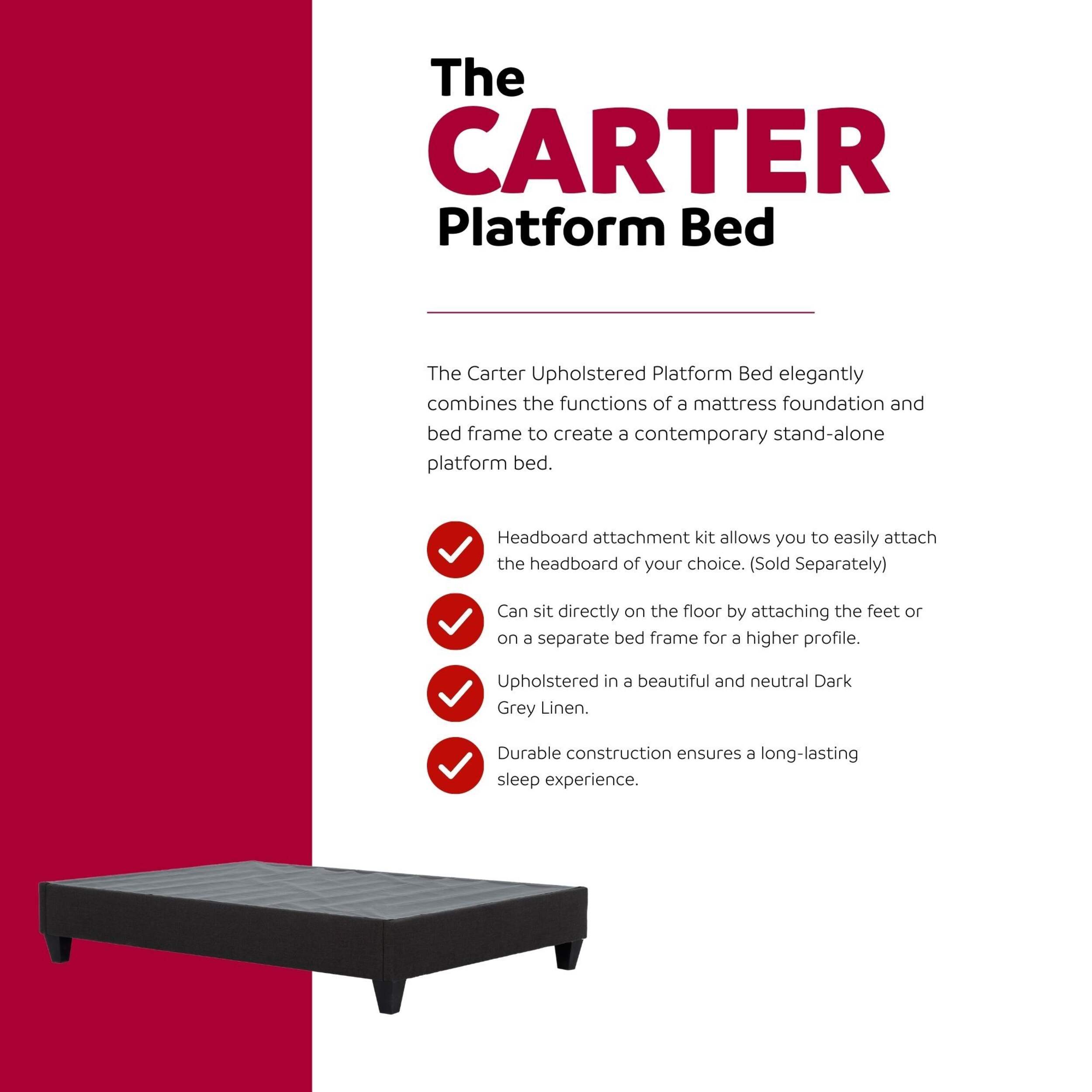 The Primo Carter Upholstered Platform Bed Frame in Dark Grey offers a stylish and contemporary design for your bedroom. This upholstered bed frame features a low-profile platform base, eliminating the need for a box spring. Its sturdy construction and dark grey upholstery provide a sleek and modern look that complements various decor styles. With its minimalist design and practical functionality, the Primo Carter Bed Frame is an excellent choice for those seeking a sophisticated and comfortable sleeping solution.