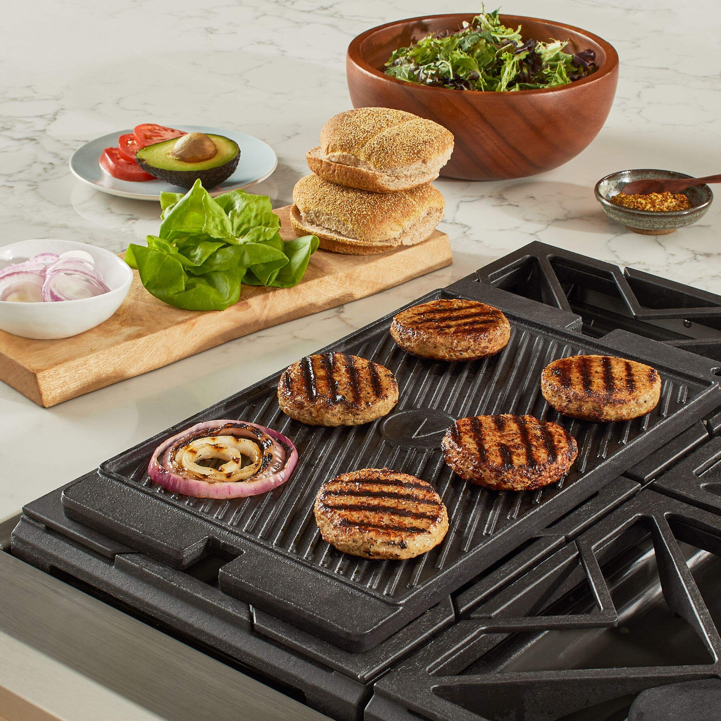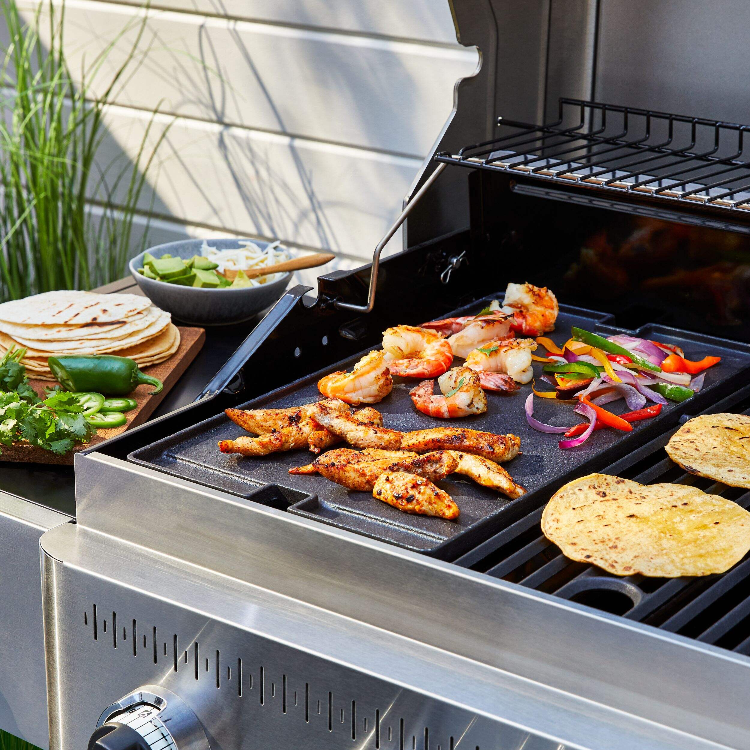 Cook your favourite comfort foods on the griddle side for breakfast, lunch, and dinner