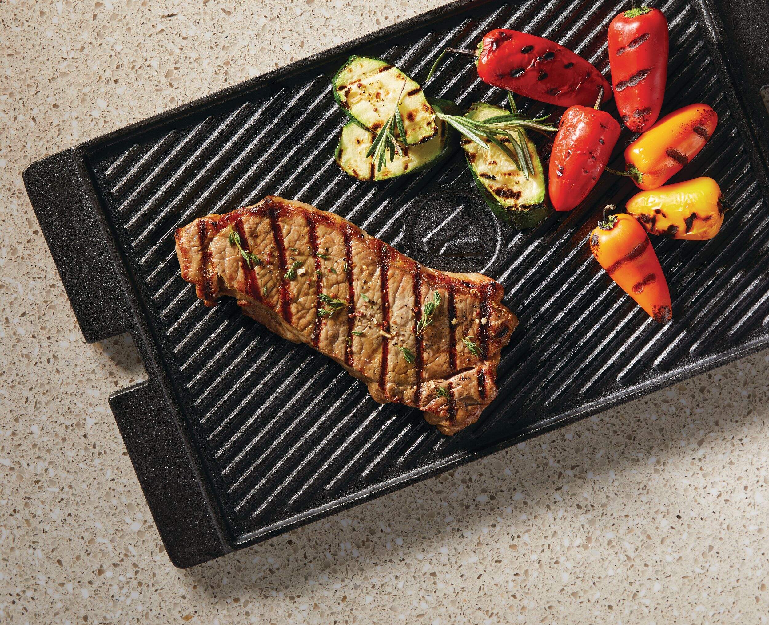 Create perfect grill marks on meats, vegetables, and more on the grill side