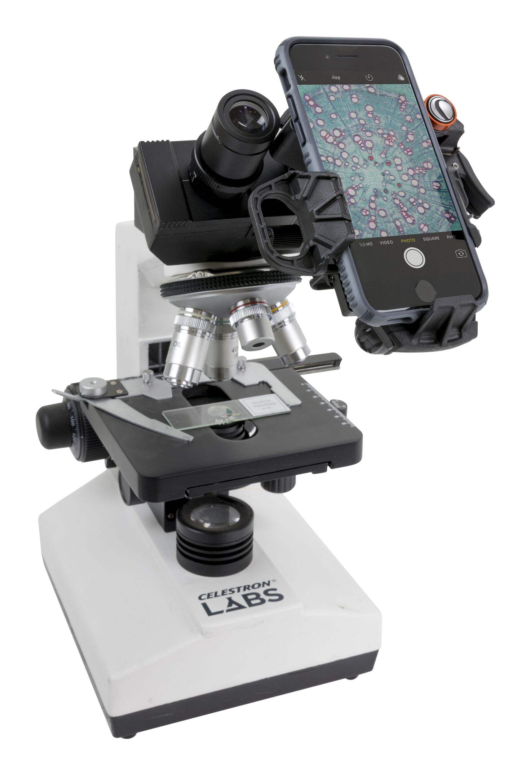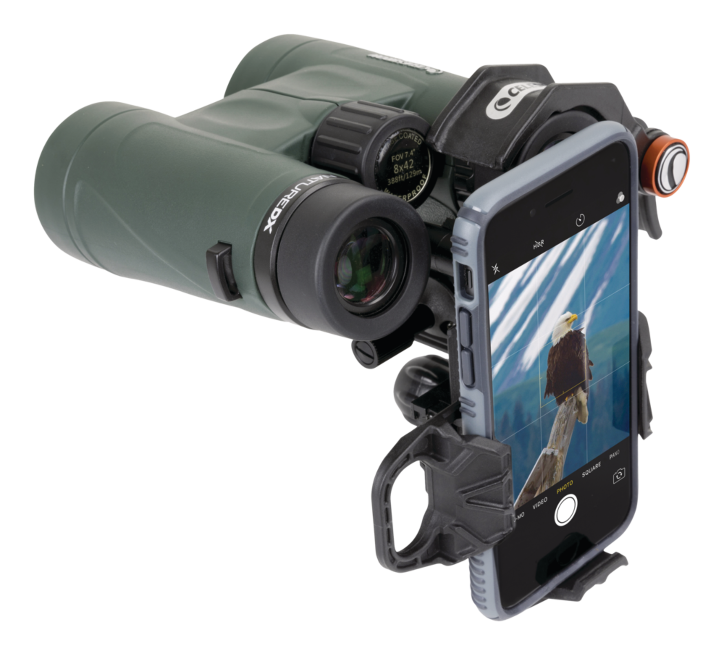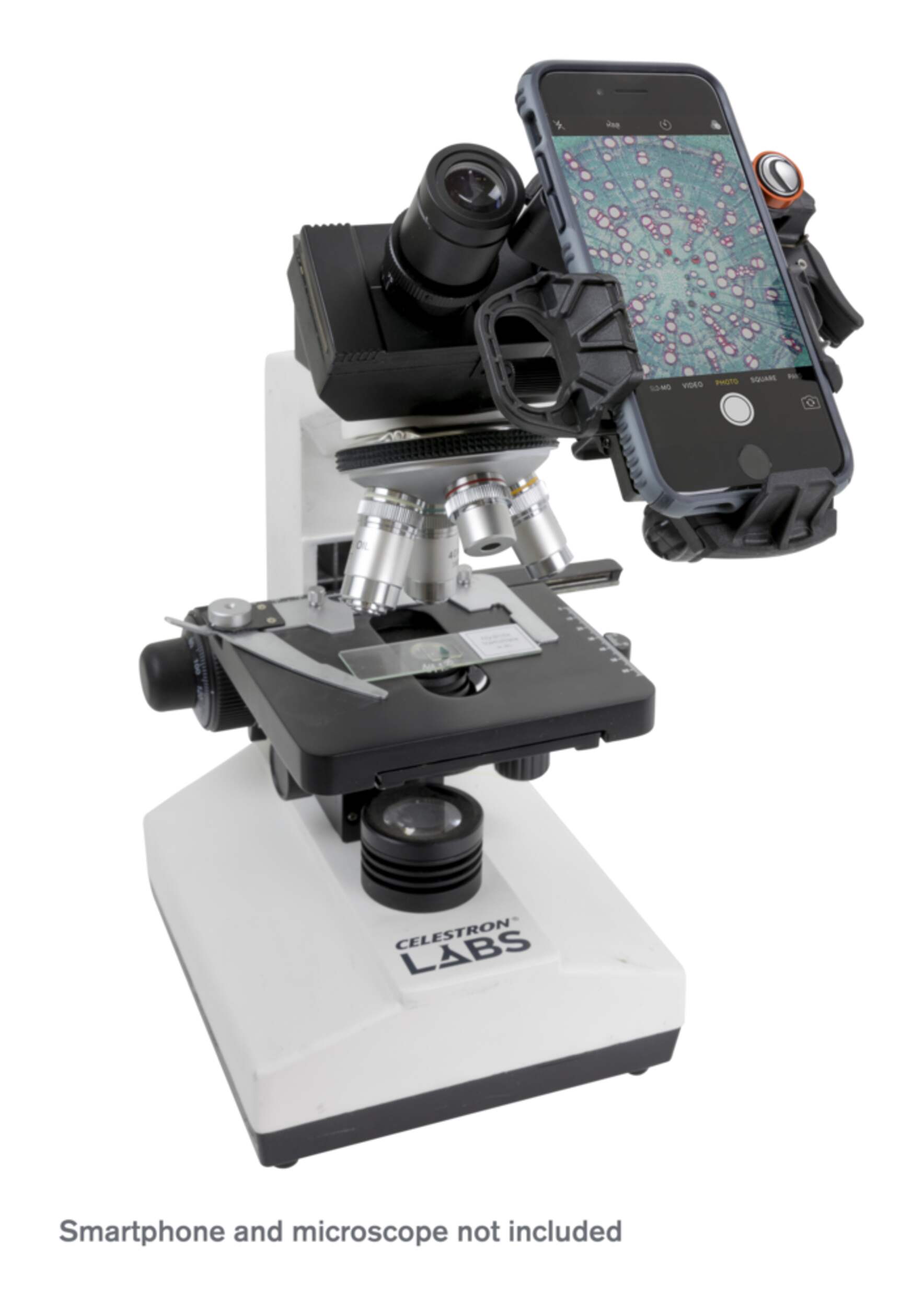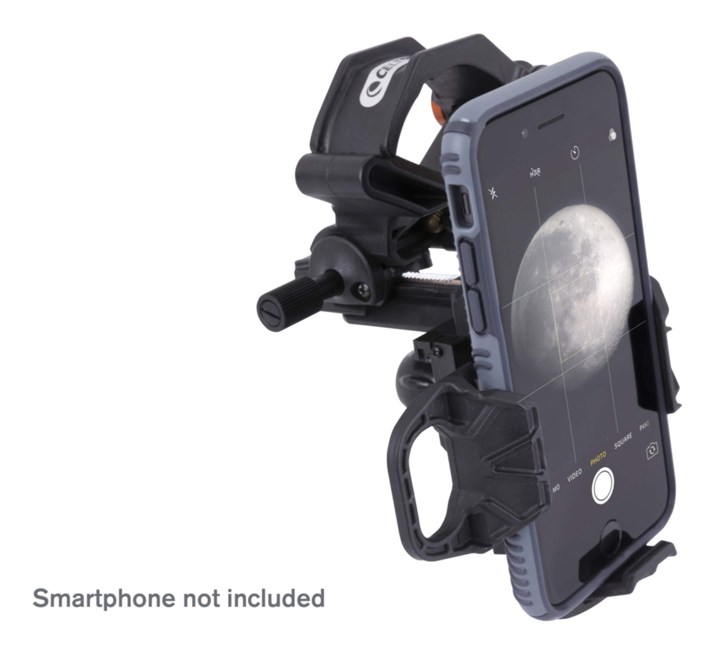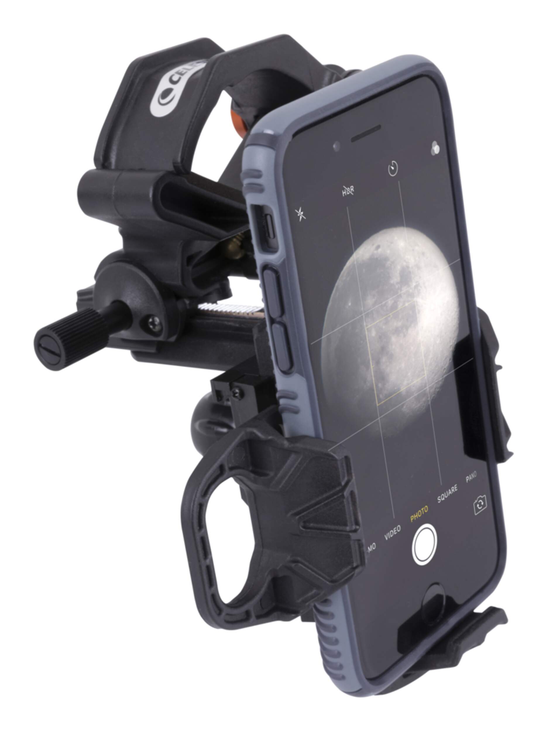 Rotule tridirectionnelle (axes X, Y et Z) permettant d'aligner à la perfection l'appareil-photo de votre téléphone à l'oculaire pour prendre des photos impeccables