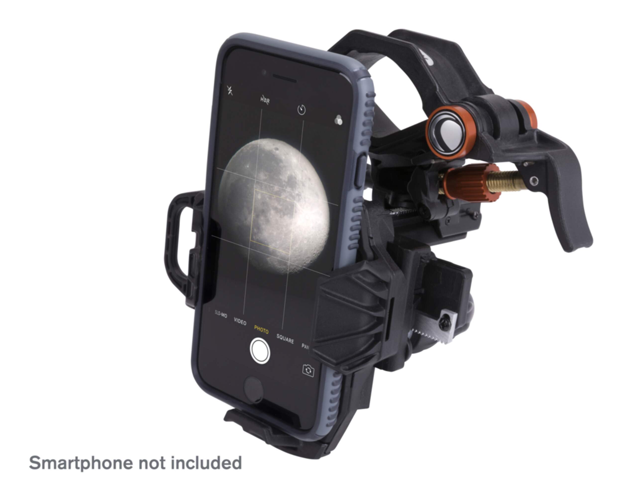 Adaptateur universel pour téléphone intelligent à 3 axes NexYZ, excellente 1re étape dans l'astrophotoographie ou la digiscopie. NexYZ vous offre le nécessaire pour prendre des photos et des vidéos nettes et détaillées. Adaptateur pour téléphone intelligent NexYZ breveté NexYZ, convient à tous les oculaires de 35 à 60 mm de diamètre, dont les télescopes avec oculaires de 1 1/2 ou 2 po, de lunettes d'observation, de monoculaires et de jumelles. Se fixe aussi aux microscopes avec un anneau adaptateur inclus, réduisant le diamètre utilisable jusqu'à 25 mm, soit un oculaire standard de microscope. NexYZ convient à de nombreux téléphones intelligents, dont les téléphones-tablettes plus grands (iPhone 11 Plus, plus récents appareils Galaxy de Samsung). Plateforme du téléphone réglable, qui peut convenir à tout appareil, souvent avec l'étui installé. Plateforme sécuritaire qui supporte le poids de ces appareils plus lourds avec facilité avec ressort en métal robuste de NexYZ et verrou à visser fileté. Si vous devez resserrer la tension sur chaque axe pour obtenir un raccord sécurisé personnalisé, cliquez sur l'onglet Soutien & Téléchargement pour notre Guide d'ajustement de la tension NexYZ. Facile comme XYZ. Quel est la différence entre le modèle breveté de NexYZ et les autres adaptateurs? Réglage à 3 axes. Majorité des adaptateurs se fient à vous pour bien placer votre téléphone sur la plateforme et offrent un réglage limité en 2 axes. NexYZ vous permet de placer votre téléphone sur la plateforme, de le centrer sur l'oculaire avec les boutons X et Y et de le déplacer en haut ou en bas sur l'oculaire jusqu'à ce que tout le champ de vision soit dans la photo. Réglage ultra-précis, mais plus rapide et facile à utiliser que les autres adaptateurs. Le processus ne prend que 30 secondes, y compris le temps d'insérer le téléphone dans NexYZ, fixer NexYZ à un oculaire, lancer l'appli de l'appareil photo et centrer l'appareil sur l'oculaire à l'aide des boutons.