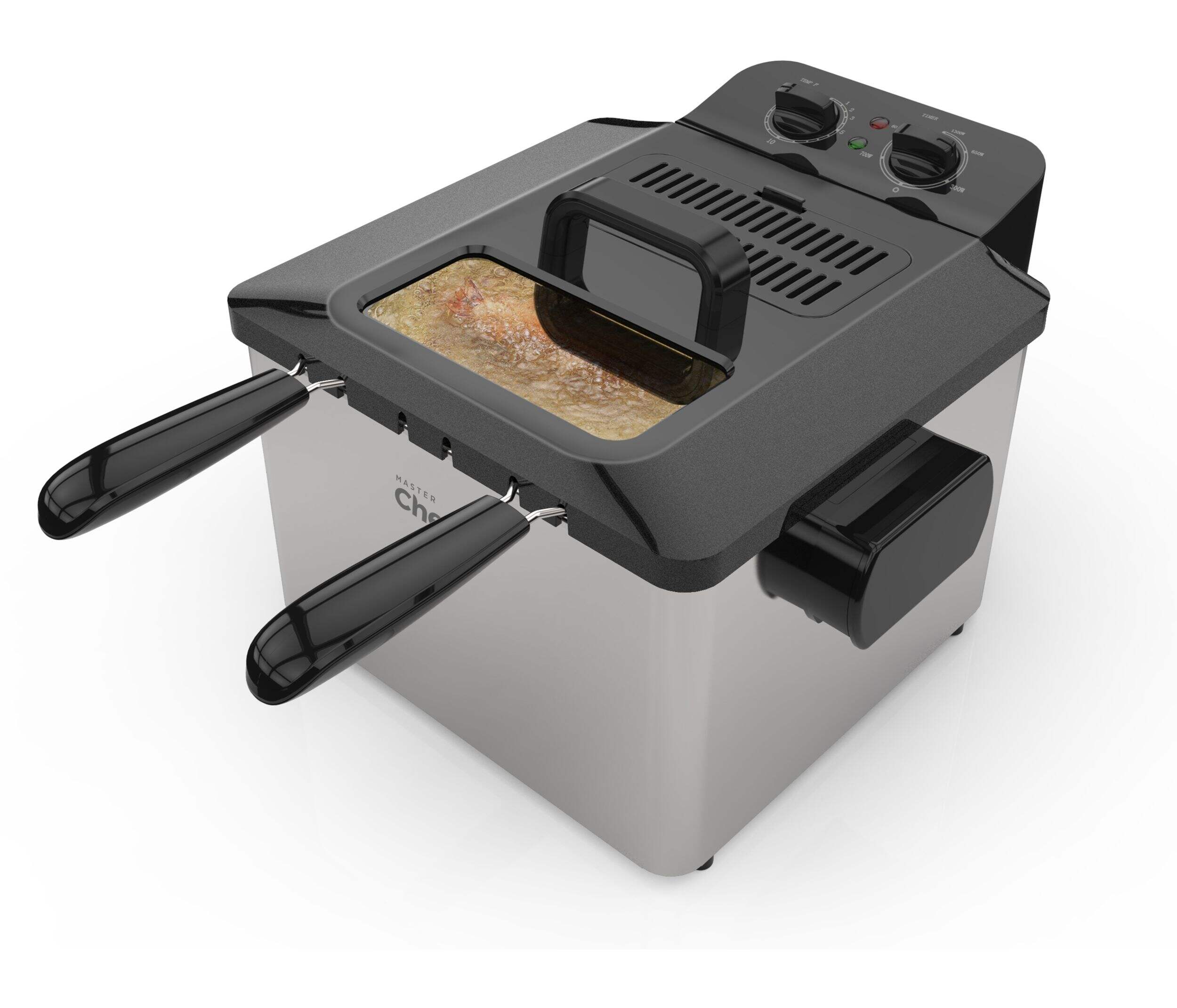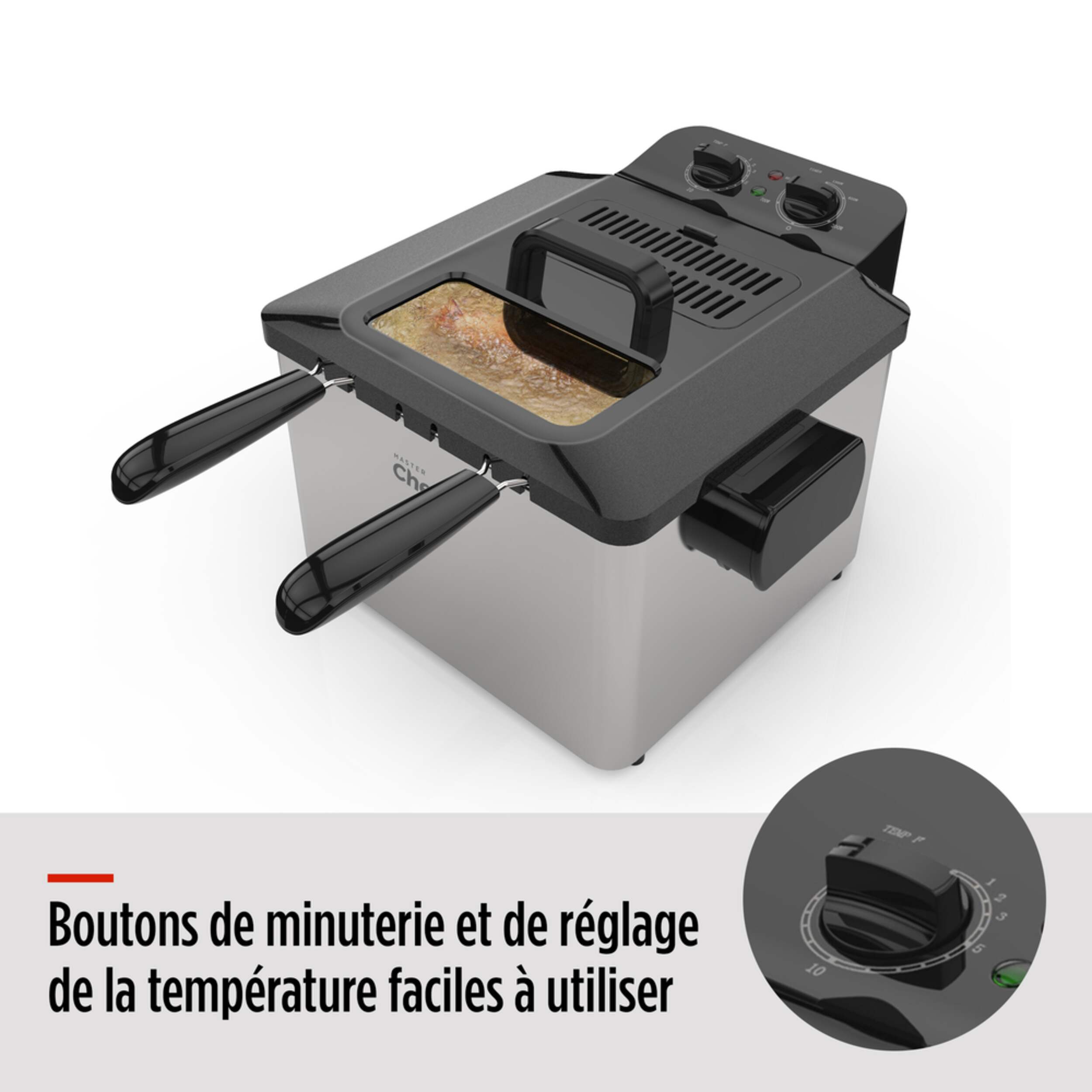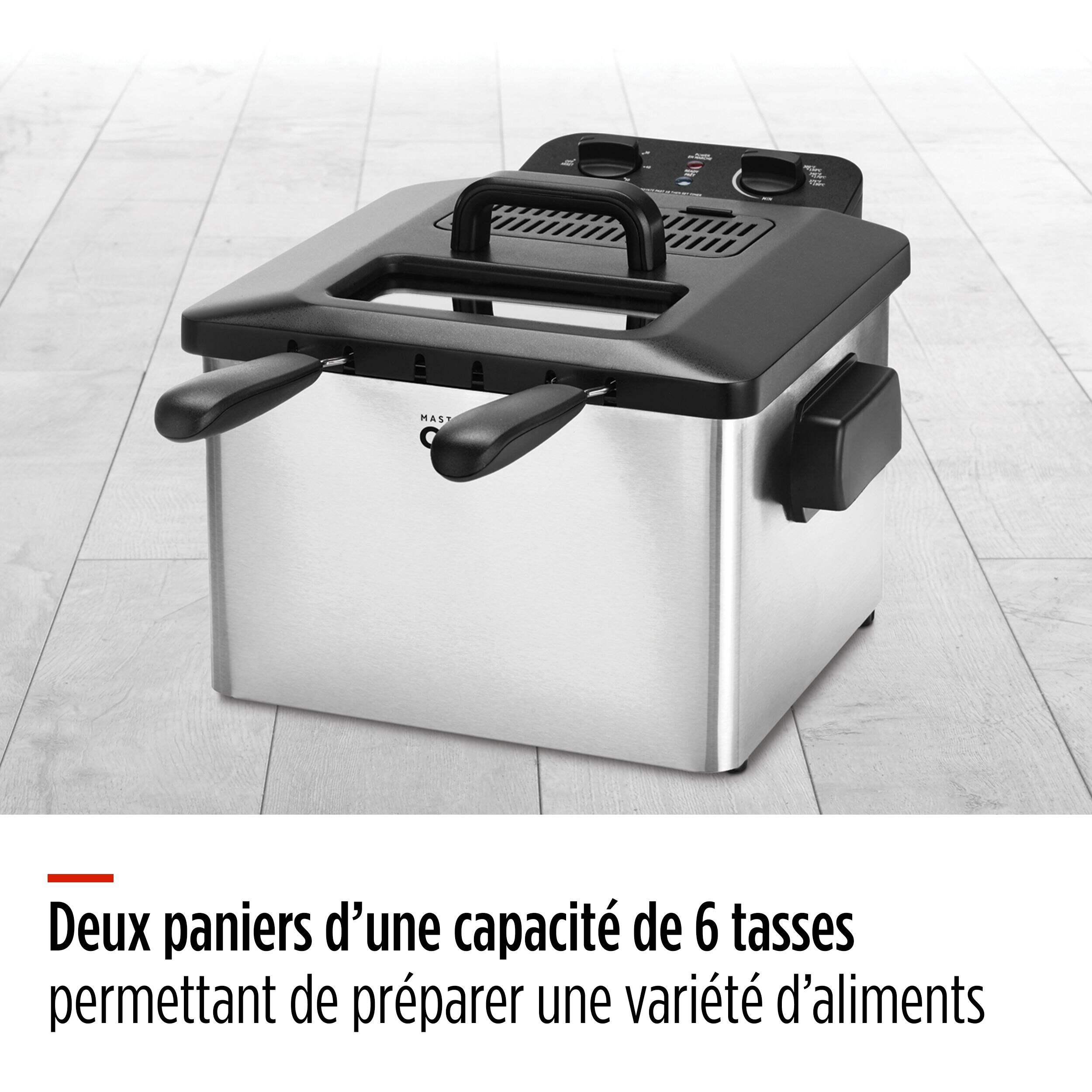 Créez facilement vos plats frits préférés à la maison avec la friteuse Master Chef. Dotée de 2 paniers de friture, cette friteuse électrique vous permet de cuire une variété d'aliments simultanément, ce qui la rend idéale pour nourrir de nombreuses personnes. La grande capacité vous assure de cuire une grande quantité, tandis que la fenêtre en verre sur le couvercle vous permet de surveiller vos aliments pendant la cuisson, pour des résultats parfaits à tout coup. Plus pratique encore, la friteuse est équipée d'un minuteur et de boutons de réglage de la température vous permettant de contrôler précisément votre cuisson. L'élément chauffant immergé accélère le temps de cuisson pour vous permettre de déguster des plats délicieux et croustillants en un rien de temps. En acier inoxydable et en émail, cette friteuse a un aspect élégant et moderne qui s'intègre parfaitement à votre comptoir. Polyvalente et facile à utiliser, la friteuse Master Chef est idéale pour préparer une grande variété de plats, du poulet frit aux frites en passant par le tempura, le fish and chips, les beignes et plus encore.