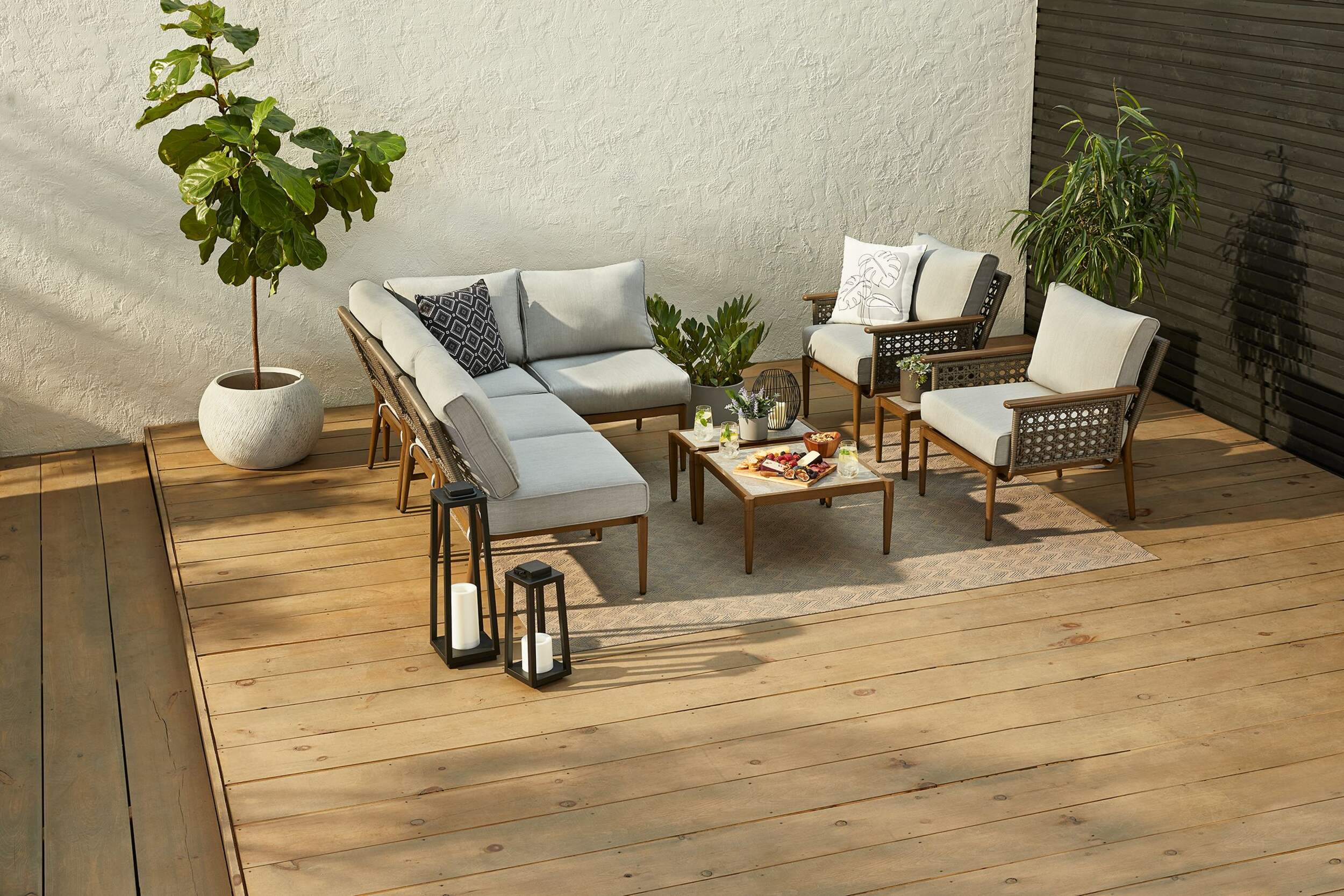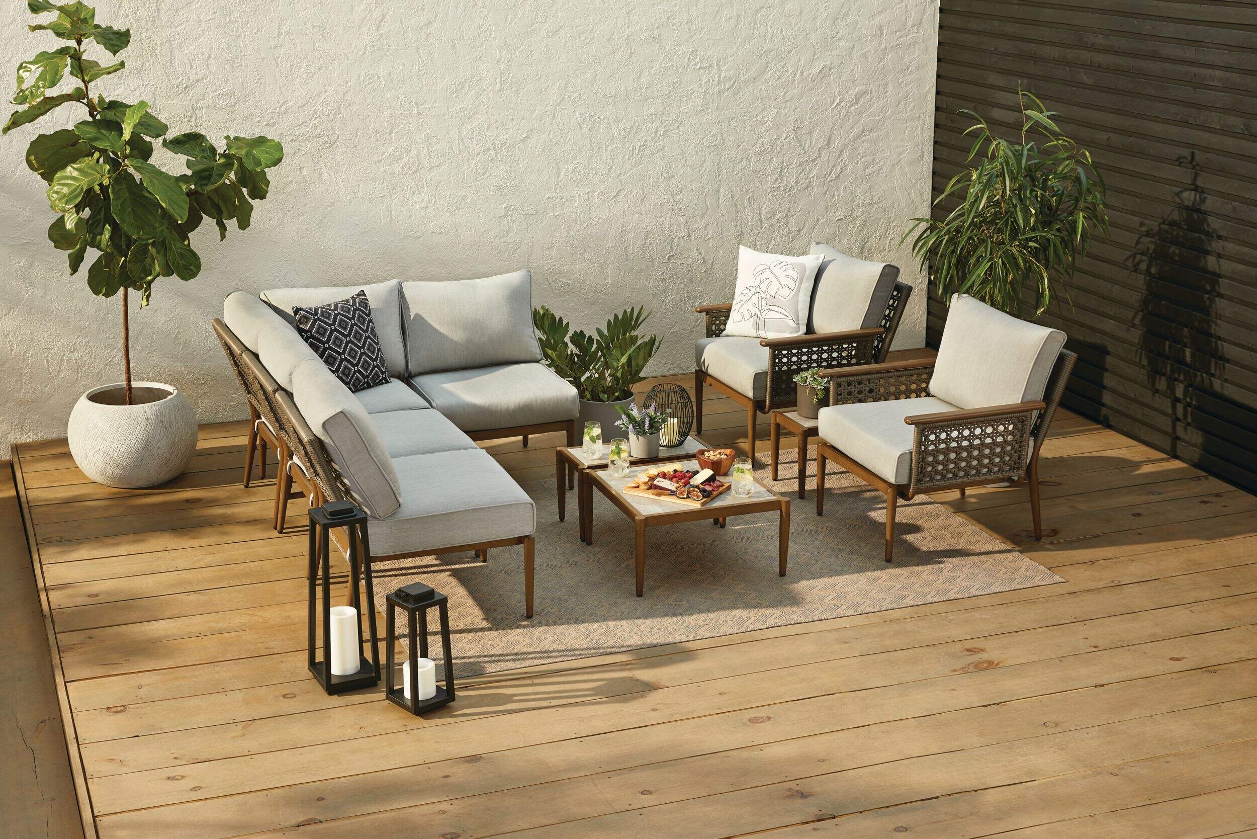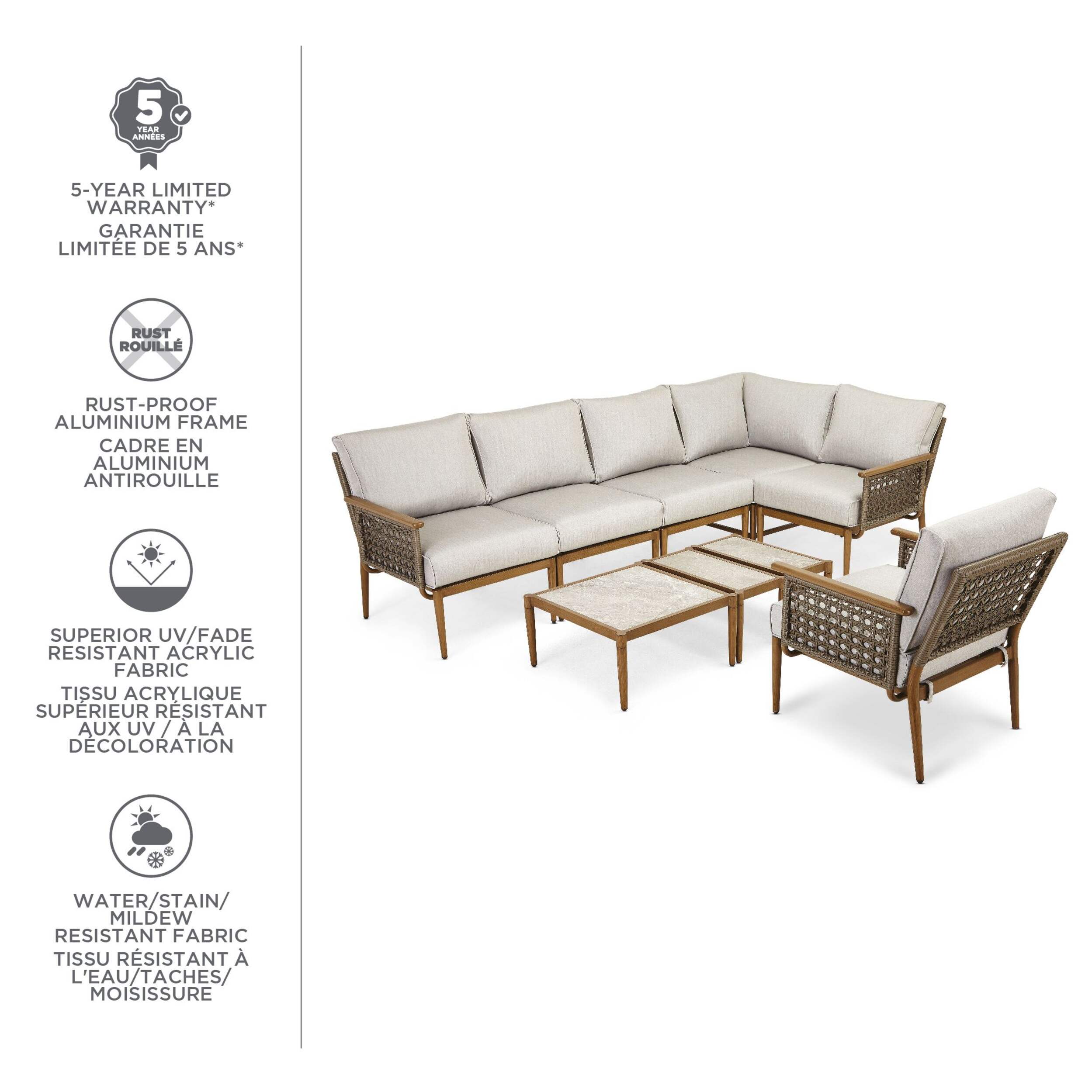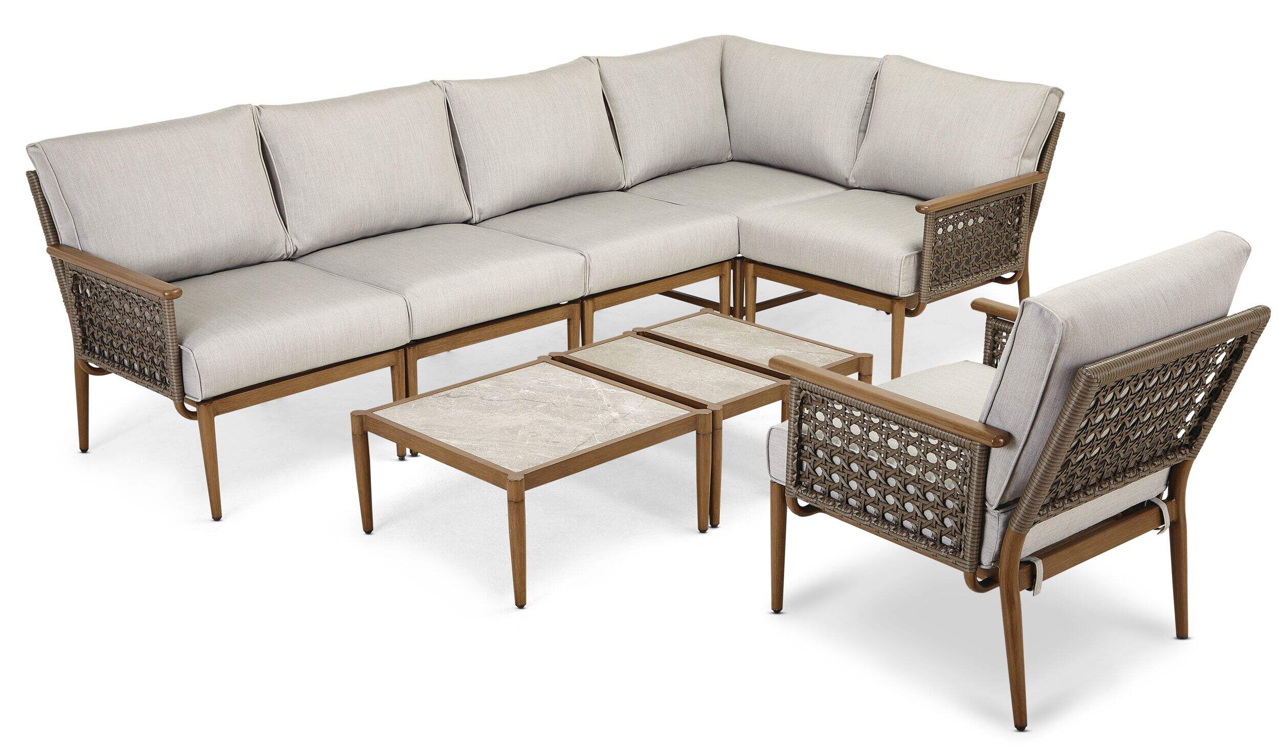 Les accents en osier tressé à la main résistant aux intempéries rehaussent l'élégance du mobilier et sa résistance aux intempéries