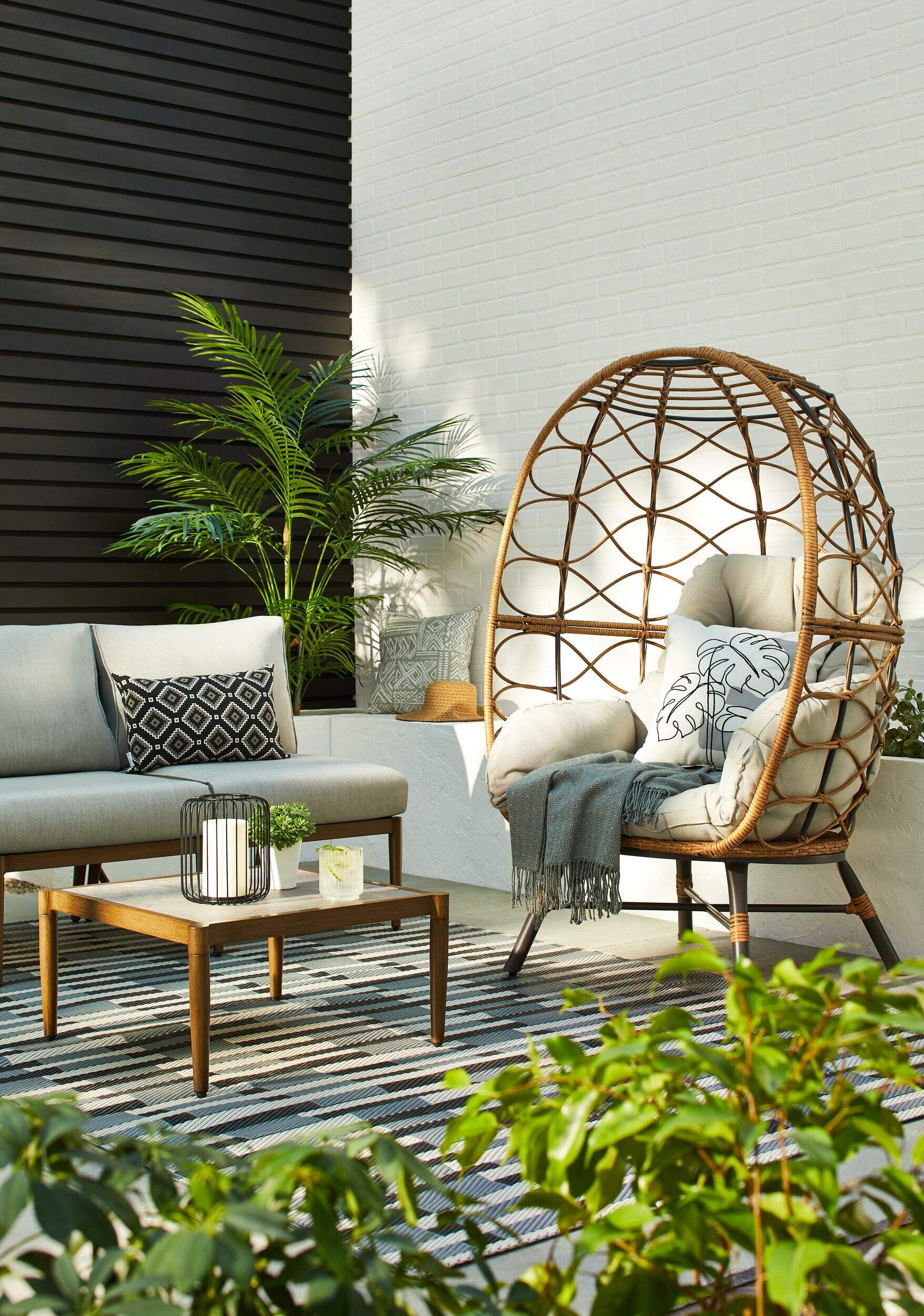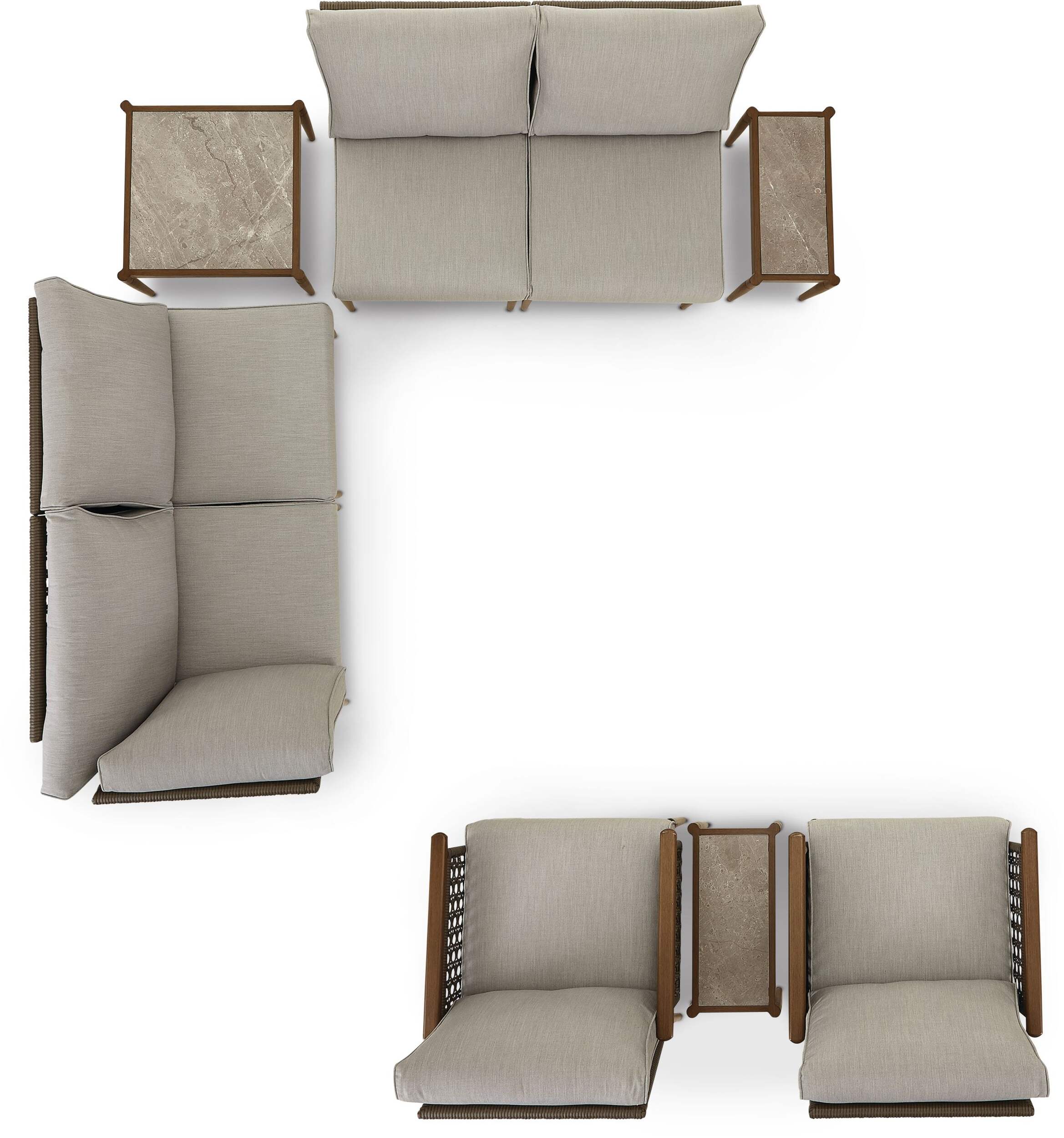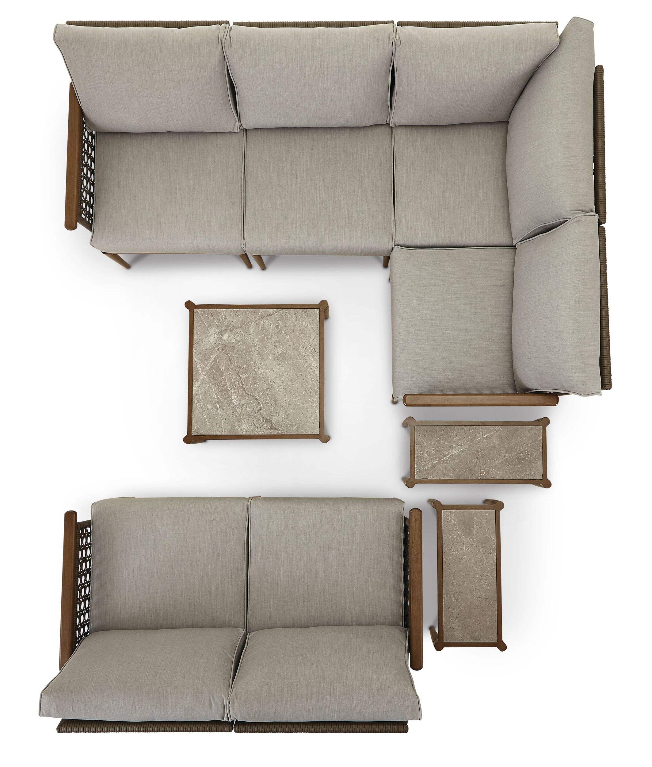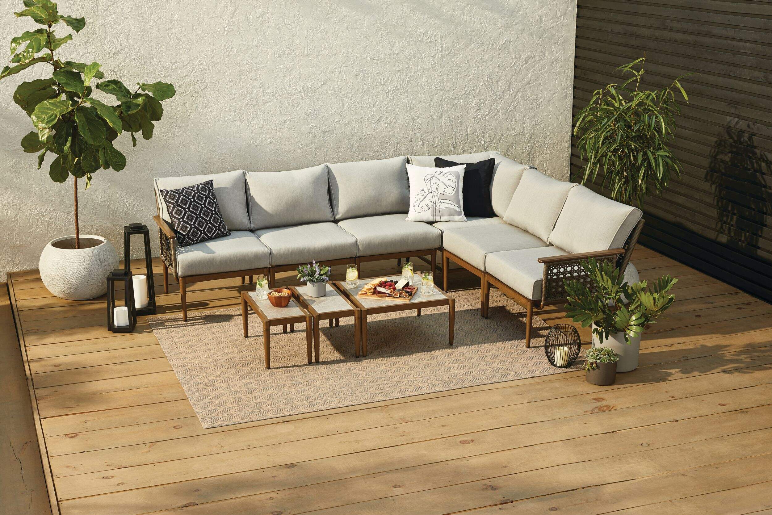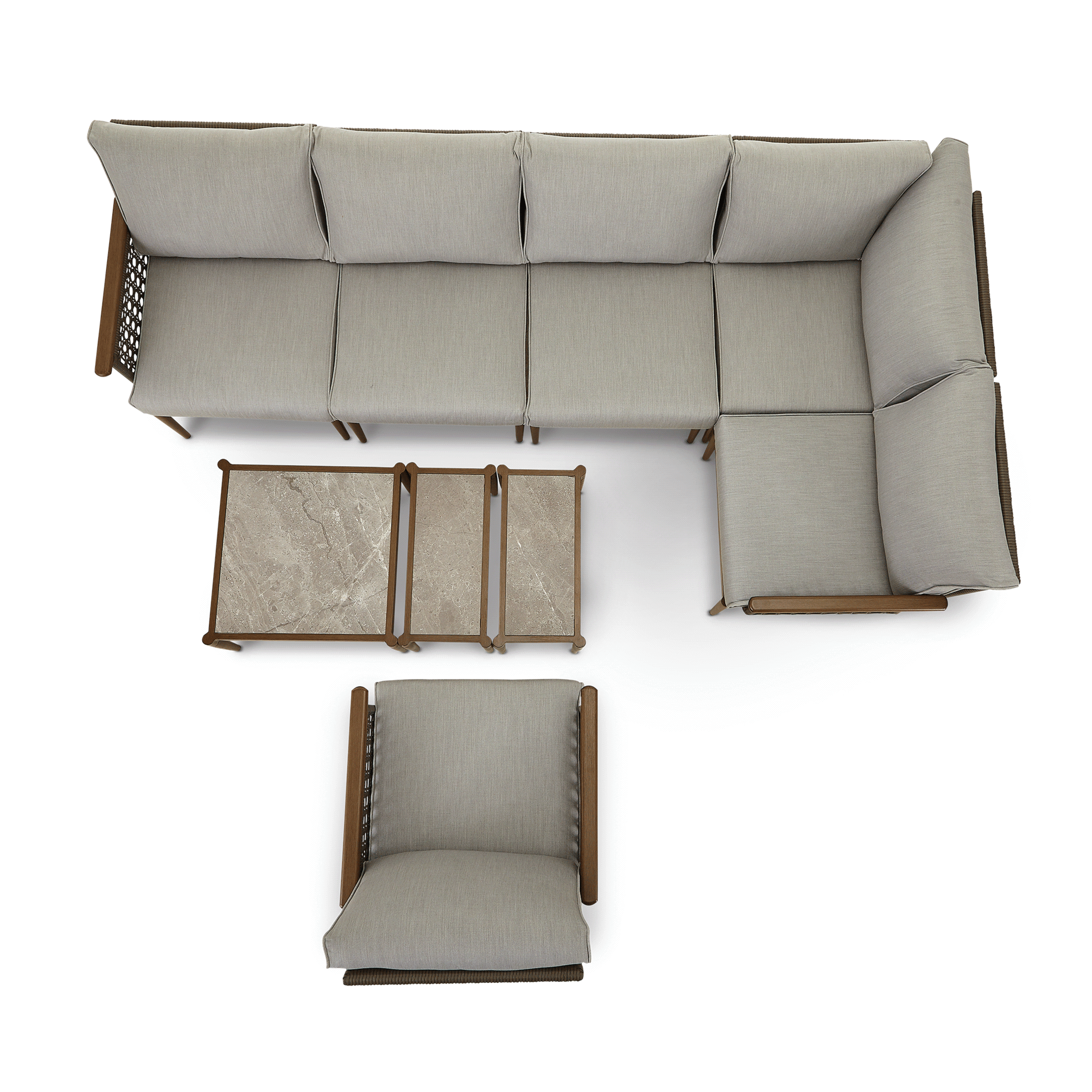 Les accents en osier tressé à la main résistant aux intempéries rehaussent l'élégance du mobilier et sa résistance aux intempéries