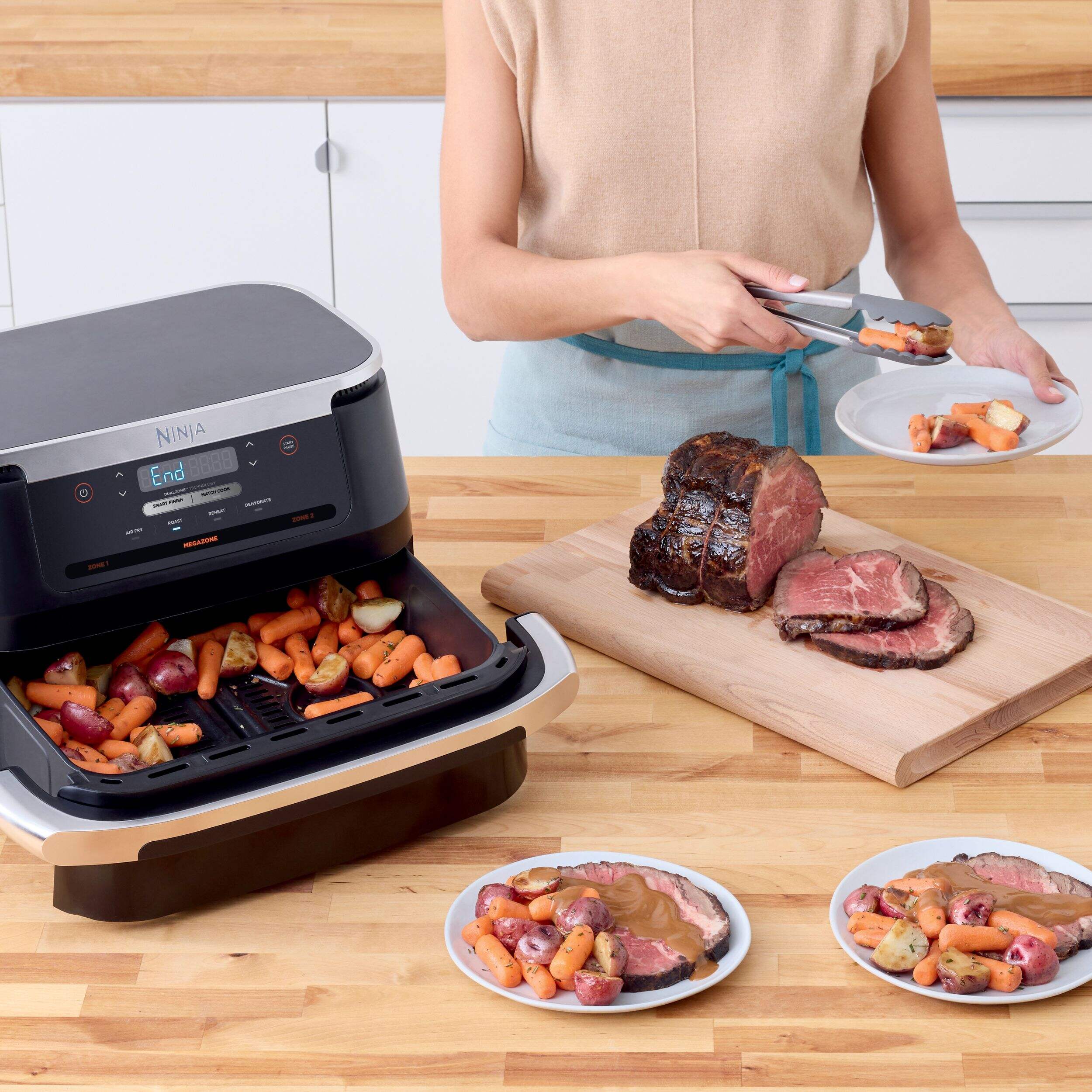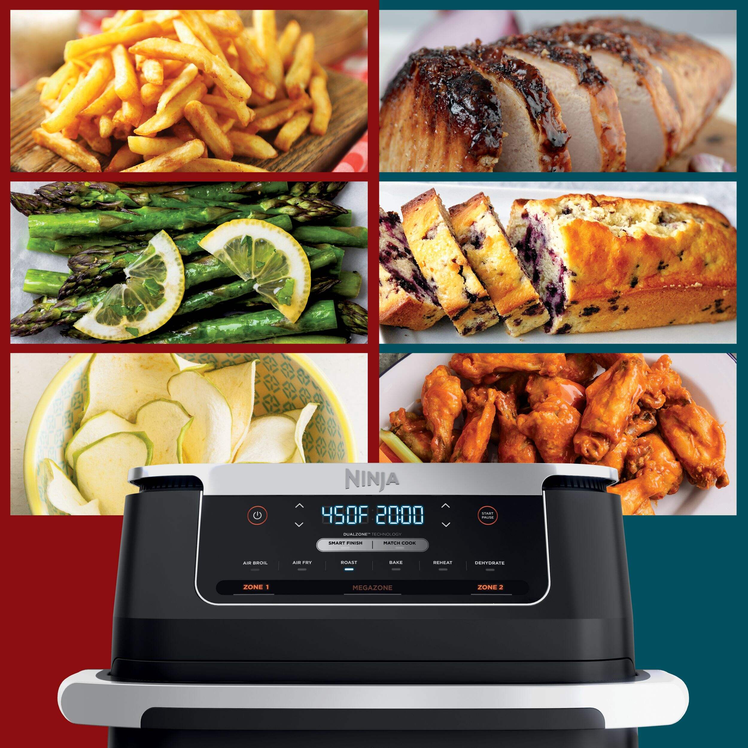 Two independent cooking baskets let you cook 2 different foods, 2 different ways, and finish at the same time with Smart Finish and Match Cook