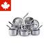 The PADERNO Canadian Signature 13-pc Cookware Set includes an assortment of pots and pans to suit all of your cooking needs. Each piece is constructed from 18/10 stainless steel for added durability, with aluminum-encapsulated bases for even heat distribution. The riveted cool-touch handles help you easily move these cookware pieces while keeping your hands safe. This versatile PADERNO cookware set is suitable for use on induction cooktops.