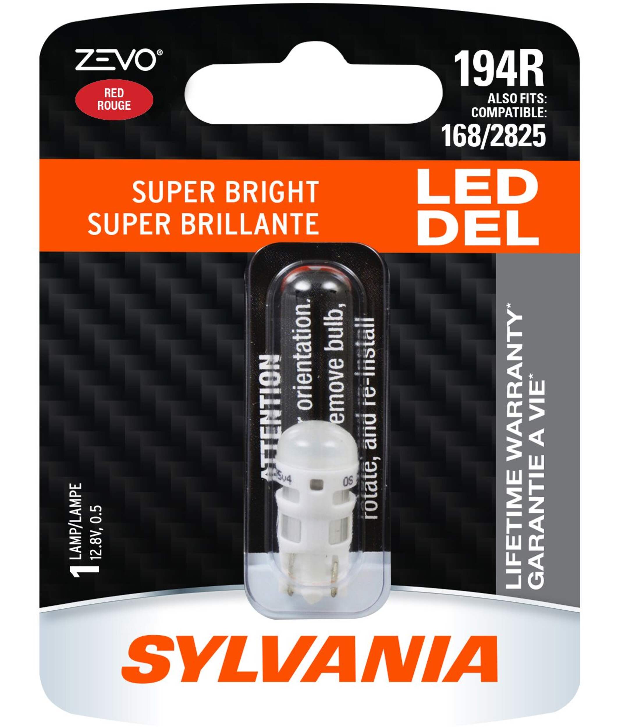 The SYLVANIA 194R Red ZEVO® LED bulbs deliver a brighter, sharper light. As easy as changing a lightbulb, you can have improved performance and safety for interior and exterior applications. World-class manufacturing and high-quality guarantee an extended lifetime of your ZEVO® bulbs.