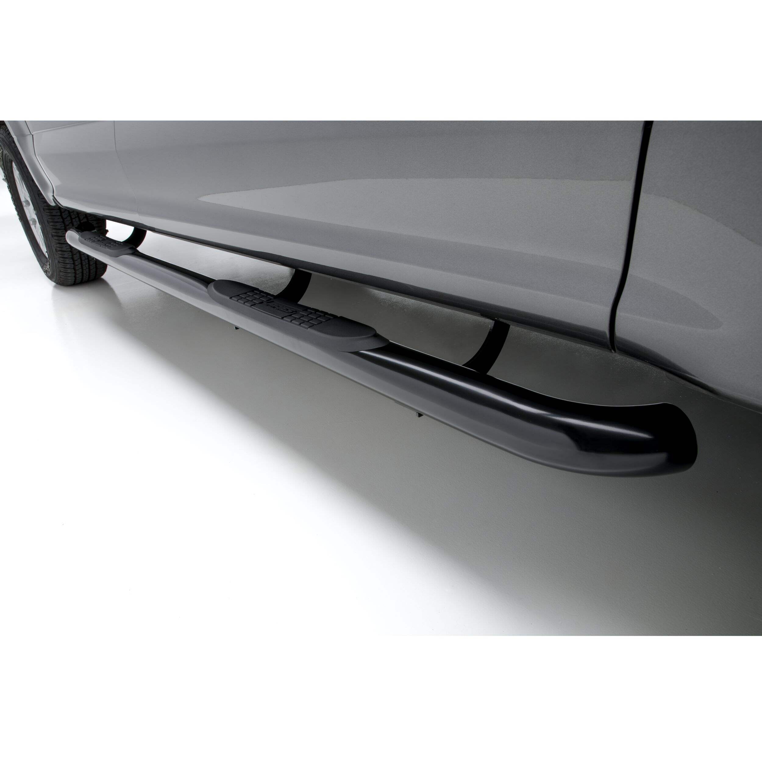 The ARIES Round Semi-Gloss Stainless Steel Truck Side Bars feature a heavy-wall tube design made of rust-resistant stainless steel. Installation is no-drill with heavy-duty steel mounting brackets for a solid step. This pair of vehicle-specific side bars includes all necessary mounting hardware for a seamless fit.