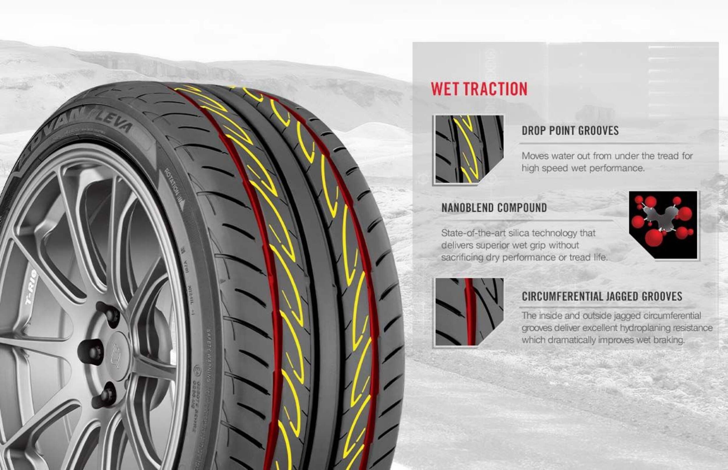 Yokohama ADVAN FLEVA Tire features an advanced profile that helps control contact pressure for balanced wet performance and steering stability at top speeds