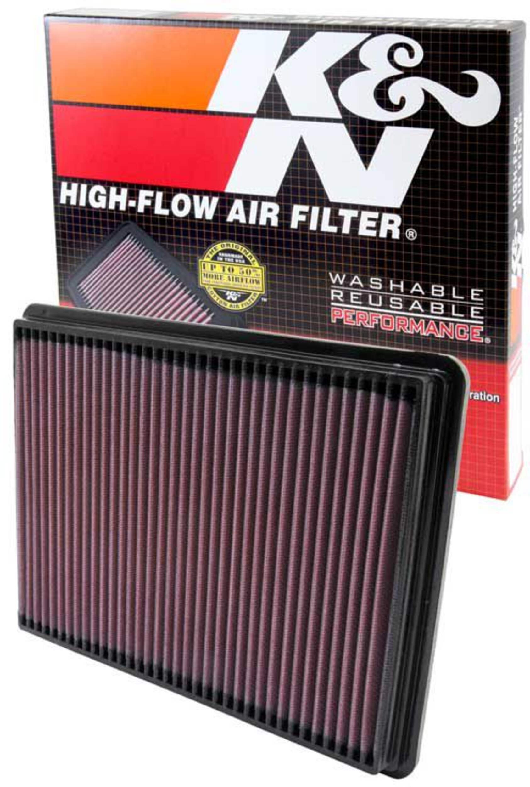 The K&N High-Flow Replacement Air Filter enhances your vehicle's performance by increasing airflow by up to 50% compared to traditional disposable paper filters. This washable and reusable filter provides long-term value and environmental benefits. Pre-oiled and easy to install, it fits seamlessly into your vehicle's existing air box, offering improved horsepower and acceleration. Backed by a 10-year/million-mile limited warranty, this filter is built to deliver durable and reliable performance.