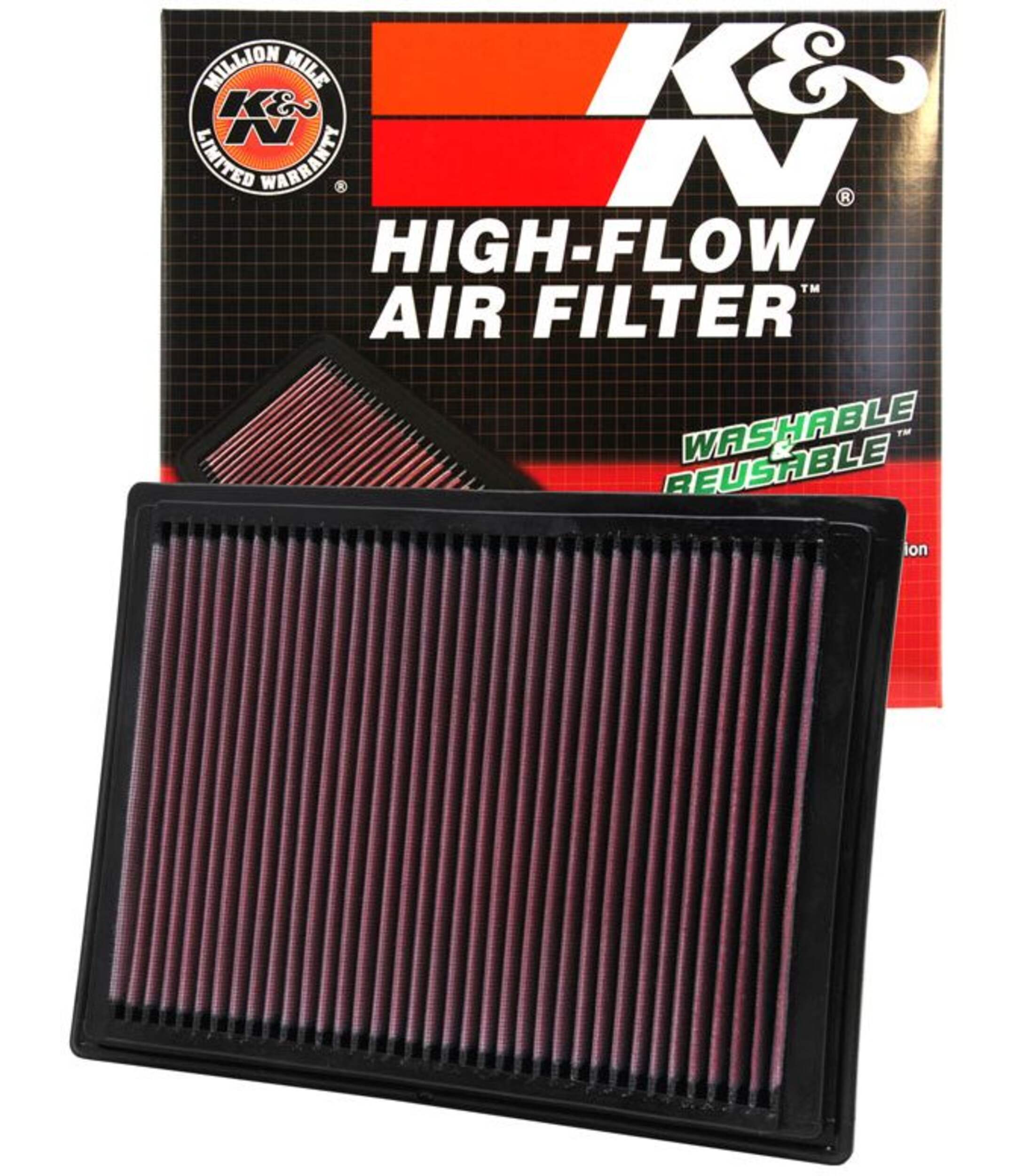 The K&N High-Flow Replacement Air Filter enhances your vehicle's performance by increasing airflow by up to 50% compared to traditional disposable paper filters. This washable and reusable filter provides long-term value and environmental benefits. Pre-oiled and easy to install, it fits seamlessly into your vehicle's existing air box, offering improved horsepower and acceleration. Backed by a 10-year/million-mile limited warranty, this filter is built to deliver durable and reliable performance.