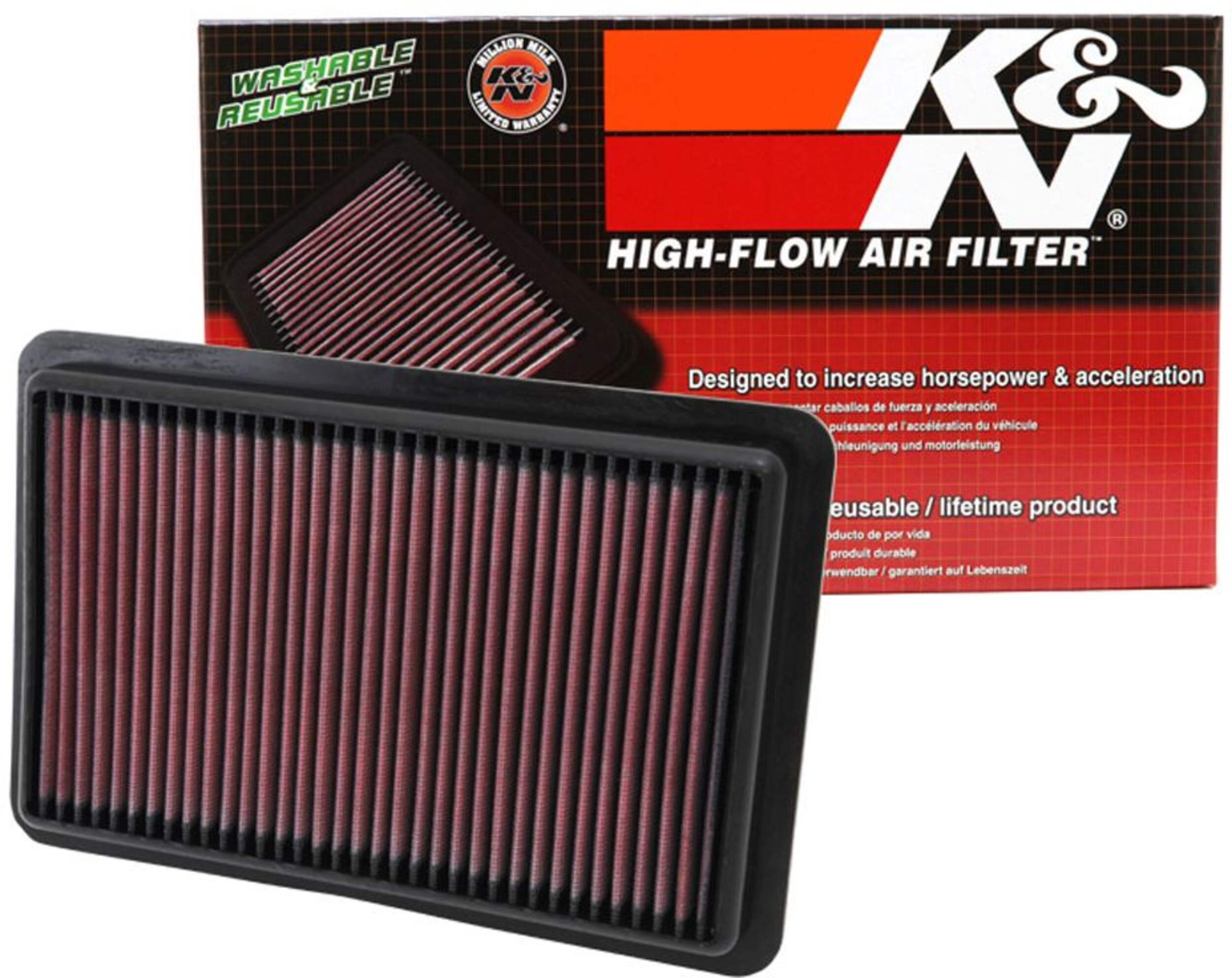 The K&N High-Flow Replacement Air Filter enhances your vehicle's performance by increasing airflow by up to 50% compared to traditional disposable paper filters. This washable and reusable filter provides long-term value and environmental benefits. Pre-oiled and easy to install, it fits seamlessly into your vehicle's existing air box, offering improved horsepower and acceleration. Backed by a 10-year/million-mile limited warranty, this filter is built to deliver durable and reliable performance.