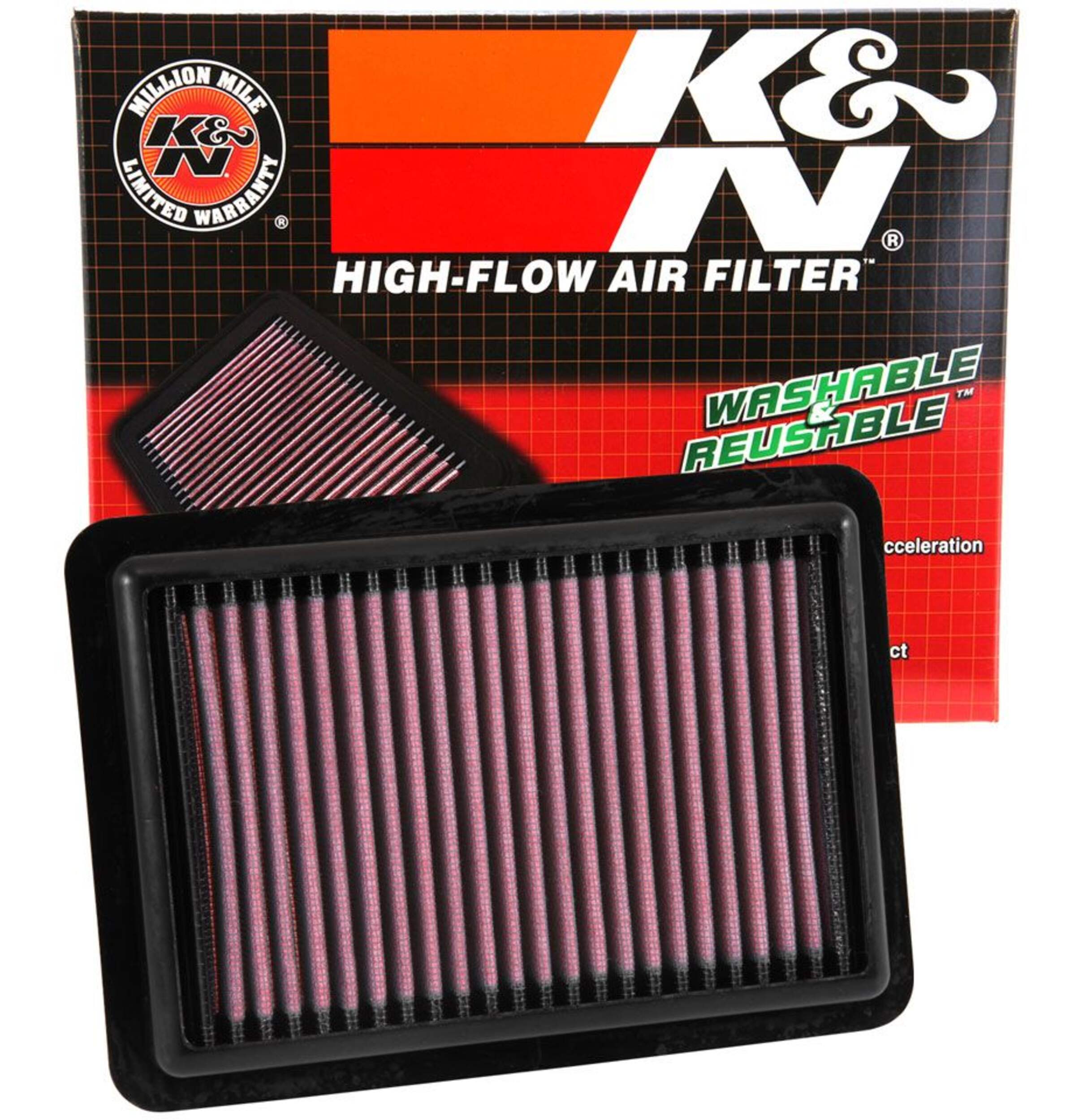 The K&N High-Flow Replacement Air Filter enhances your vehicle's performance by increasing airflow by up to 50% compared to traditional disposable paper filters. This washable and reusable filter provides long-term value and environmental benefits. Pre-oiled and easy to install, it fits seamlessly into your vehicle's existing air box, offering improved horsepower and acceleration. Backed by a 10-year/million-mile limited warranty, this filter is built to deliver durable and reliable performance.
