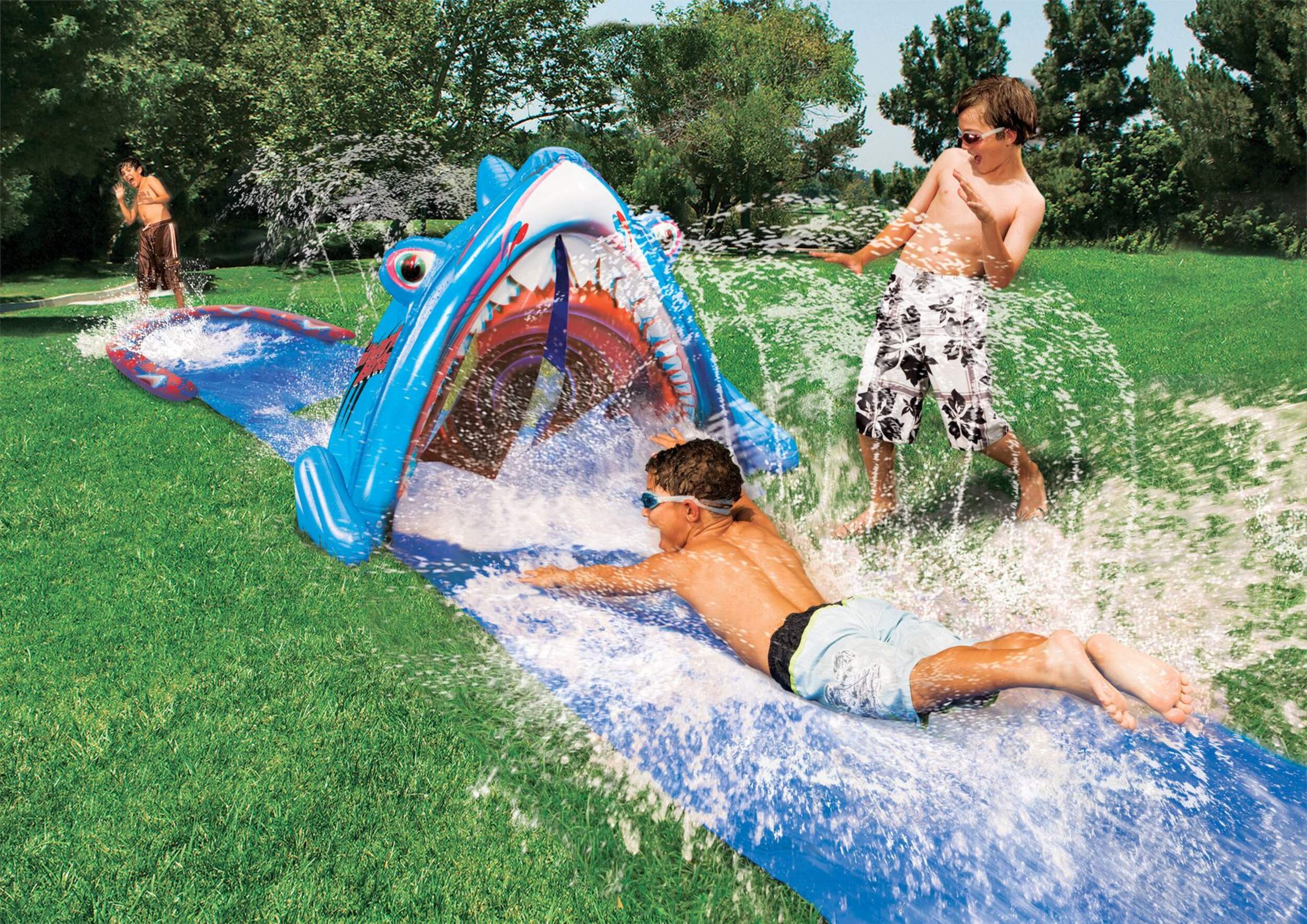 Slide through the jaws of terror with the 3D Shark Bite Water Slide
