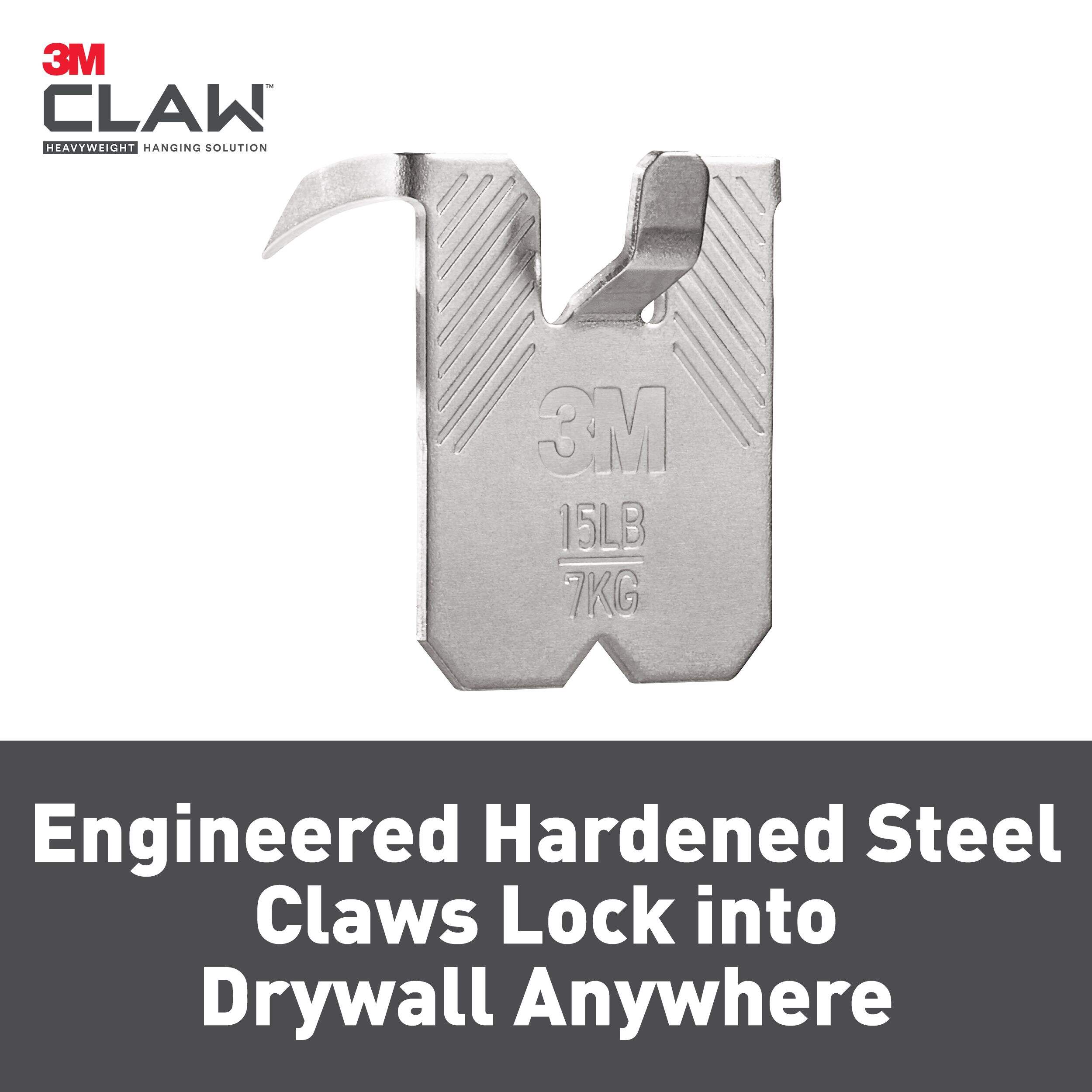 3M Claw Drywall Picture Hanger is proven to hold up to 15 pounds