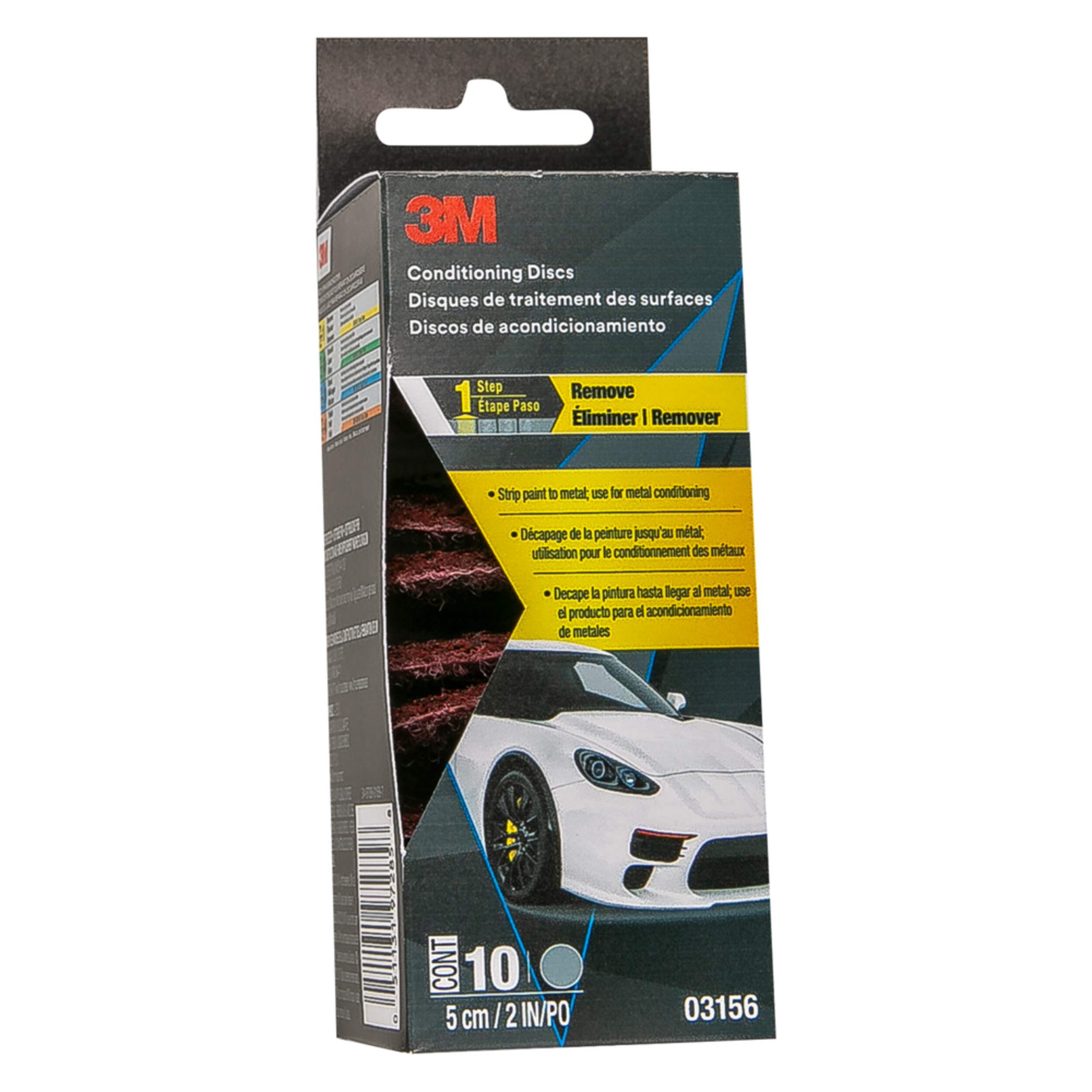 3M™ Conditioning Abrasive Discs combine aggressive cutting features with superior-conforming, non-woven fibre construction – great for auto body applications such as deburring, finishing and polishing. Two-inch (50mm) conditioning discs feature durable, fast-cutting aluminum oxide mineral abrasive, suitable for all metals, and Roloc™ Backing for support and quick change-outs.