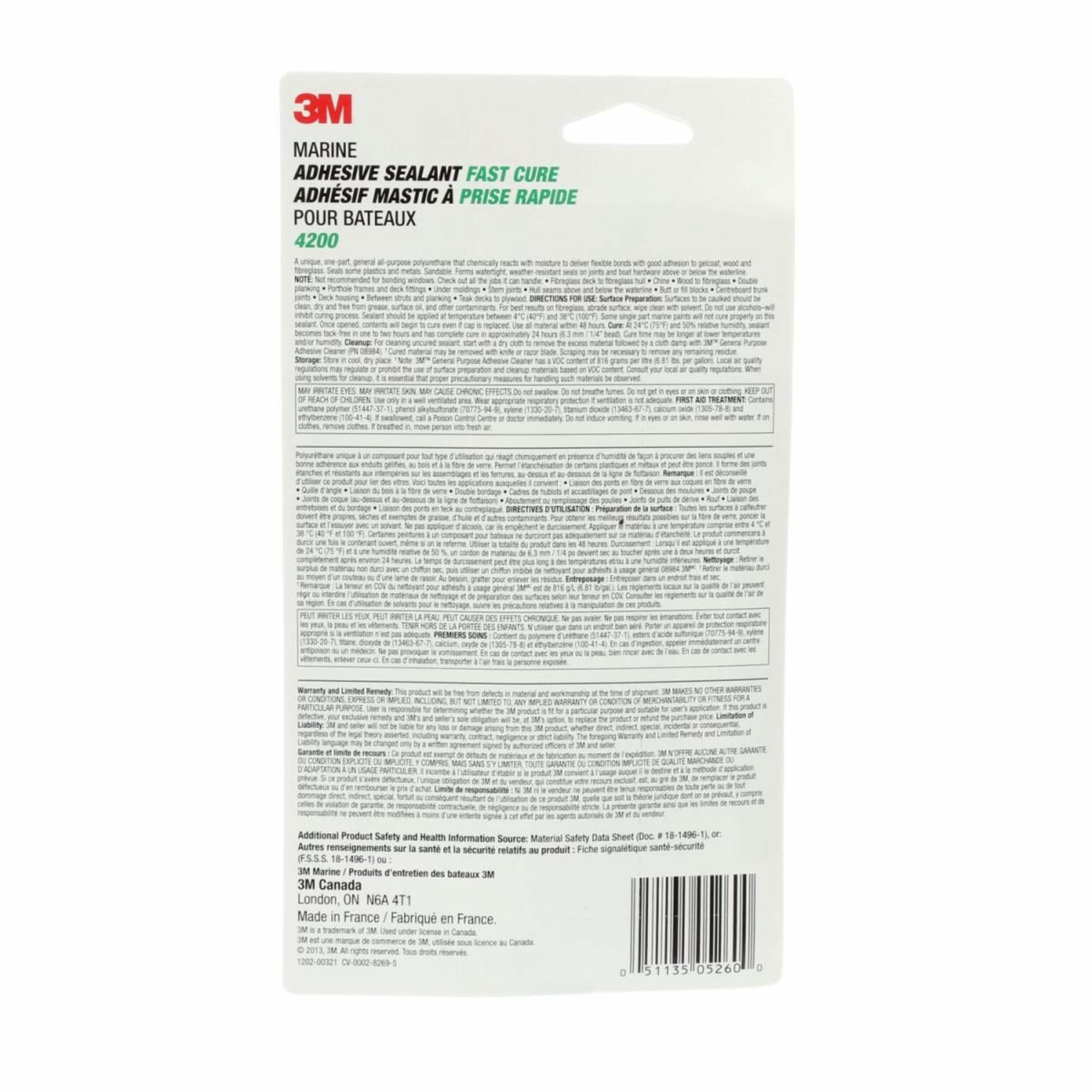 3M Marine Adhesive Sealant Fast Cure 420 is a one-part, general-purpose polyurethane for flexible bonds to wood, fibreglass, Gelcoat, plastic and metals