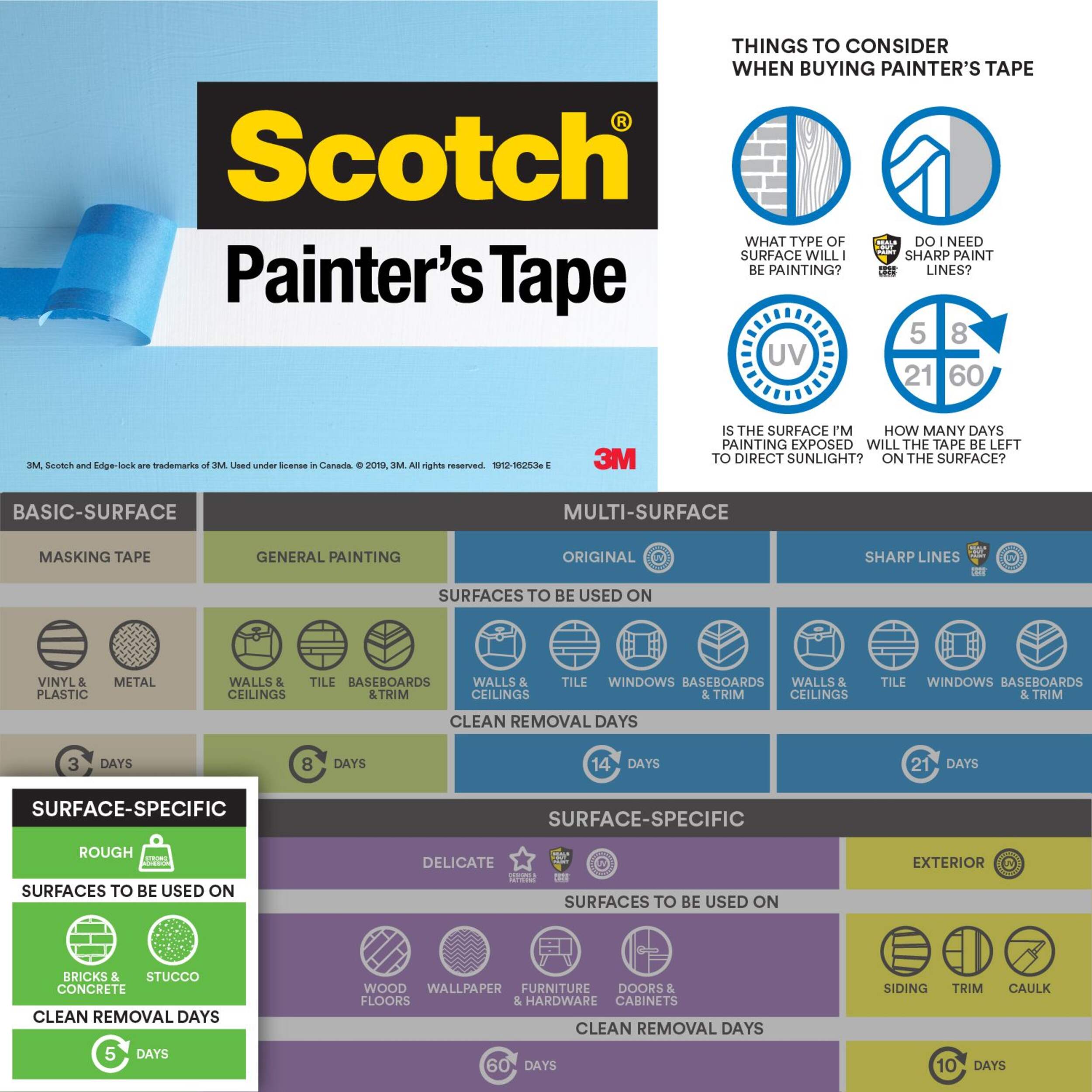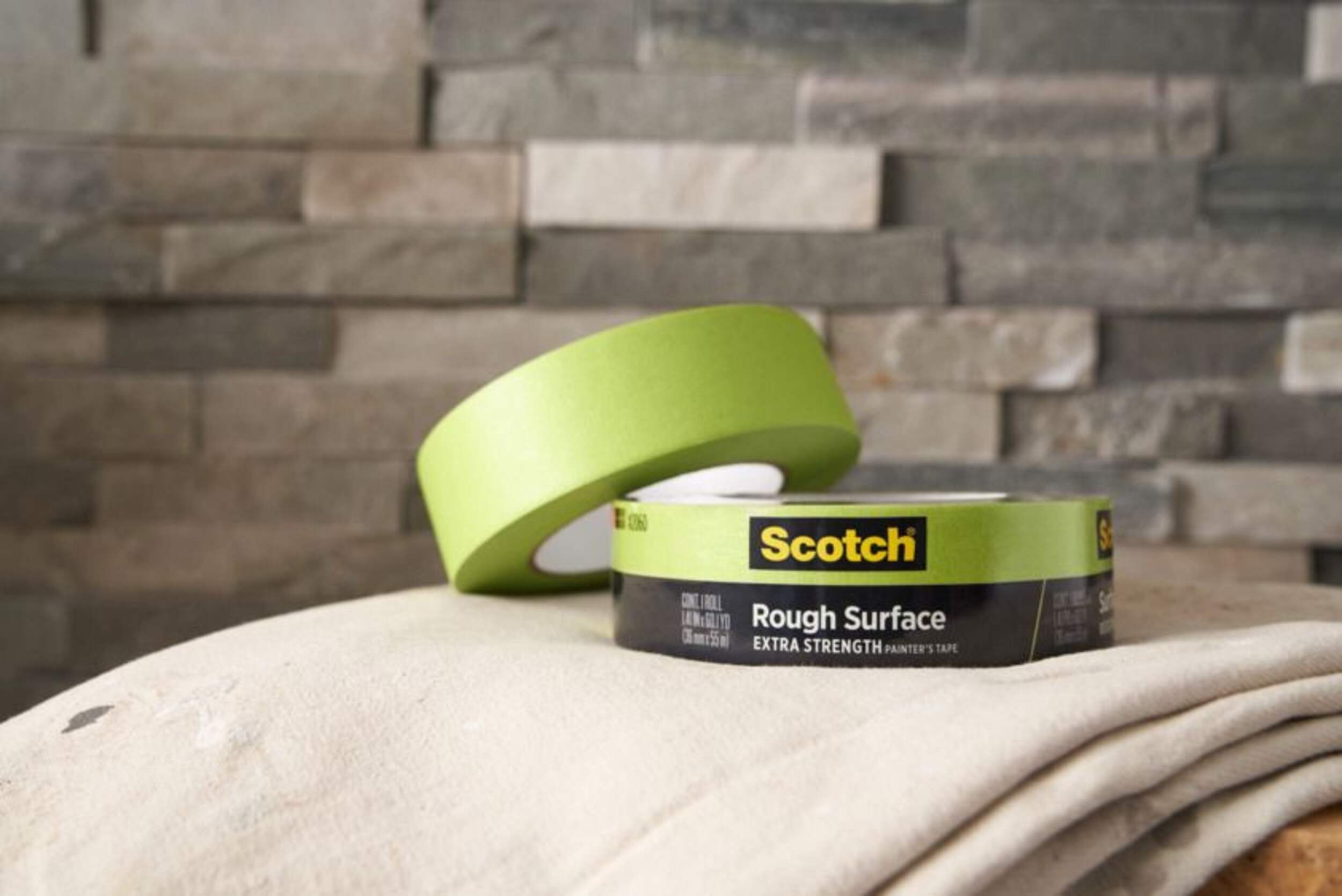 Scotch® Rough Surface Painter’s Tape has a very strong adhesive designed for performance on rough, non-damageable surfaces