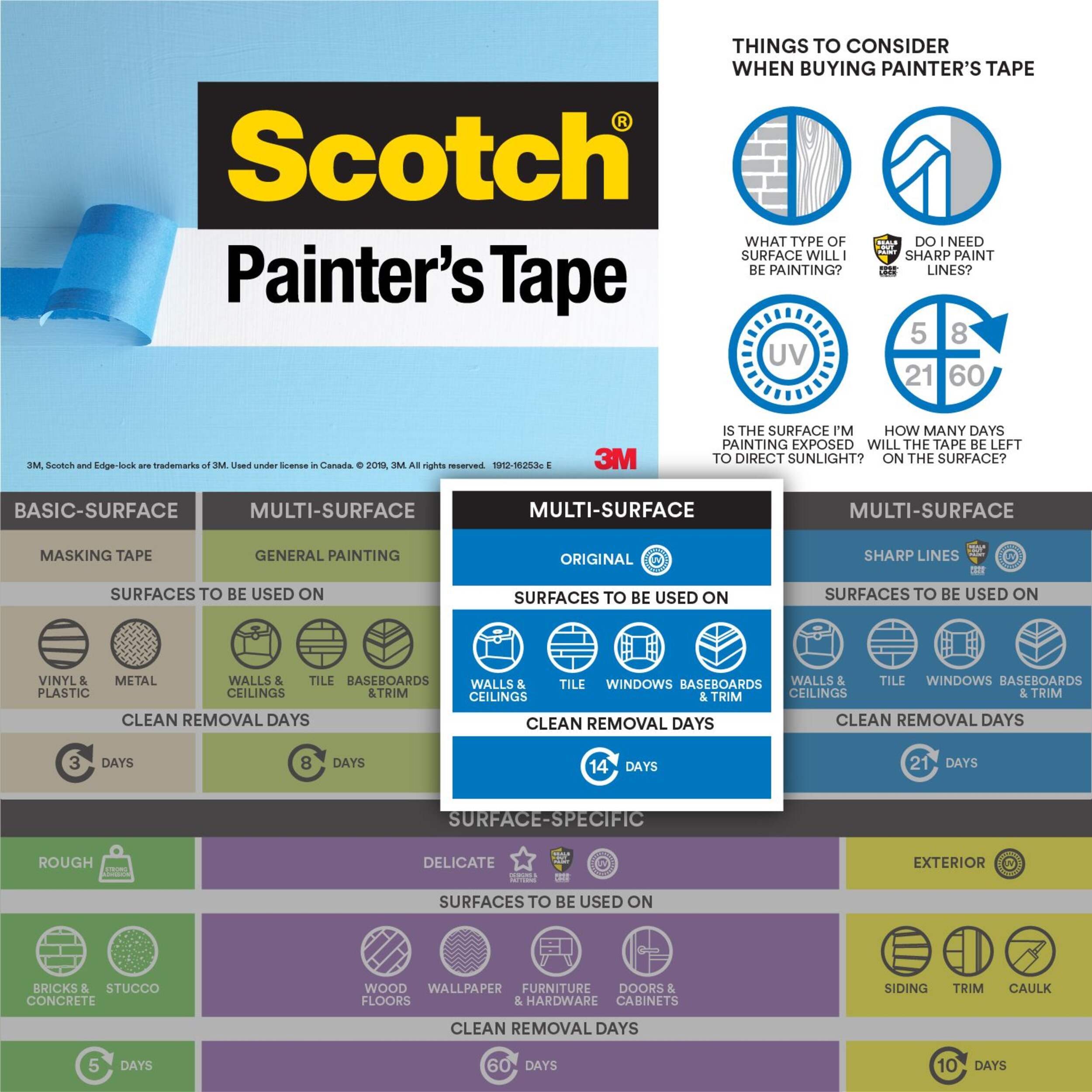 3M ScotchBlue Original Multi-Surface Painter's Tape helps users achieve clean, professional paint edges without residue or damage. Its reliable adhesion and UV resistance ensure consistent results on various surfaces, making it suitable for both DIY projects and professional work.