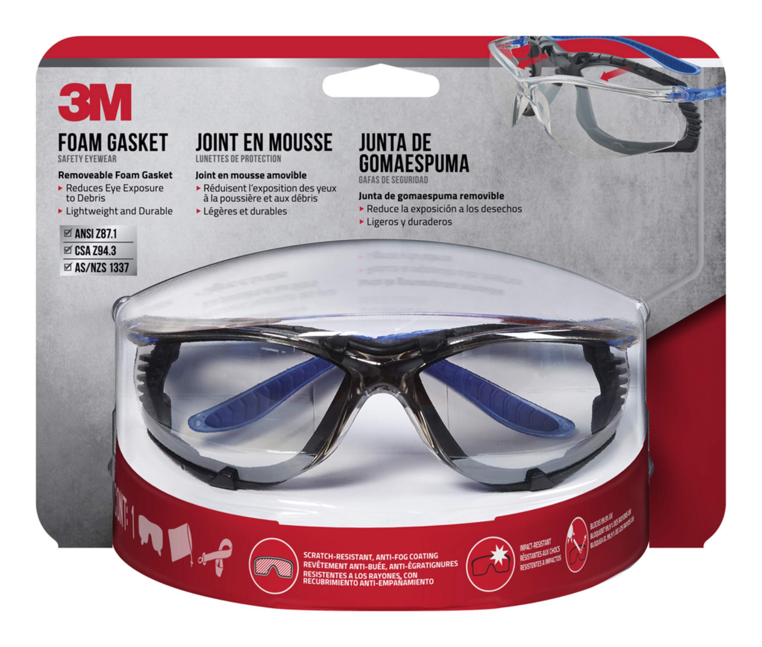 For use in a variety of working environments, 3M™ Foam Gasket Safety Eyewear goes the extra distance to provide tough, dependable protection. This protective eyewear features a removable foam gasket around the lens, designed to create a superior seal against the wearer's face to provide added protection against dirt and flying debris. The coated lenses resist scratching and fogging for versatile all-purpose wear on jobsites.