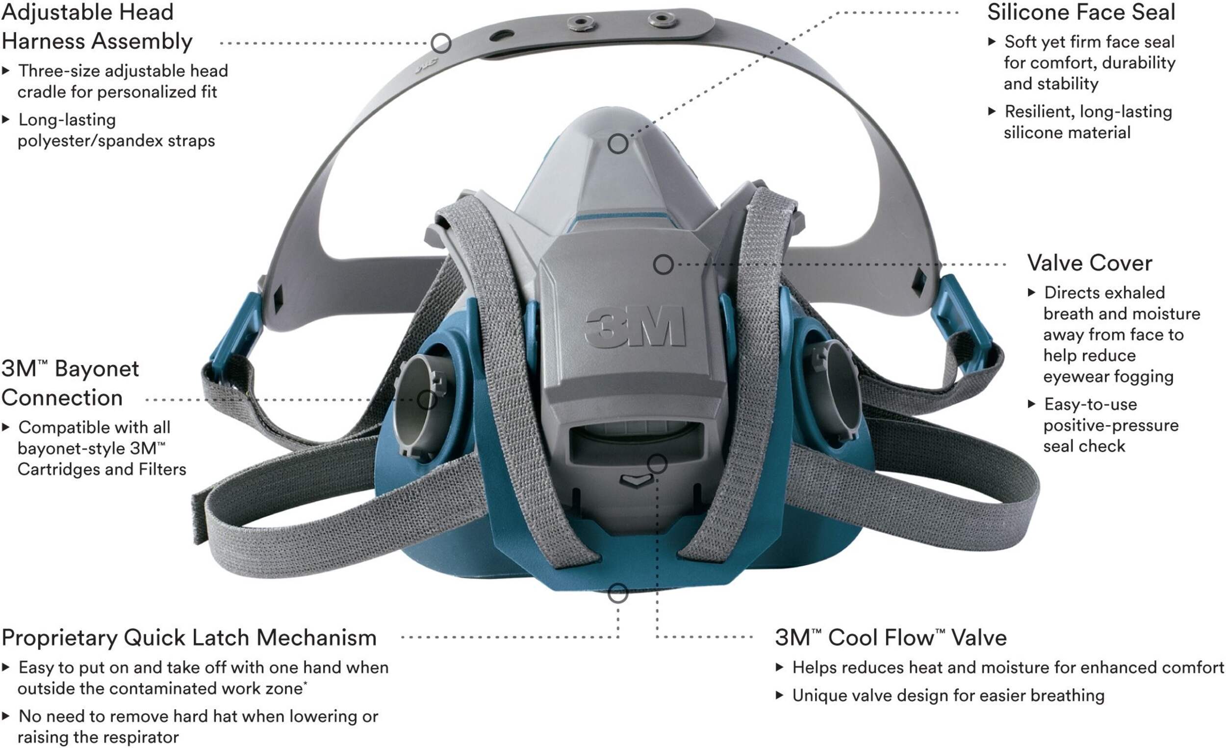 The 3M™ Cool Flow™ Respirator is designed for the professional. Offering both convenience and protection on the job, this reusable respirator comes with a proprietary Cool Flow™ valve that allows for easy exhalation and heat reduction for cool, dry usage. Versatility, comfort, and protection — the 3M™ Cool Flow™ Respirator is the ultimate choice for the hardest workers who need the hardest-working equipment.