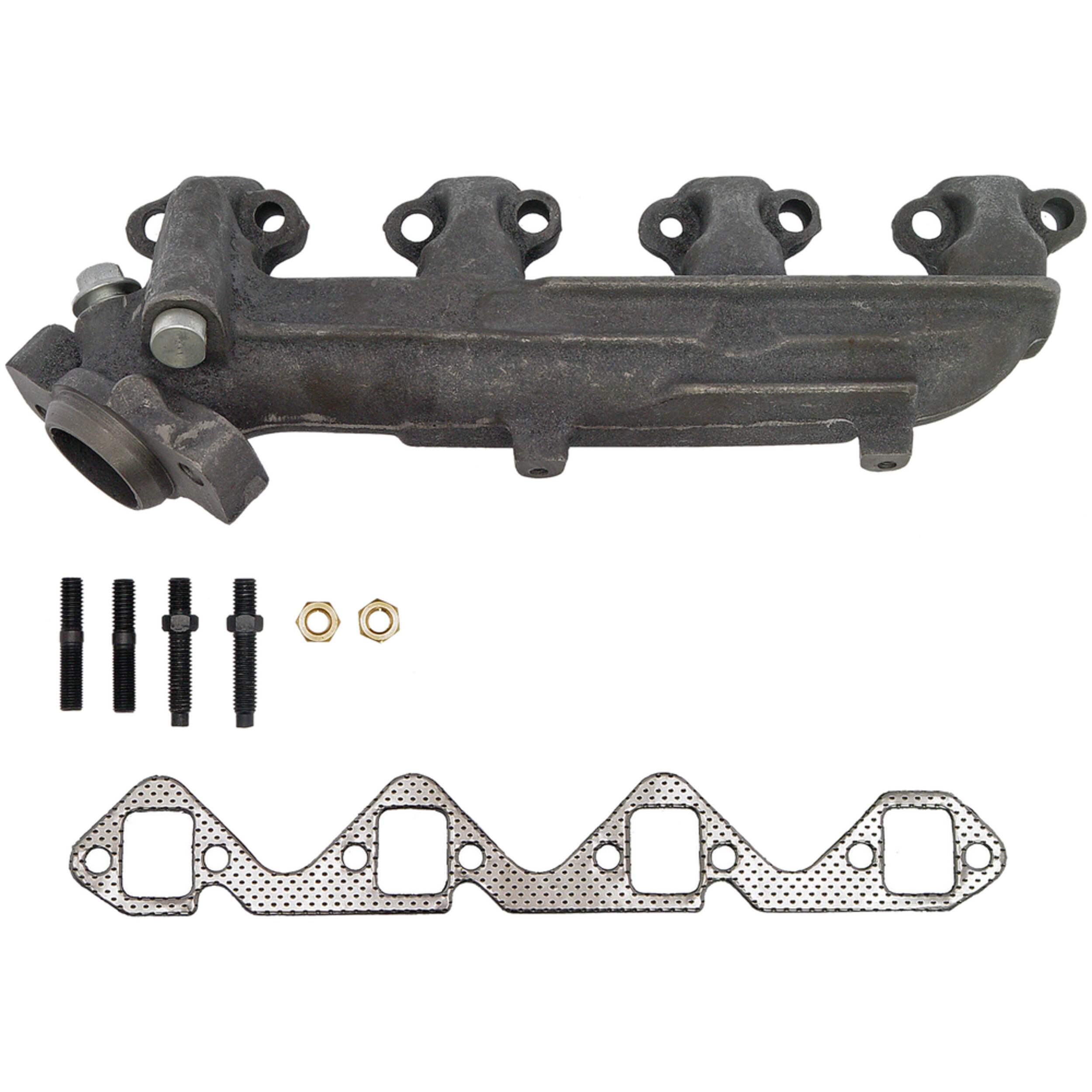 When it's time for automotive repair choose Dorman's OE Solutions Exhaust Manifold. This durable steel manifold is a direct replacement for a proper fit. Available in a variety of kits, it may contain studs, nuts, and bolts. Although hardware is separately available, installation might not necessitate it, depending on the application. This exhaust manifold is compatible with various Ford models.