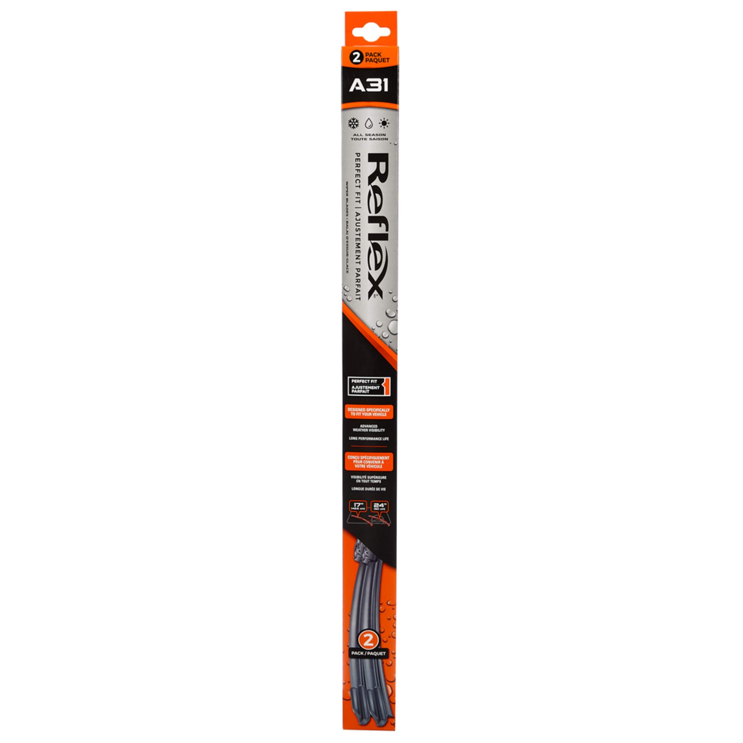 Reflex Perfect Fit 2-Pack Wiper BladesThis new 2-pack of wiper blades comes in 50 different combinations of driver- and passenger-side blade sizes. It’s vehicle-specific design and fit makes for a quick and easy installation, no adaptors required. Learn more now!