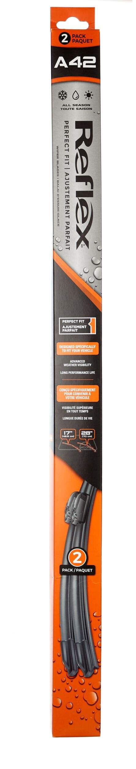 Reflex Perfect Fit 2-Pack Wiper BladesThis new 2-pack of wiper blades comes in 50 different combinations of driver- and passenger-side blade sizes. It’s vehicle-specific design and fit makes for a quick and easy installation, no adaptors required. Learn more now!