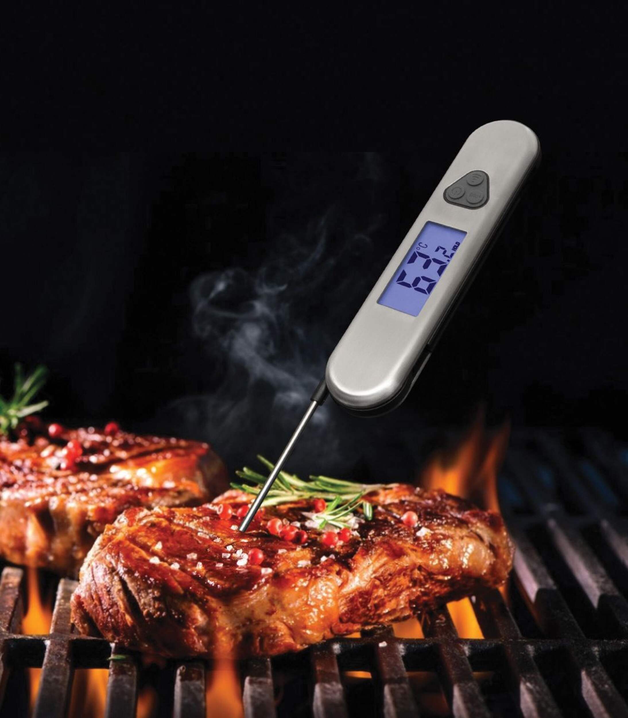 Achieve perfect results in the kitchen with the efficient Accu-Temp Pro Infrared Instant Read Thermometer. Designed with an instant read mode, it quickly measures the internal temperature by the probe penetrating cooked meat, poultry or fish. Its ultra-thin lip further helps deliver quick responses as you're making a meal. This reliable thermometer is built with a durable stainless steel body for lasting use while its slim design ensures easy storage.