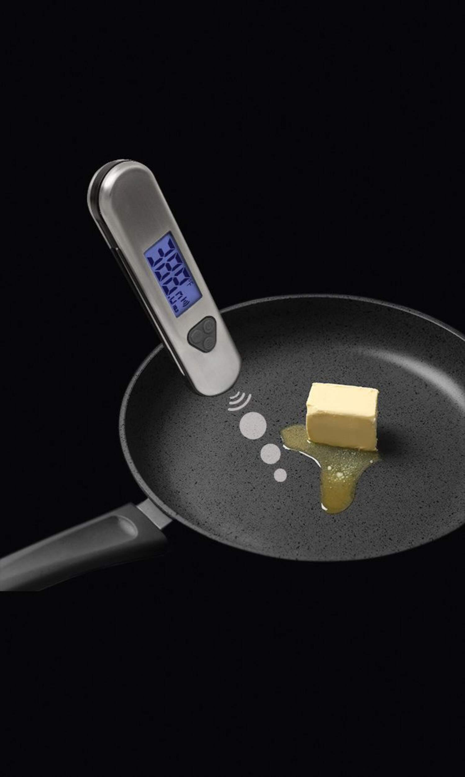 No contact infrared mode is designed to provide an instant measurement of cooking surfaces such as cooking and fry/grill pans, liquids, and BBQ grills