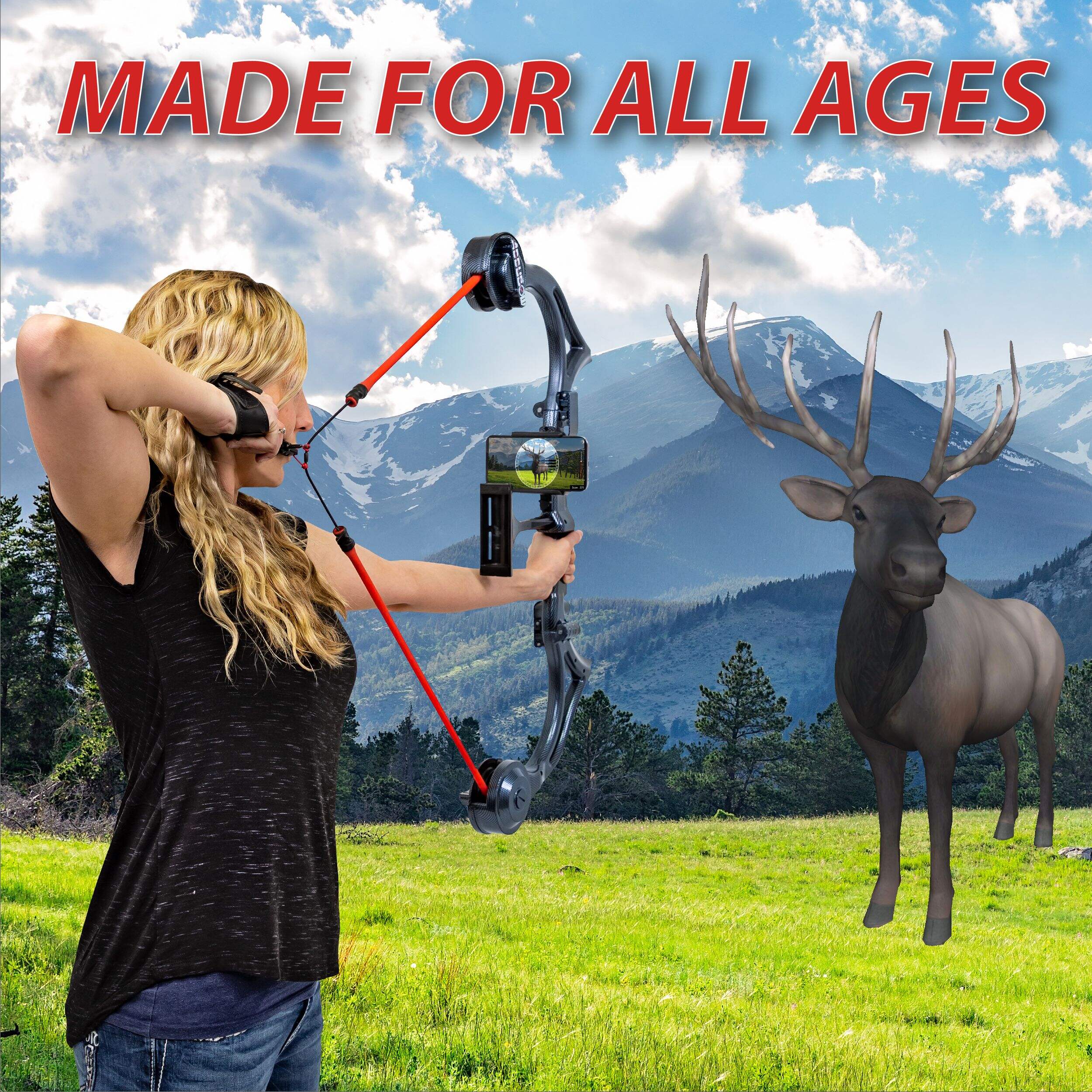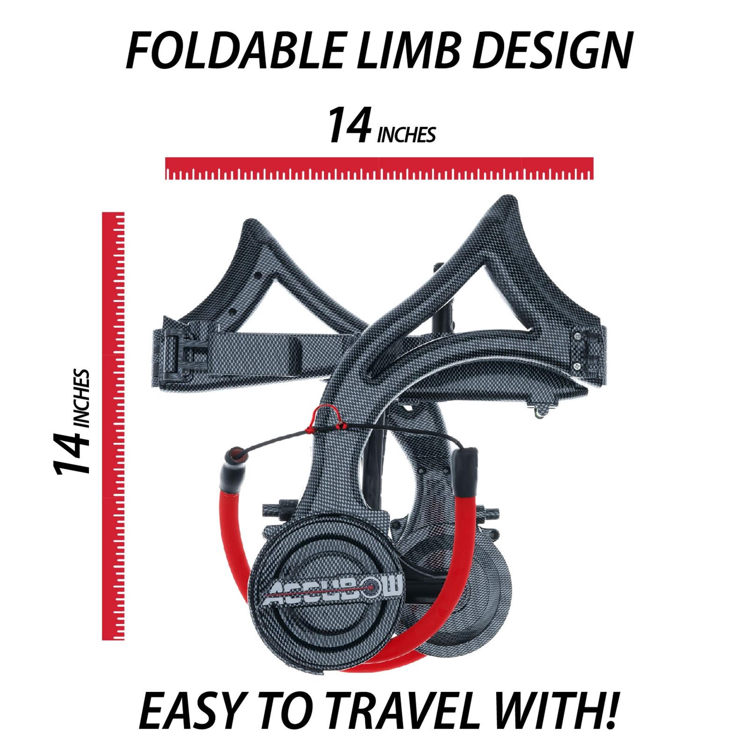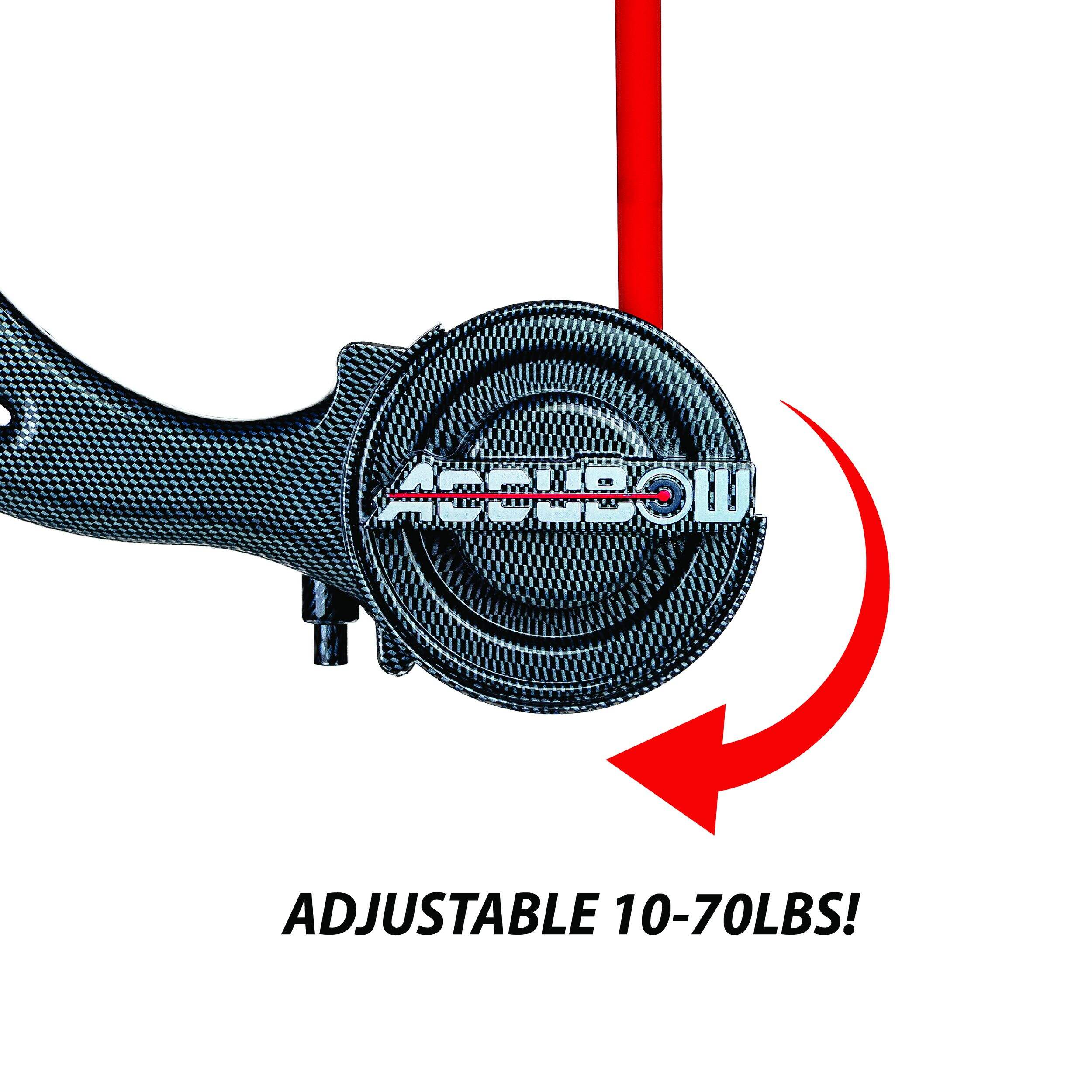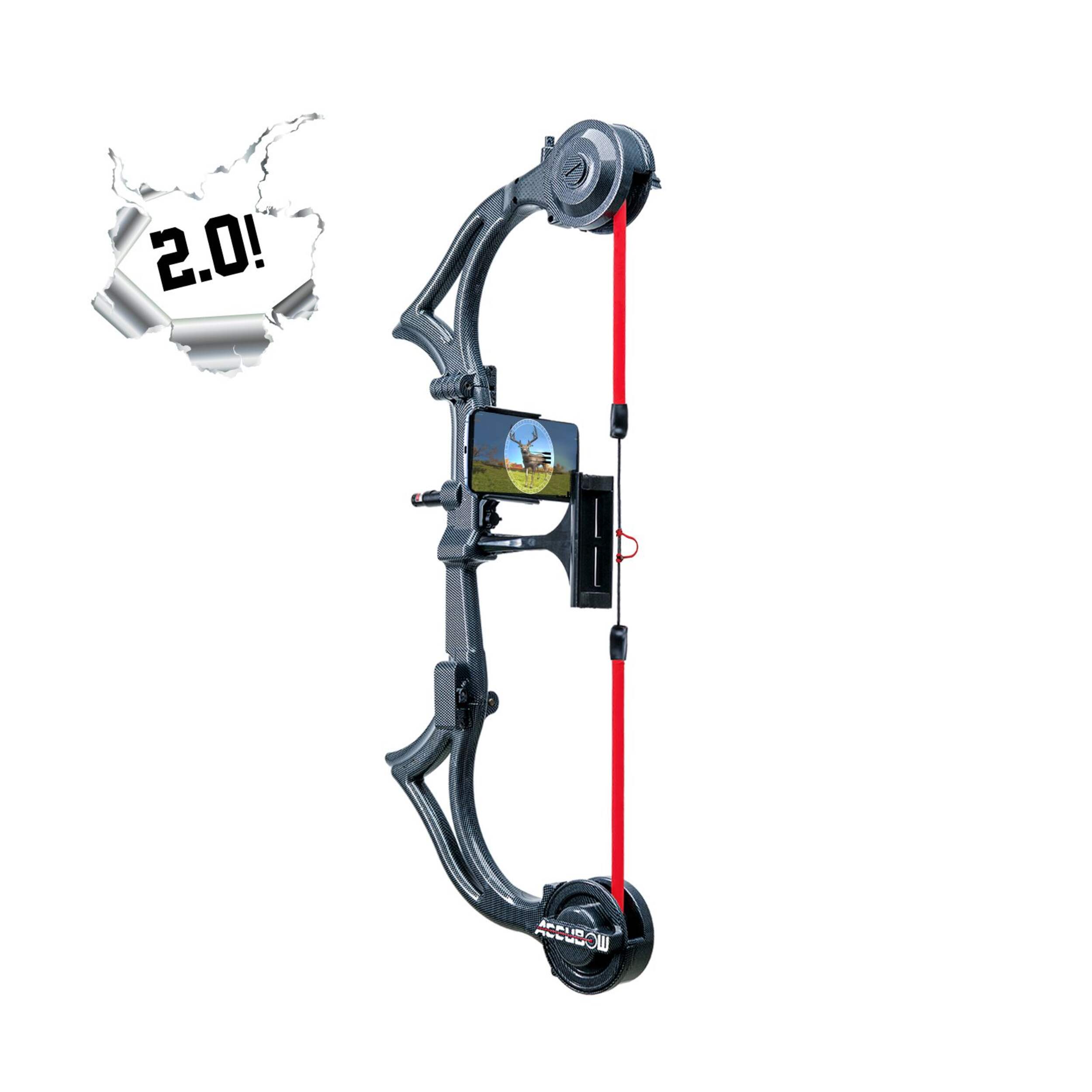 Accubow 2.0 Ambidextrous Archery/Bowhunting Practice System, Carbon Fiber, Black, is the world's first ambidextrous virtual archery training system. This innovative bow folds down for easy transport and features adjustable 10-70 lb resistance for honing your shot. The 100% polycarbonate frame provides durability while the dual resistance dials allow you to customize draw weight for skill progression. With its quiet, low-vibration design, the Accubow 2.0 helps you practice proper form anywhere without disturbing others. Both left and right-handed archers can benefit from this versatile training tool.