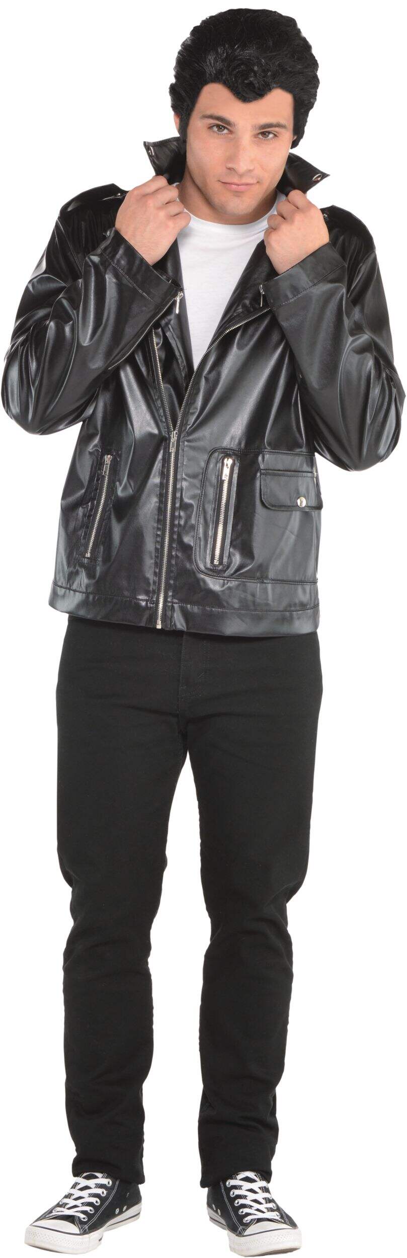 Get ready to hang out with your greaser gang with the Grease Thunderbird Jacket, Black, Adult, One Size. The black leather jacket features a white T-Birds logo on the back. Wear this jacket with jeans, a T-shirt, and boots (sold separately) to create your own greaser costume. The Officially licensed Grease product is made from foam and polyester. For lasting use, hand wash cold and line dry.