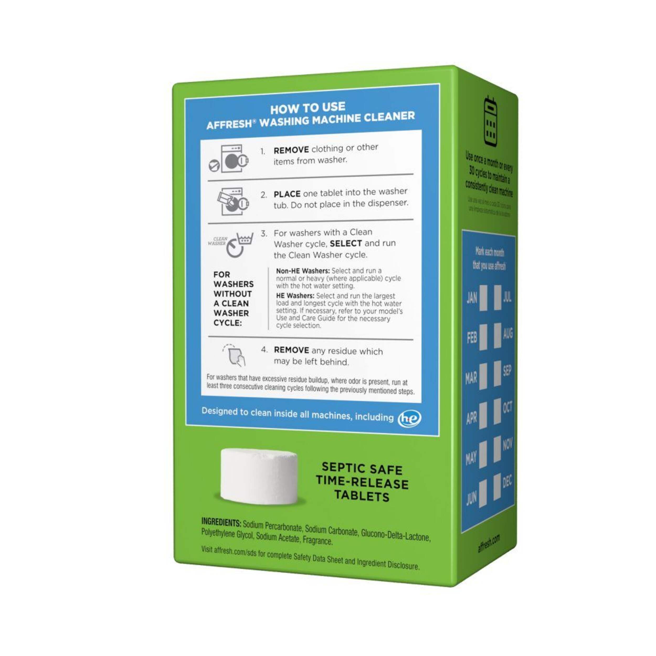Affresh Washing Machine Cleaner Tabs is specially designed to eradicate odour-causing residue from your washing machine. These tabs maintain the cleanliness of your washer and ensure it smells fresh. Using Affresh washing machine cleaner once a month is a straightforward routine to keep your washer spotless and pleasantly scented. The package comes with three Affresh tablets.