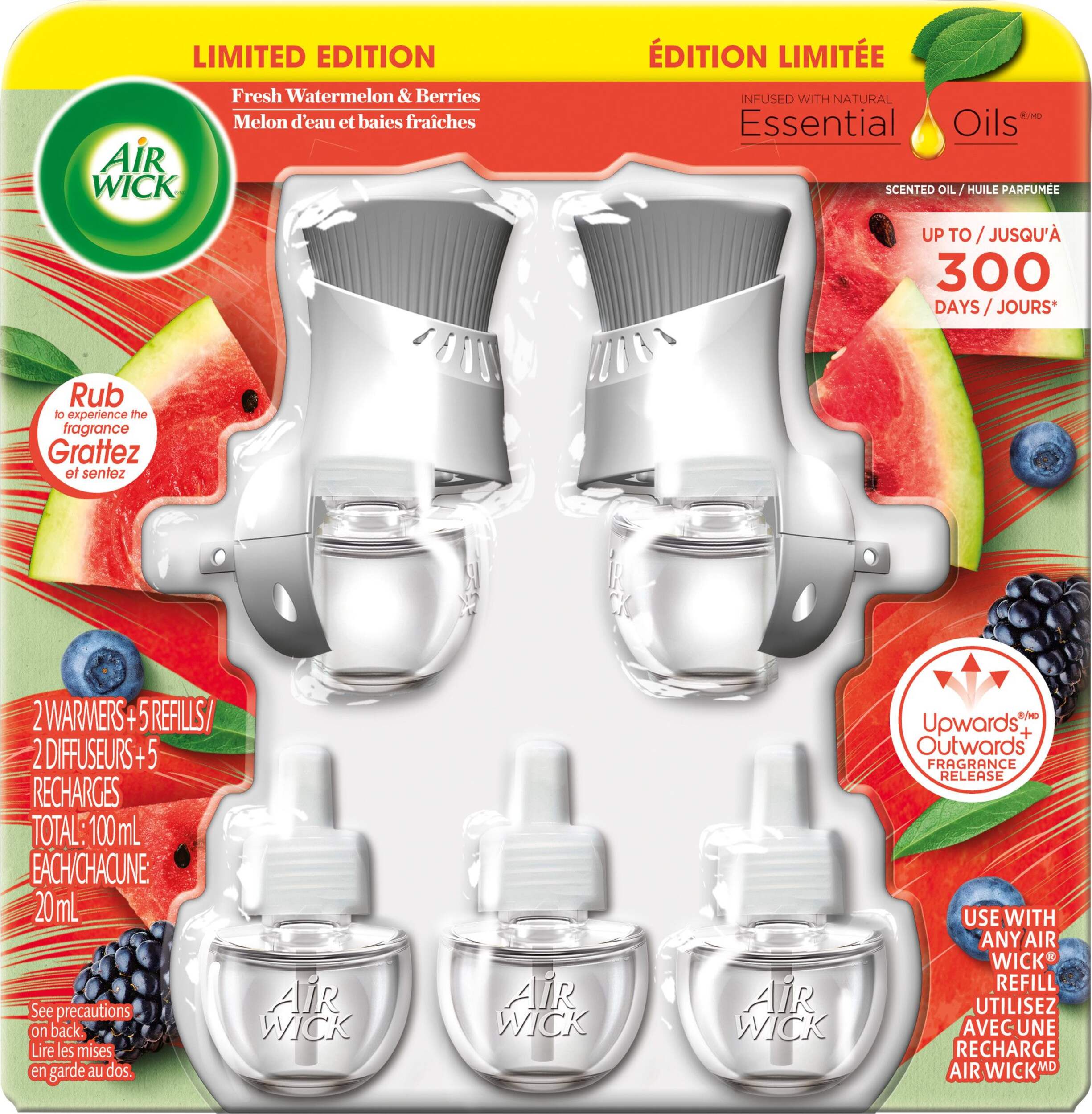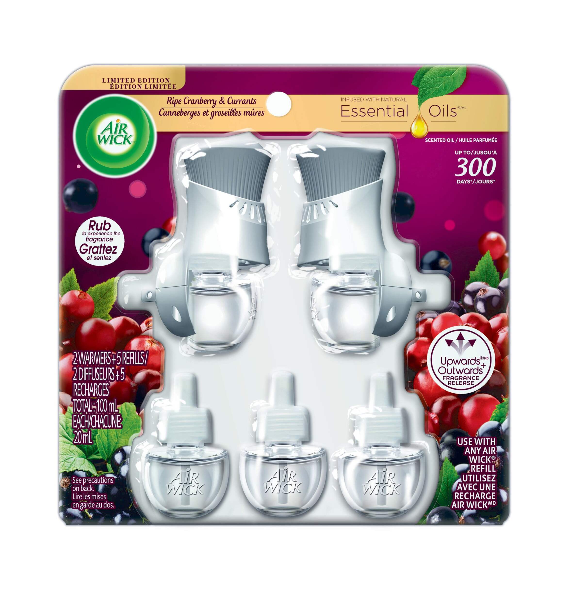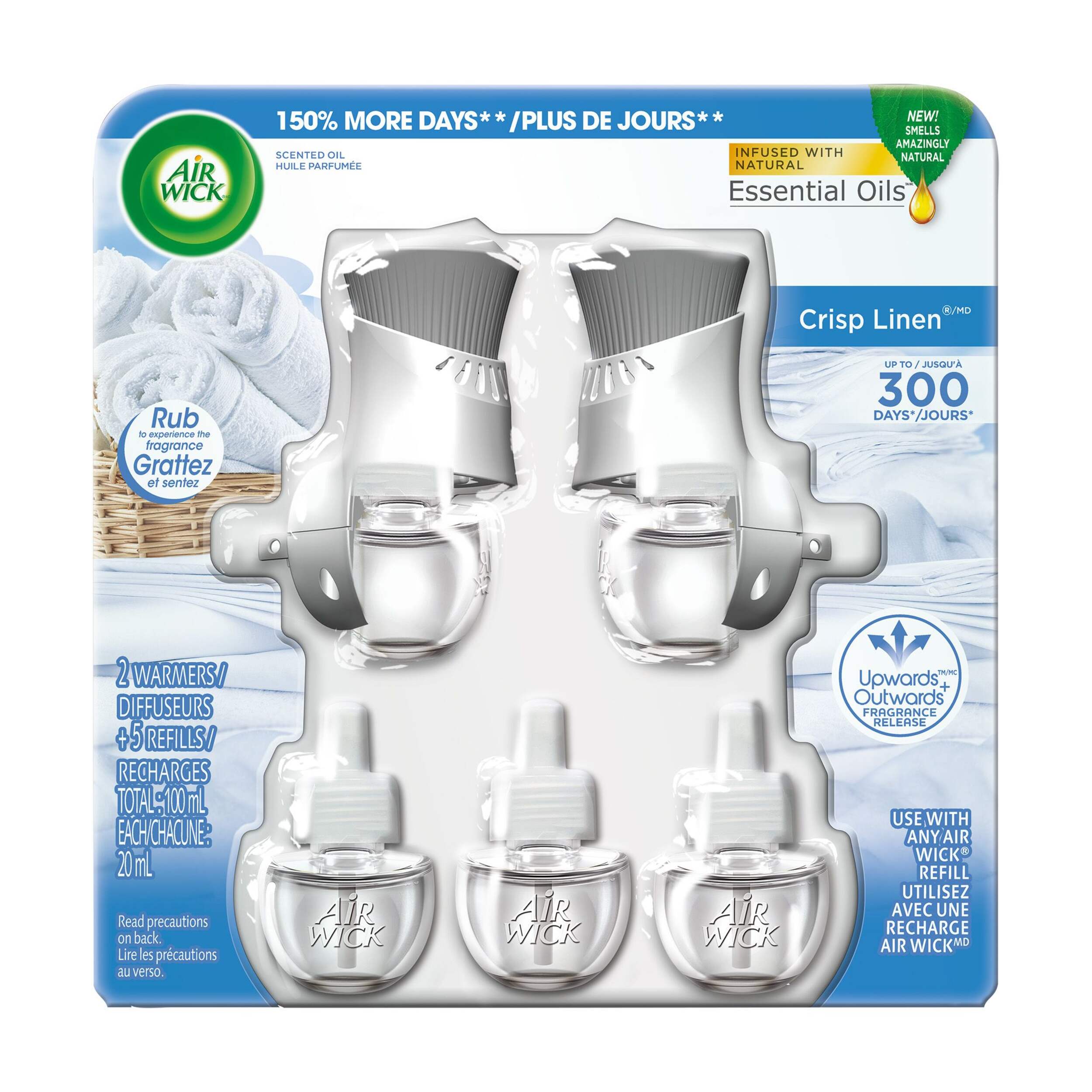 A complete set with 2 warmers and 5 refills, the Air Wick Essential Oils Value Pack is the perfect choice to tackle unwanted odours in multiple areas. With multiple warmers in use at once, you'll be able to refresh large spaces in your home with ease. Replace unwanted, musty smells with warm and welcome fragrances that keep your home smelling its absolute best.