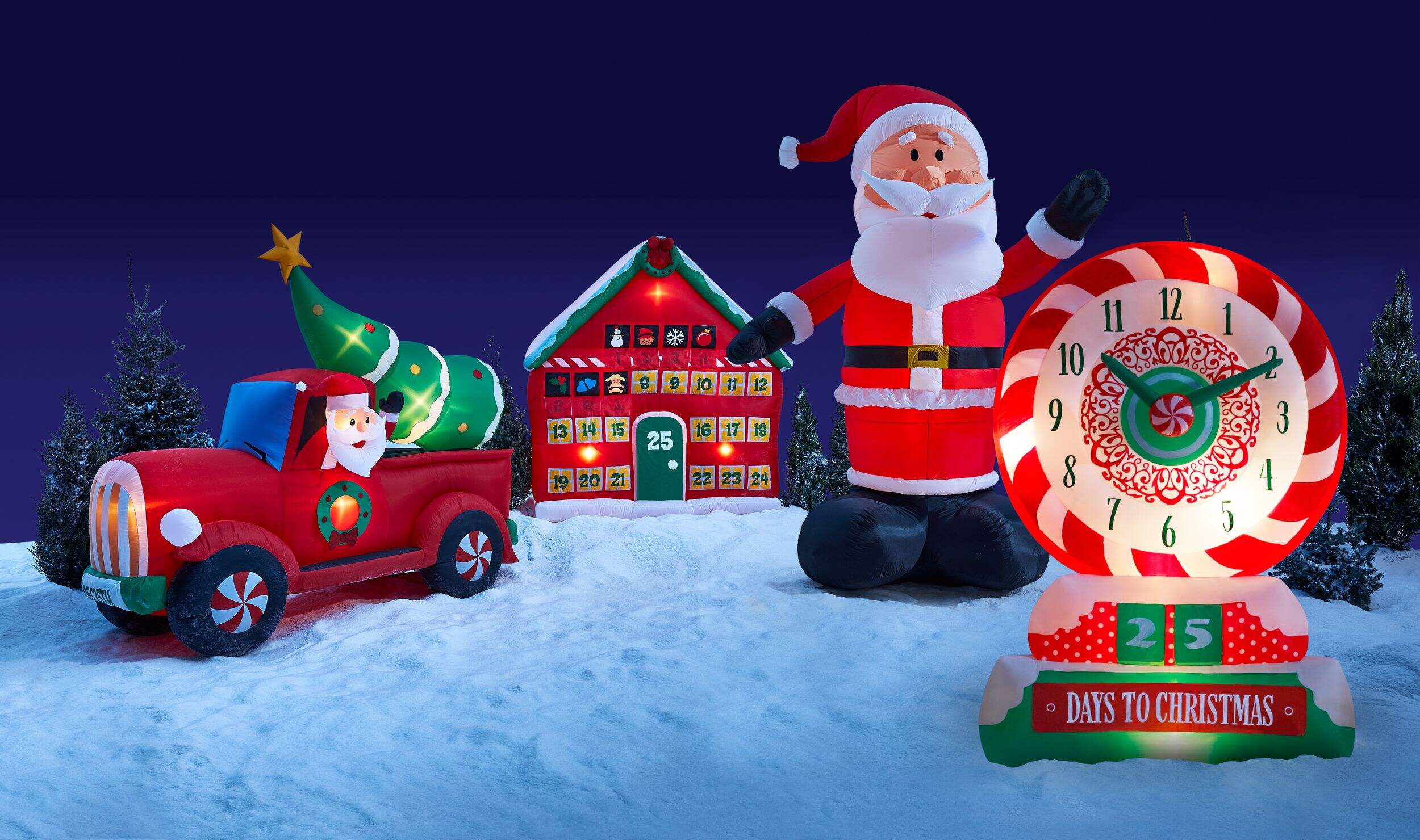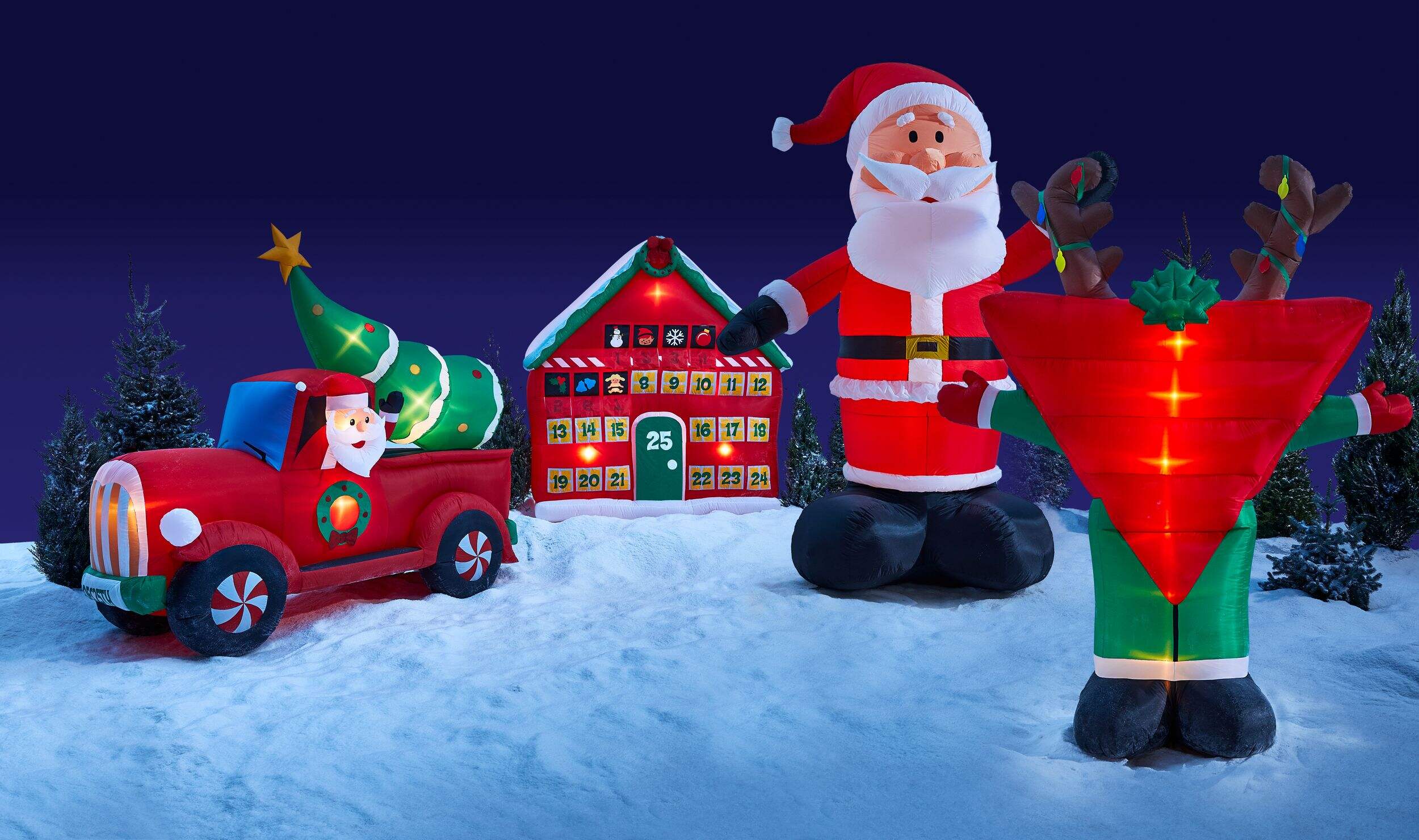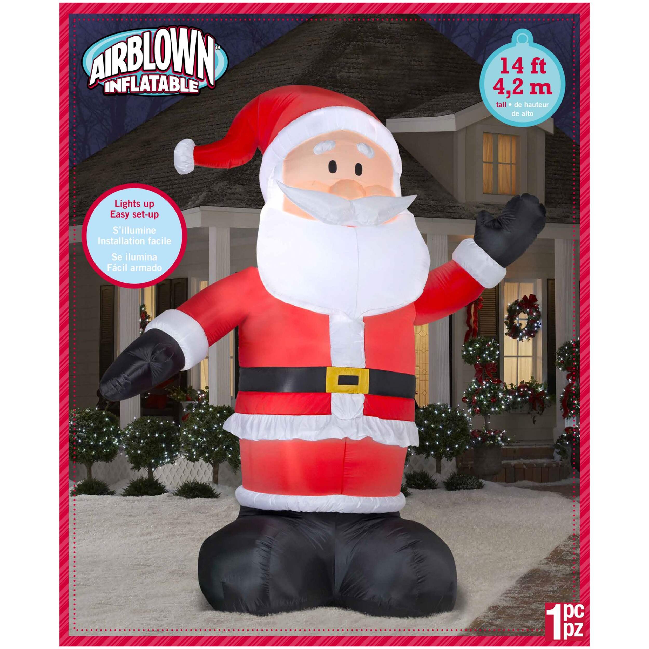 The Gemmy Airblown® Colossal Santa Christmas Decoration stands 14-ft tall, making it a striking addition to any holiday display. This inflatable Santa self-inflates in minutes and lights up, creating a festive atmosphere. Constructed from durable materials, it is designed to withstand outdoor conditions. It plugs into a standard outlet for easy operation. Ideal for large yards or public spaces, this inflatable Santa is sure to impress.