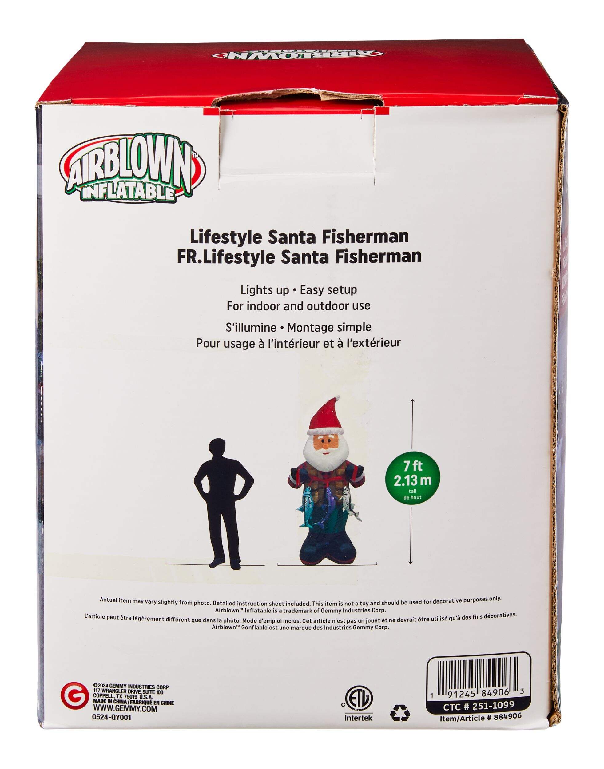 The Gemmy Airblown® Pre-Lit Fisherman Santa Christmas Decoration is a great catch for the holidays. Standing an impressive 7-ft tall, this inflatable features Santa dressed in a fishing vest and hat. It adds a whimsical touch to your holiday display, whether used alone or with other airblown inflatables. Simply plug it in, stake it down, and watch this Gemmy Airblown inflatable light up your outdoor space with festive cheer.