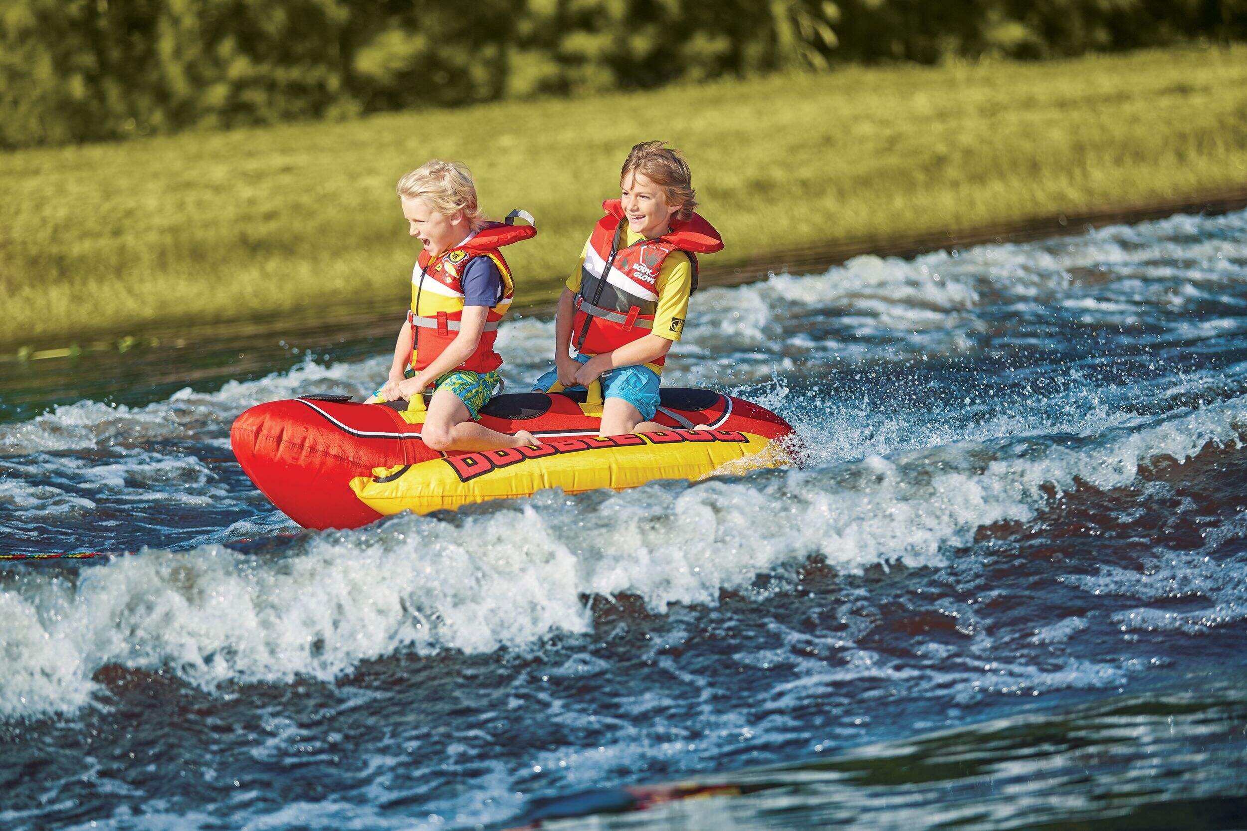 The Airhead Hot Dog Towable Tube offers endless fun for up to three riders, blending a whimsical hot dog design with robust performance features. Its eye-catching appearance adds a playful twist to your boating adventures, while its durable construction supports hours of safe, thrilling rides. Perfect for families and friends, this towable is built for comfort and laughs on the water all season long.