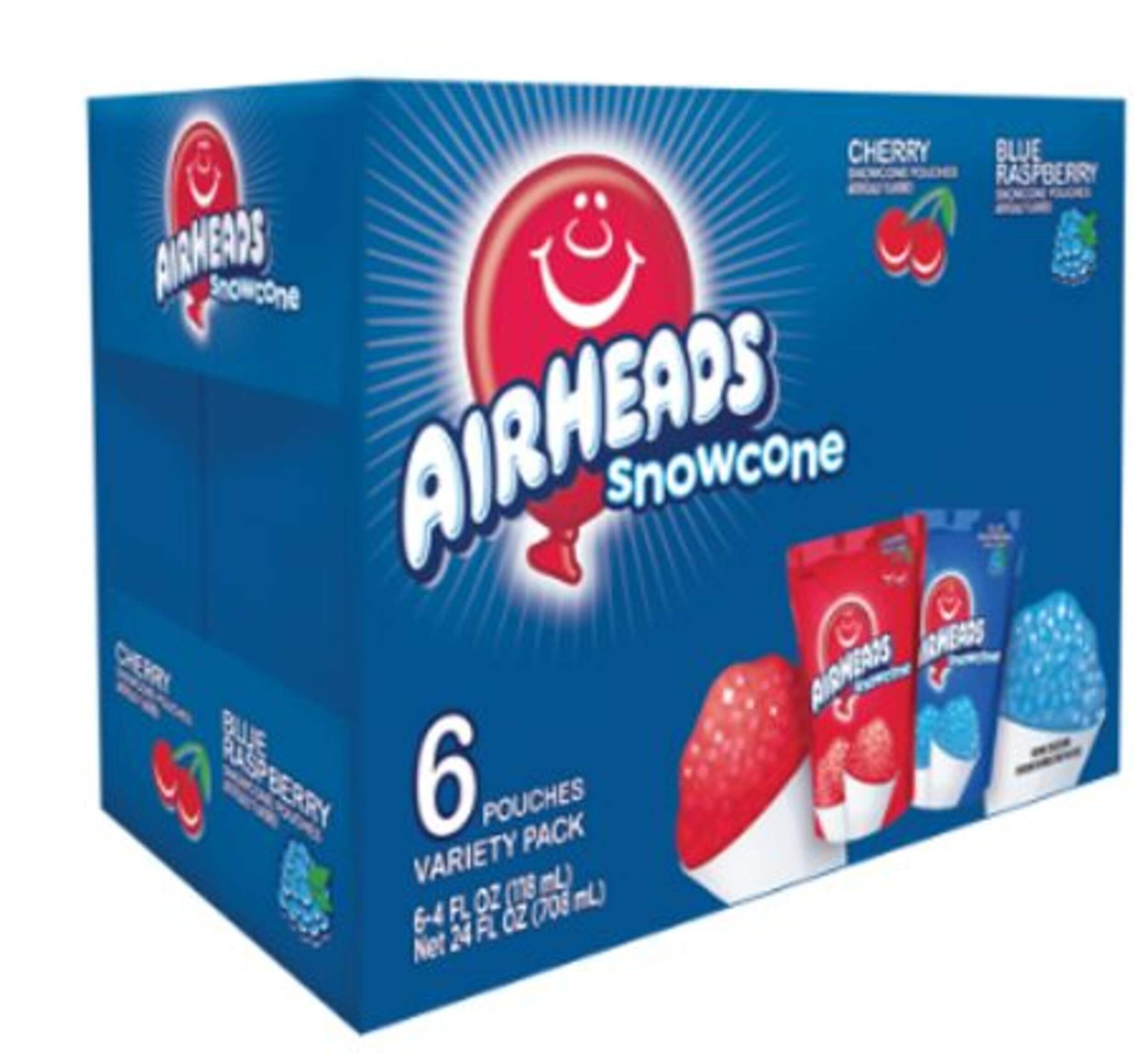 Enjoy a refreshing treat with Airheads Snowcone Pouches Variety Pack. Featuring delicious Blue Raspberry and Cherry flavours, these frozen snacks are perfect for cooling down on a hot summer day. Simply freeze and enjoy a burst of fruity goodness.