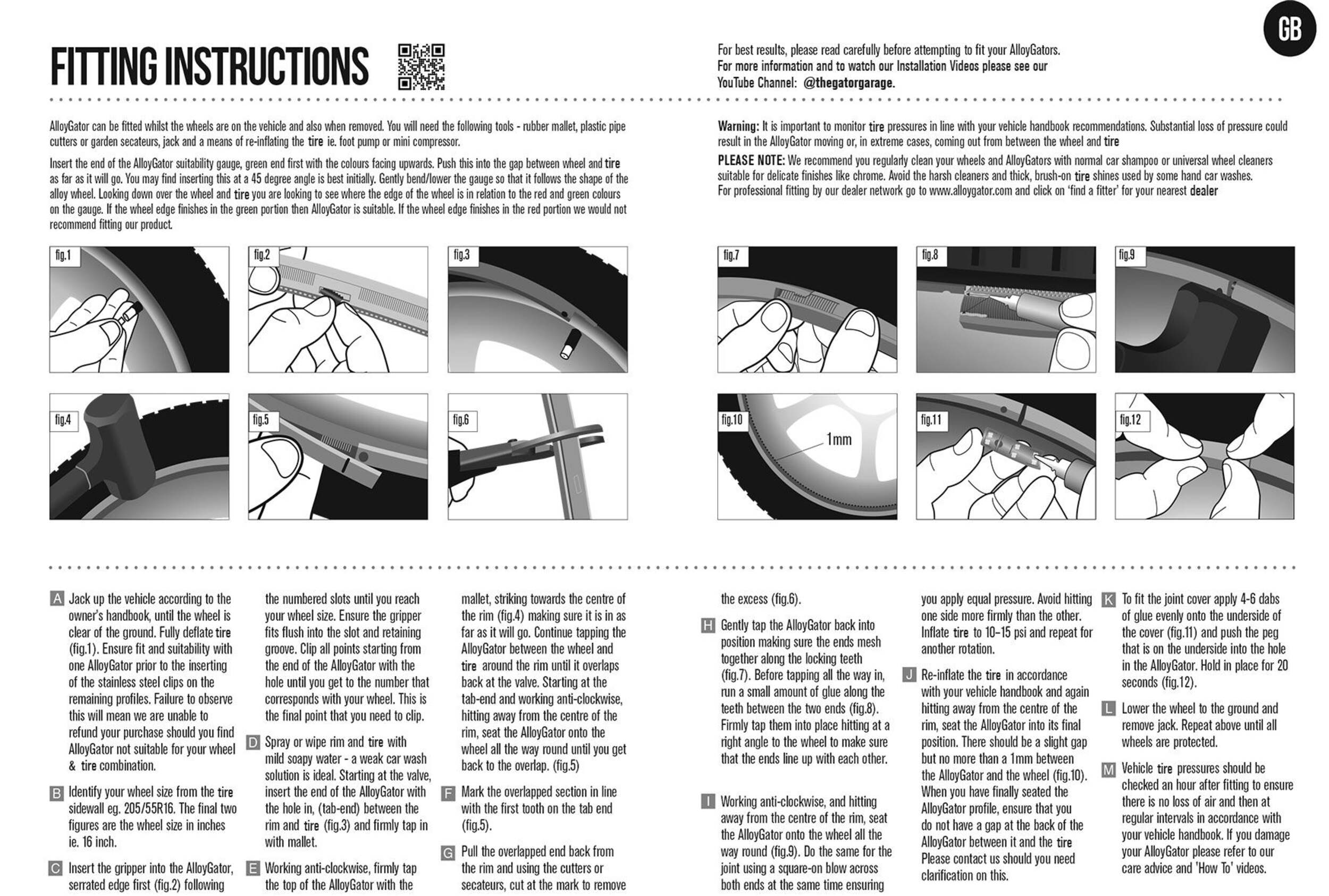 One set of AlloyGator will fit four wheels up to 24" (60.9 cm) in diameter