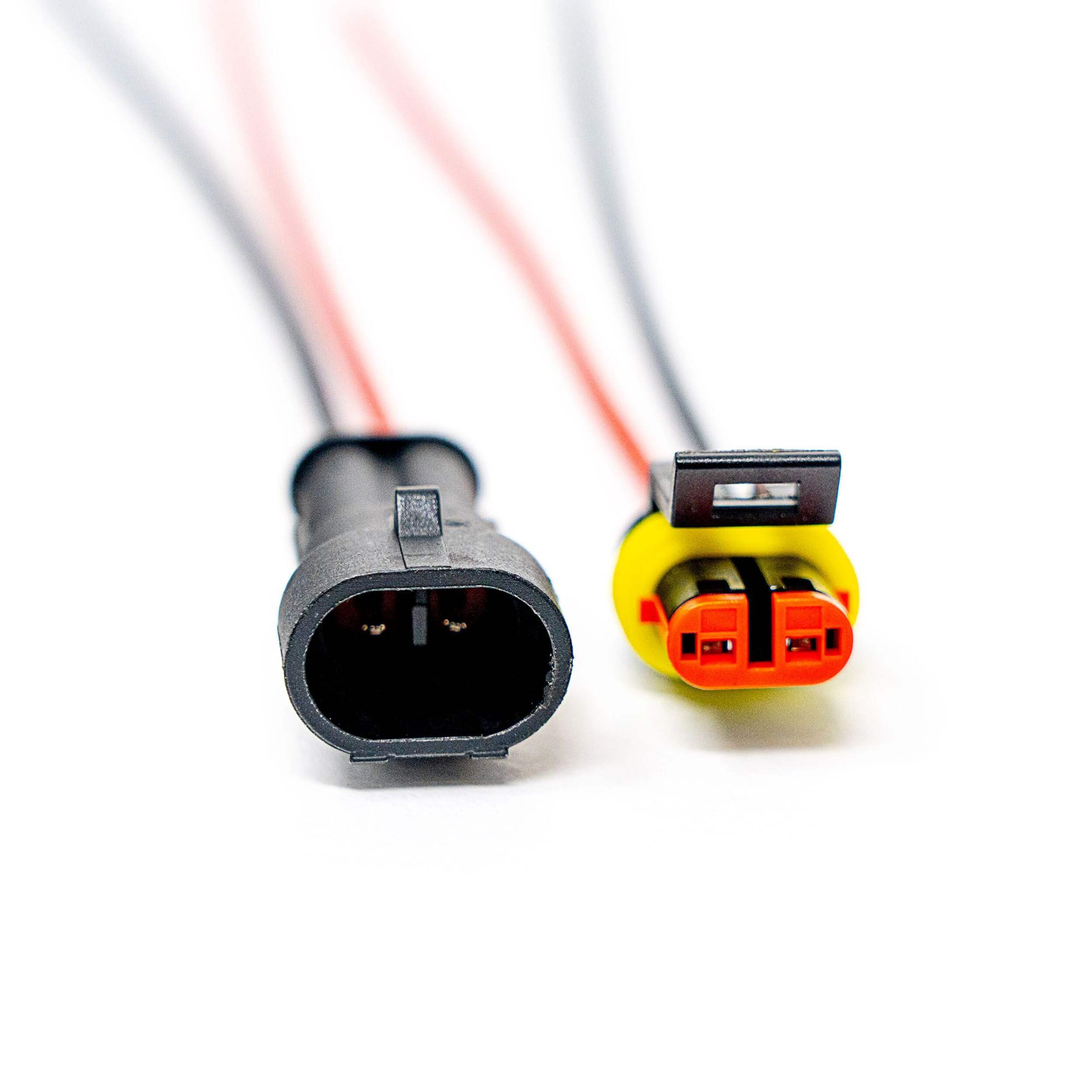 The Alpena 78568C Universal Automotive Electrical Wiring Connector is a pack of 2-pin male and female wiring harness connectors rated at 16 AWG. This connector simplifies connecting and disconnecting light bars, pod/utility lights and more from your vehicle. Its universal design allows for easy installation and removal of electrical components, providing a convenient solution for automotive wiring needs. Constructed with durable materials, this connector offers a reliable way to establish and break electrical connections as needed.