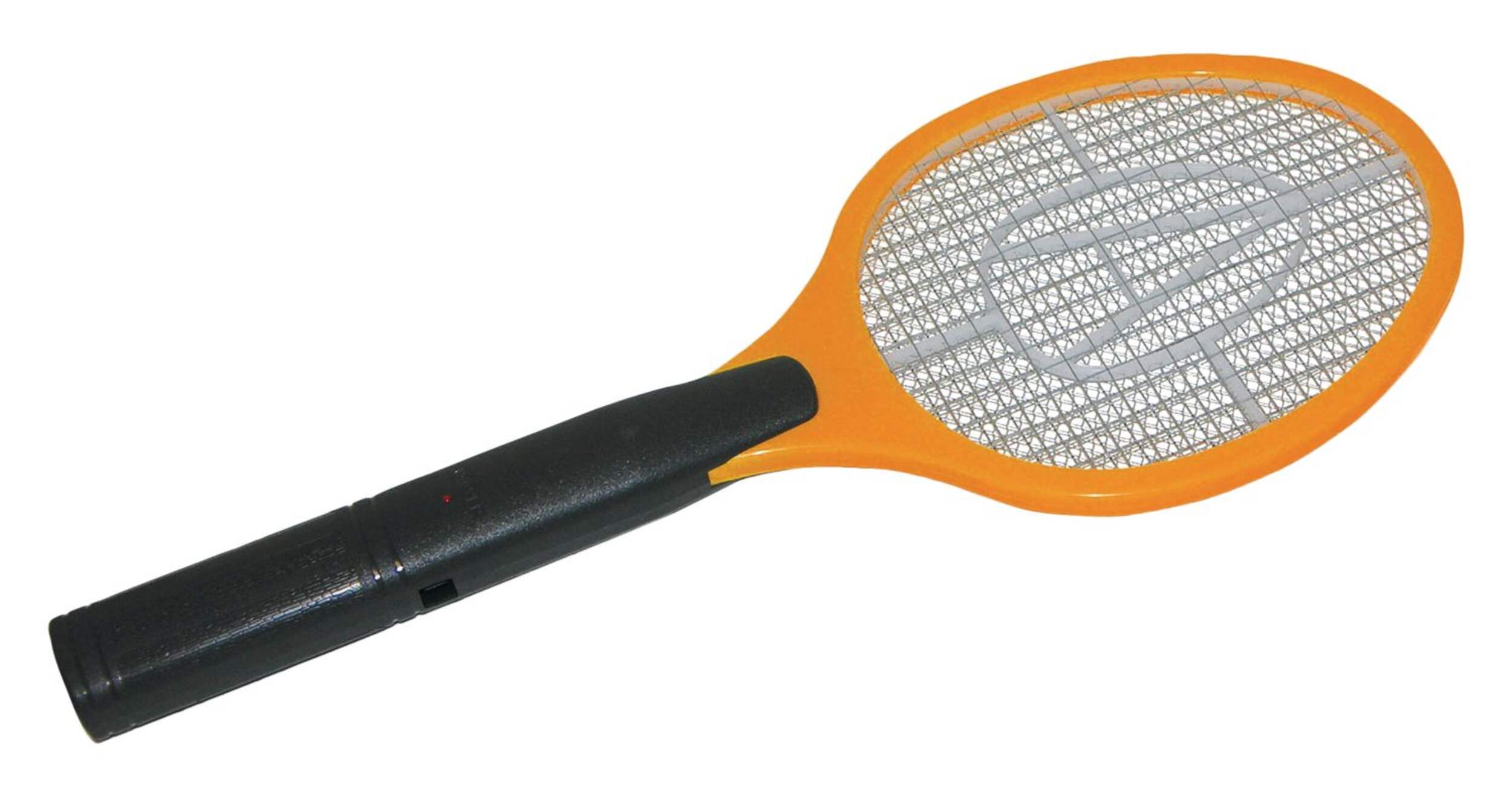 Bug Zapper Racket is a handheld bug zapper that you can swing like a tennis racket at annoying biting insects invading your personal space